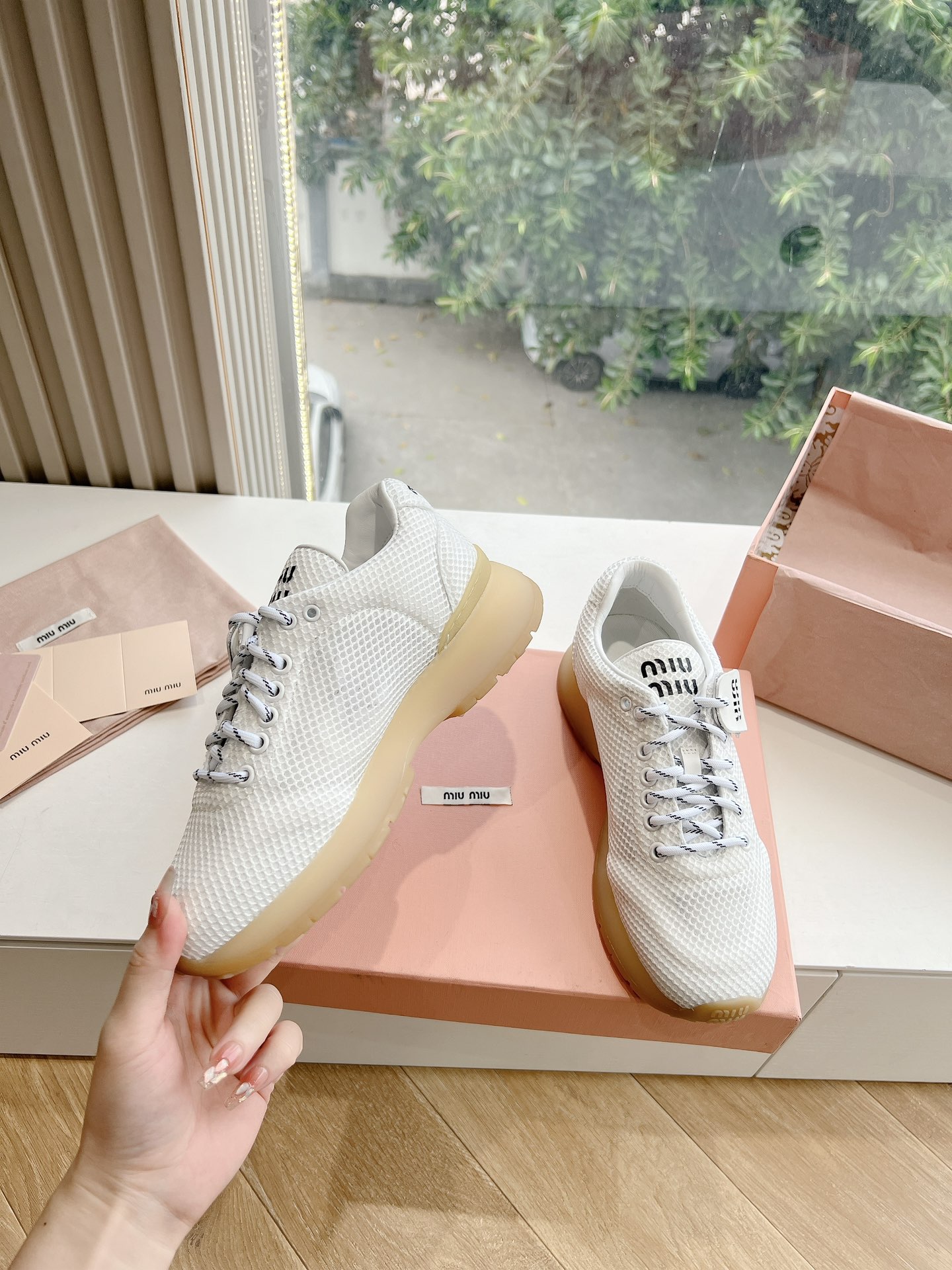 这款鞋子是AAAAA 1:1 质量 (非常棒). 使用了和原版一模一样的材料. 商标部分也保持了和缪缪/Miu Miu一样. 图片拍摄是实物鞋子拍摄, 您所收到的实物保证和我们图片一模一样.