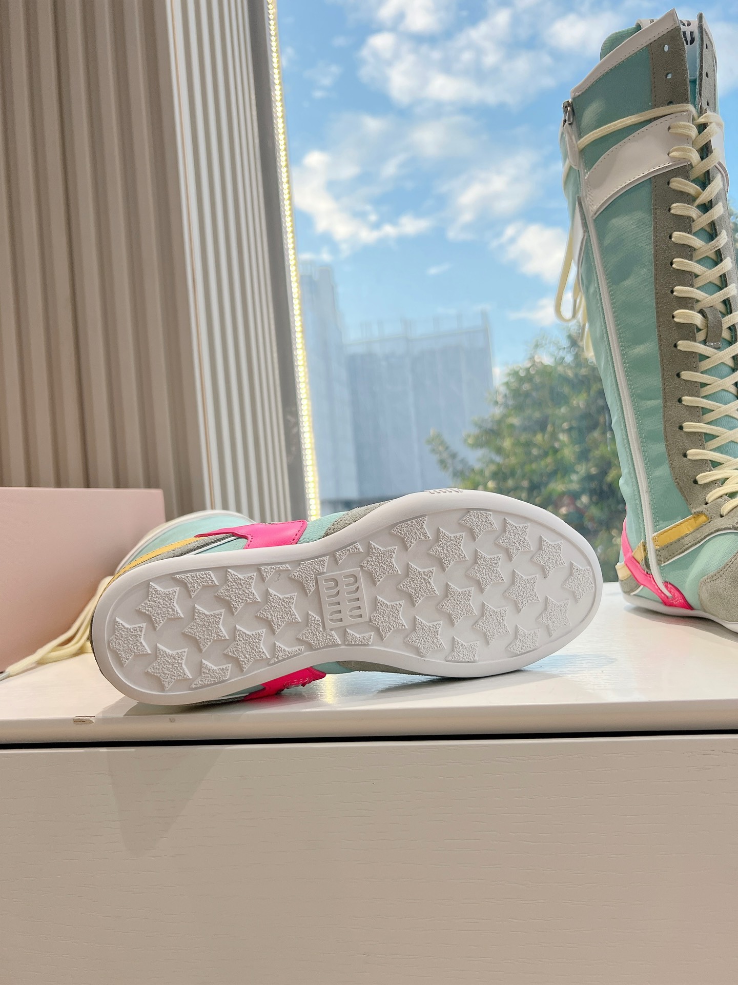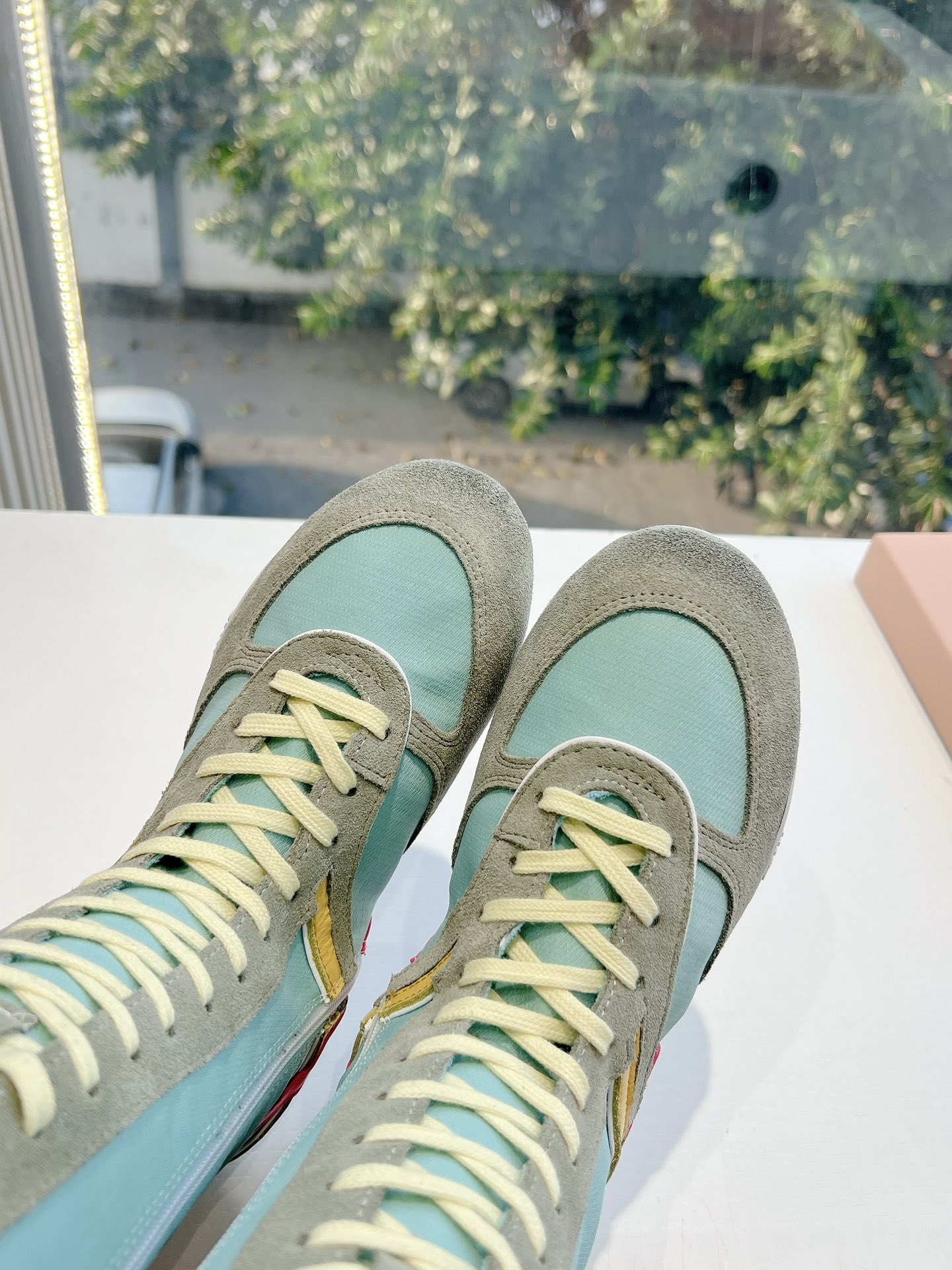 这款鞋子是AAAAA 1:1 质量 (非常棒). 使用了和原版一模一样的材料. 商标部分也保持了和缪缪/Miu Miu一样. 图片拍摄是实物鞋子拍摄, 您所收到的实物保证和我们图片一模一样.