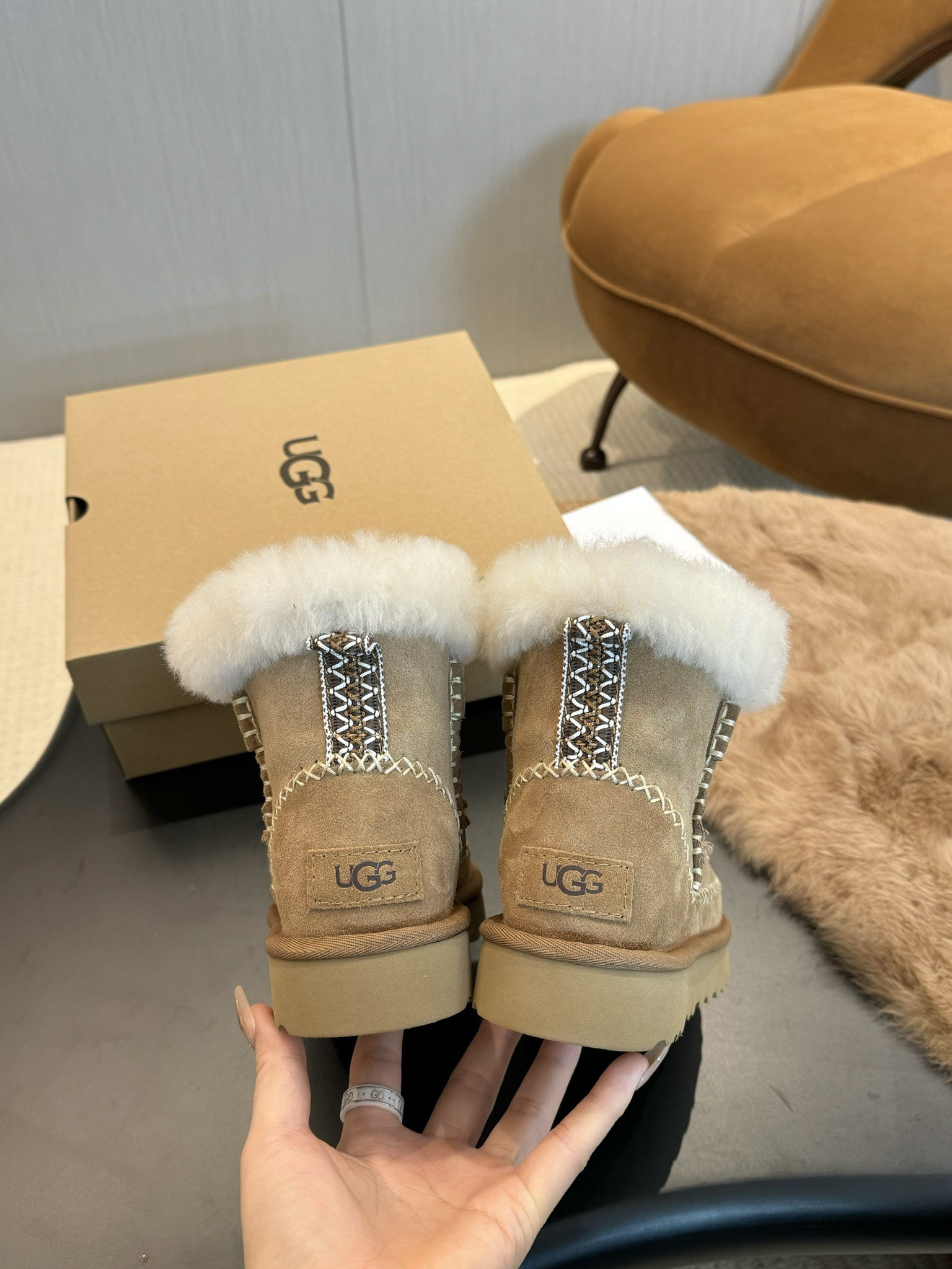 这款鞋子是AAAAA 1:1 质量 (非常棒). 使用了和原版一模一样的材料. 商标部分也保持了和UGG雪地靴一样. 图片拍摄是实物鞋子拍摄, 您所收到的实物保证和我们图片一模一样.