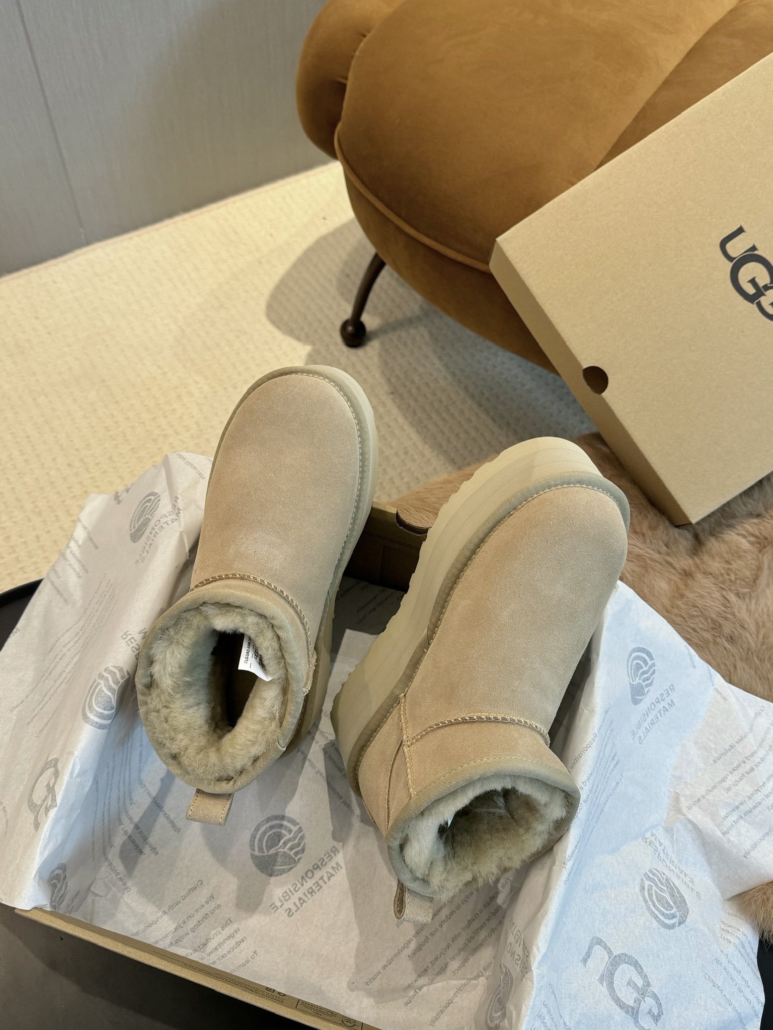 这款鞋子是AAAAA 1:1 质量 (非常棒). 使用了和原版一模一样的材料. 商标部分也保持了和UGG雪地靴一样. 图片拍摄是实物鞋子拍摄, 您所收到的实物保证和我们图片一模一样.