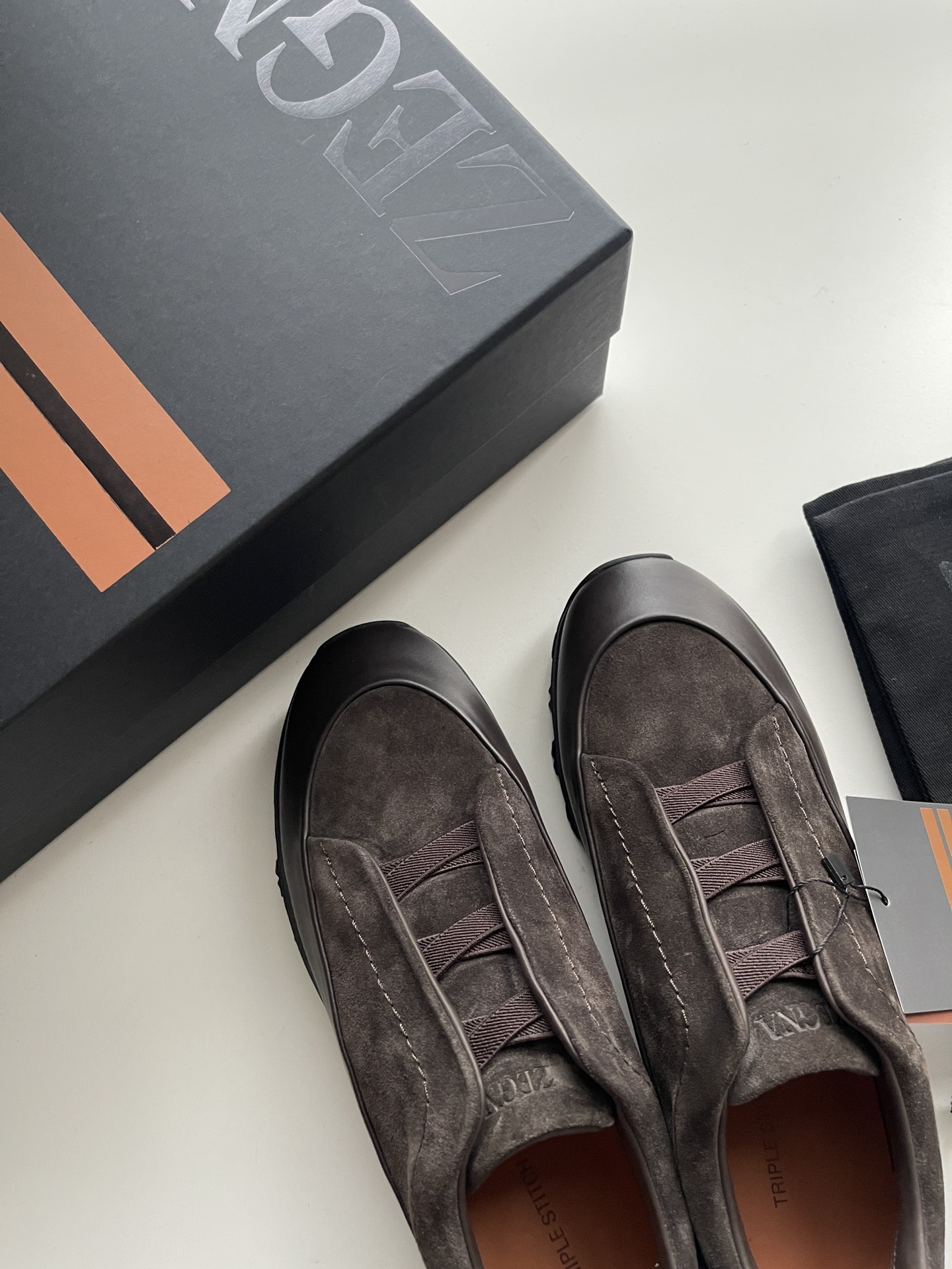 这款鞋子是AAAAA 1:1 质量 (非常棒). 使用了和原版一模一样的材料. 商标部分也保持了和杰尼亚/Zegna一样. 图片拍摄是实物鞋子拍摄, 您所收到的实物保证和我们图片一模一样.