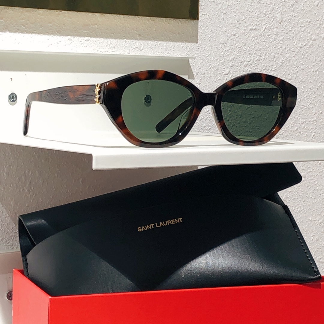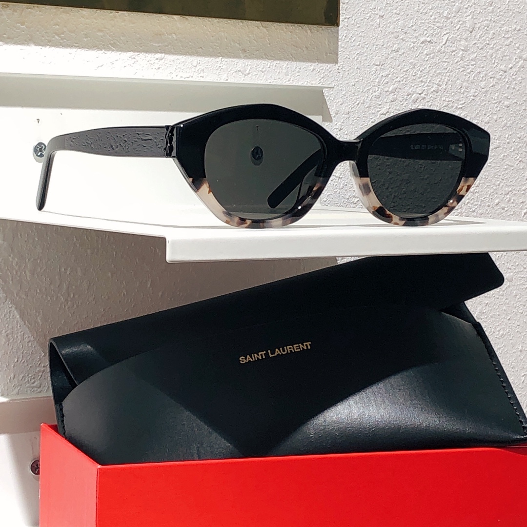 这款太阳眼镜是AAAAA 1:1 质量 (非常棒). 使用了和原版一模一样的材料. 商标部分也保持了和圣罗兰/Saint Laurent一样. 图片拍摄是实物太阳眼镜拍摄, 您所收到的实物保证和我们图片一模一样.