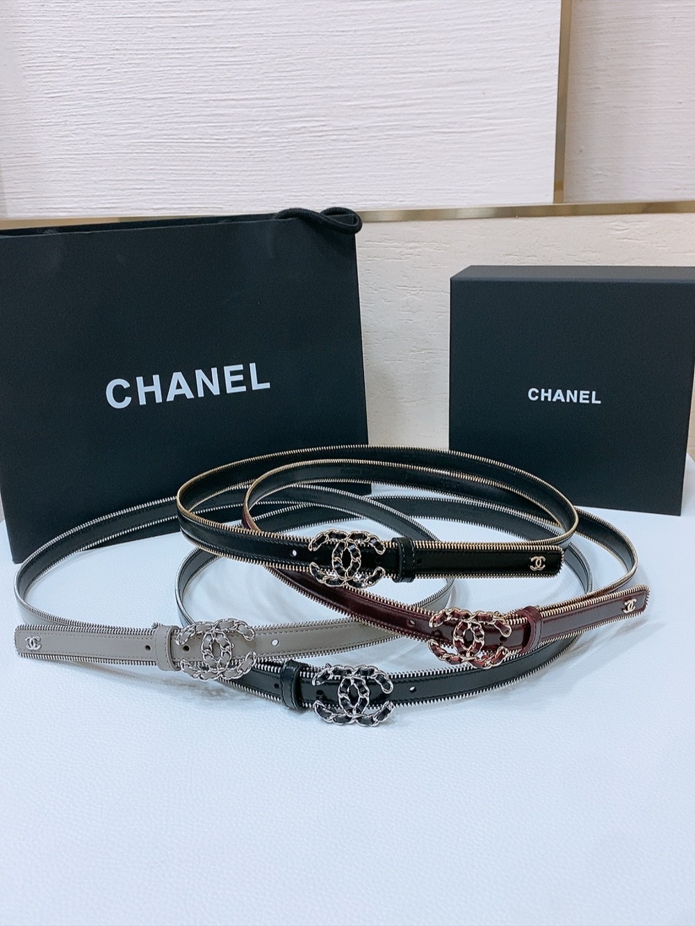 这款皮带是AAAAA 1:1 质量 (非常棒). 使用了和原版一模一样的材料. 商标部分也保持了和香奈儿/Chanel一样. 图片拍摄是实物皮带拍摄, 您所收到的实物保证和我们图片一模一样.