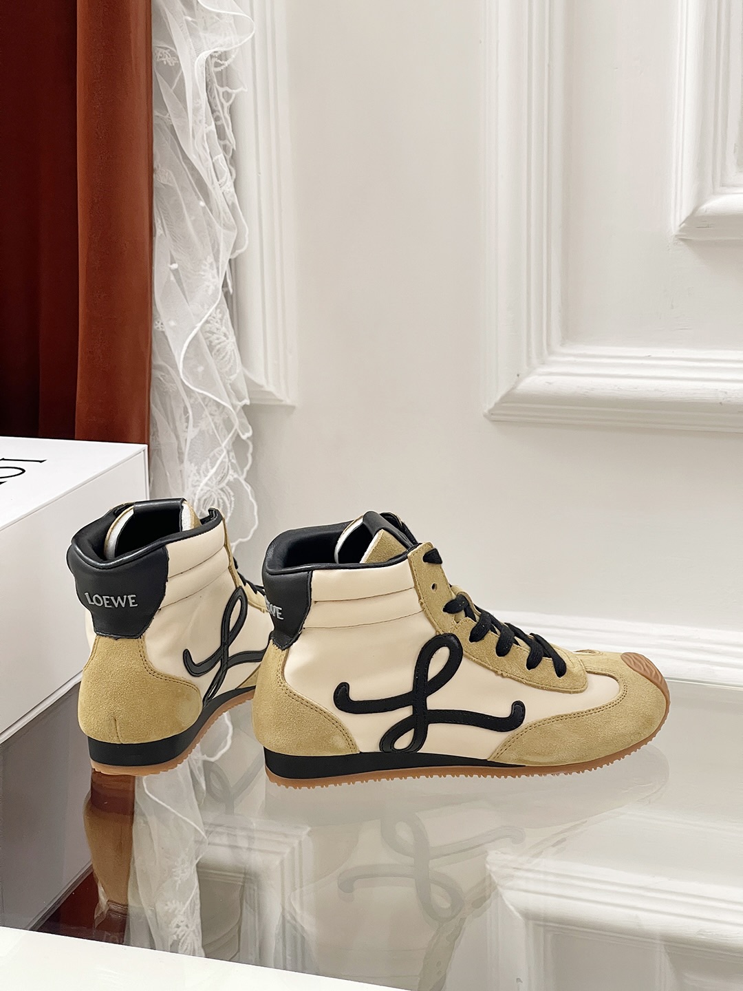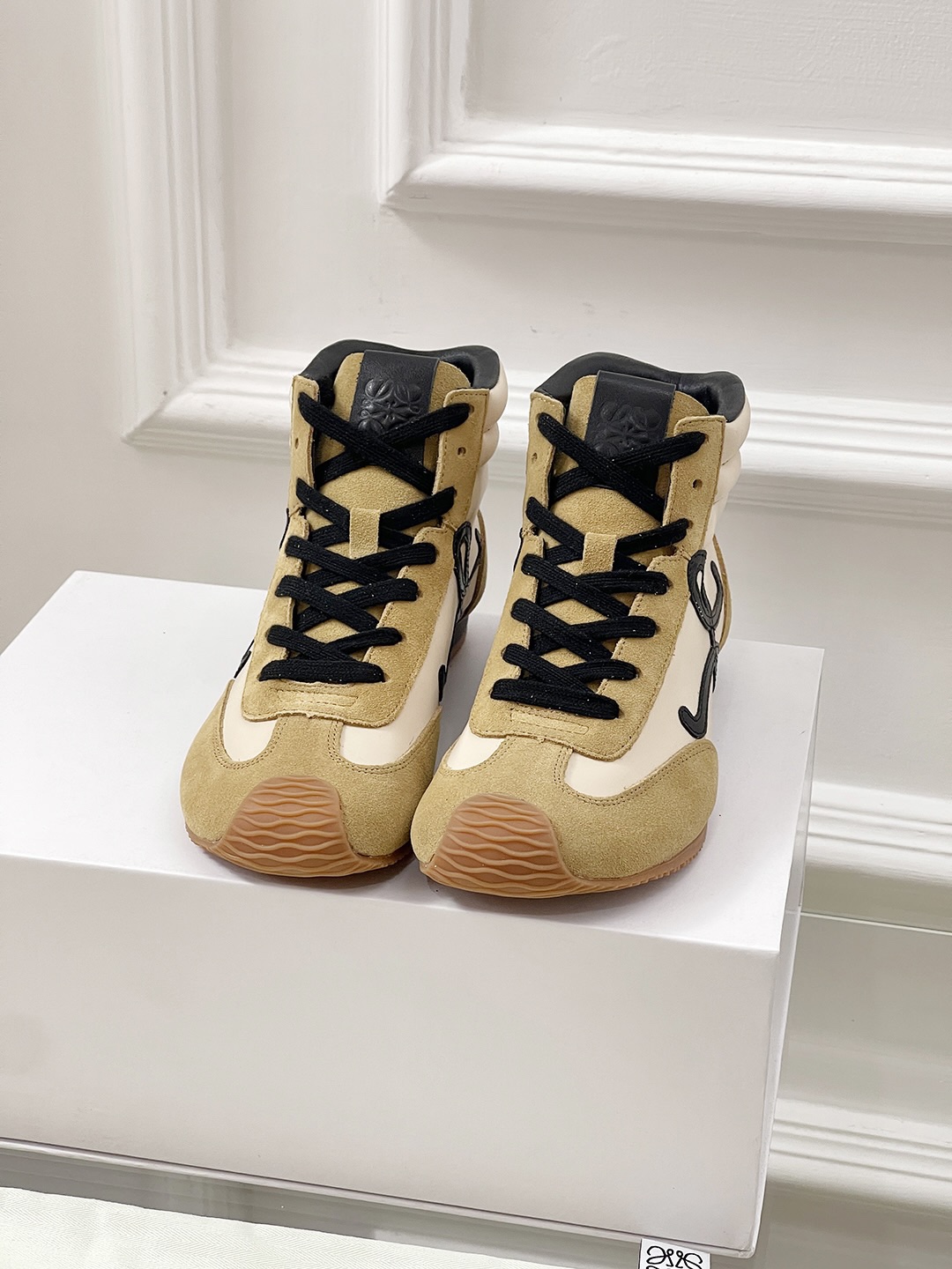 这款鞋子是AAAAA 1:1 质量 (非常棒). 使用了和原版一模一样的材料. 商标部分也保持了和罗意威/Loewe一样. 图片拍摄是实物鞋子拍摄, 您所收到的实物保证和我们图片一模一样.