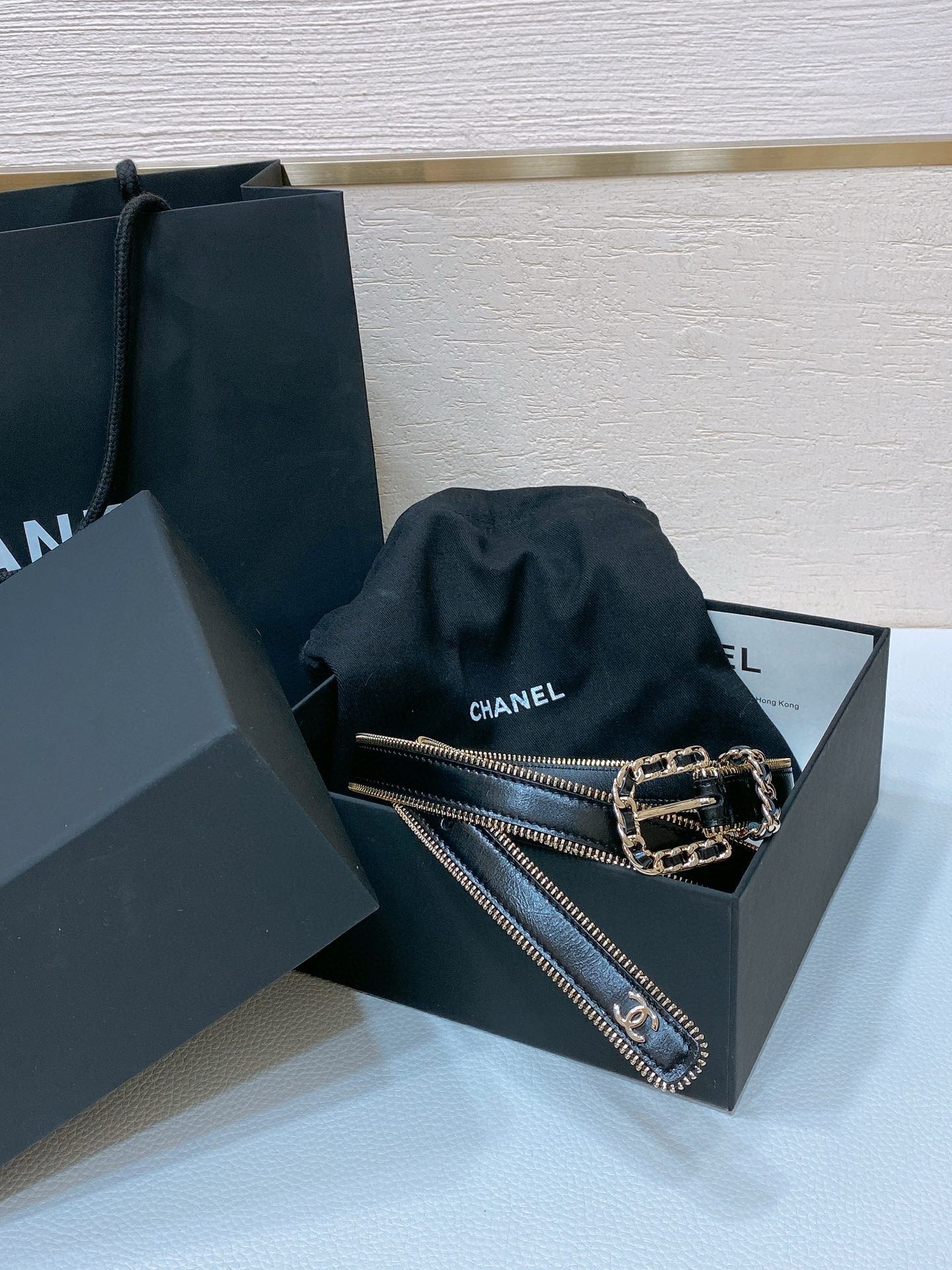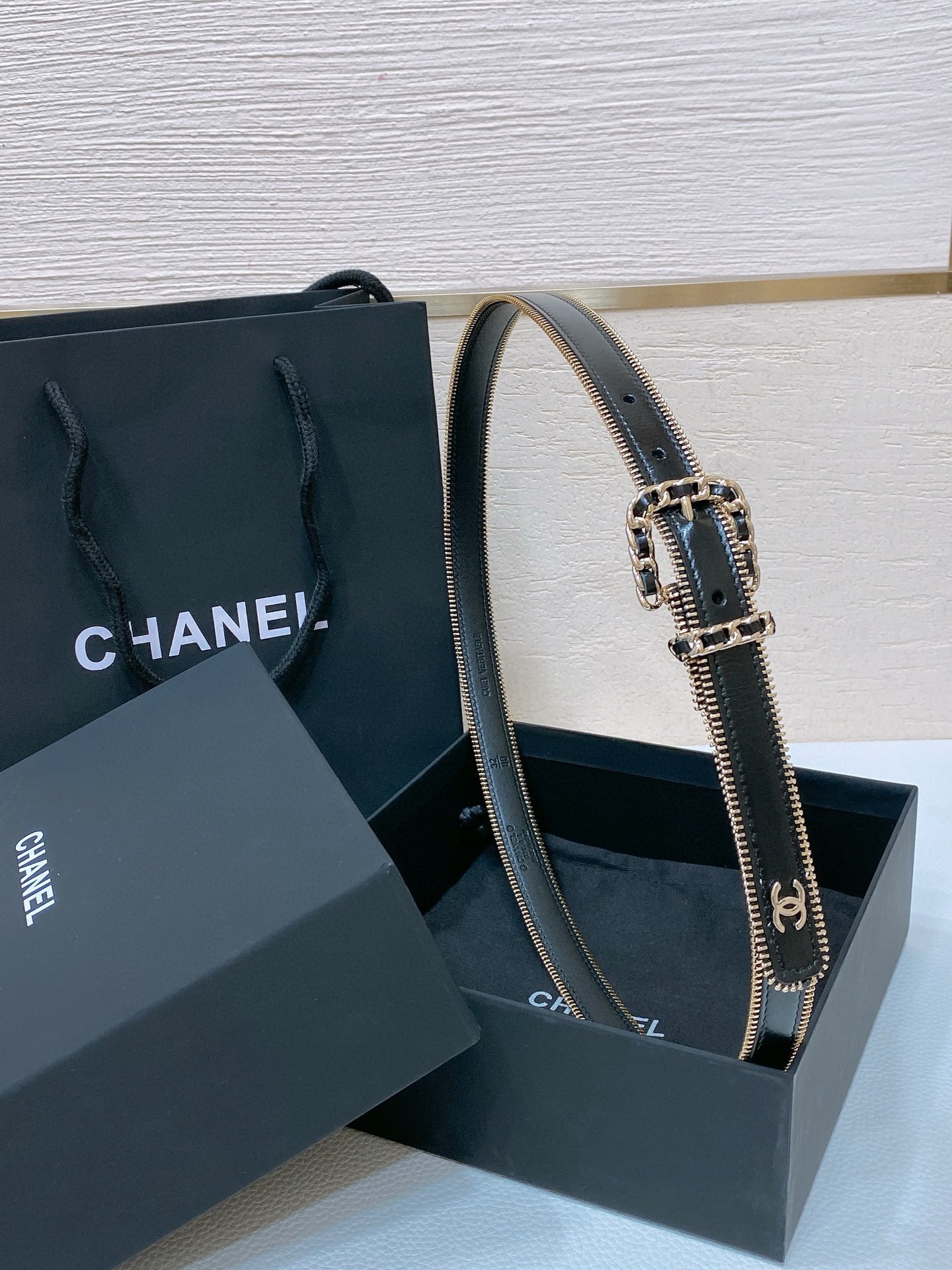 这款皮带是AAAAA 1:1 质量 (非常棒). 使用了和原版一模一样的材料. 商标部分也保持了和香奈儿/Chanel一样. 图片拍摄是实物皮带拍摄, 您所收到的实物保证和我们图片一模一样.