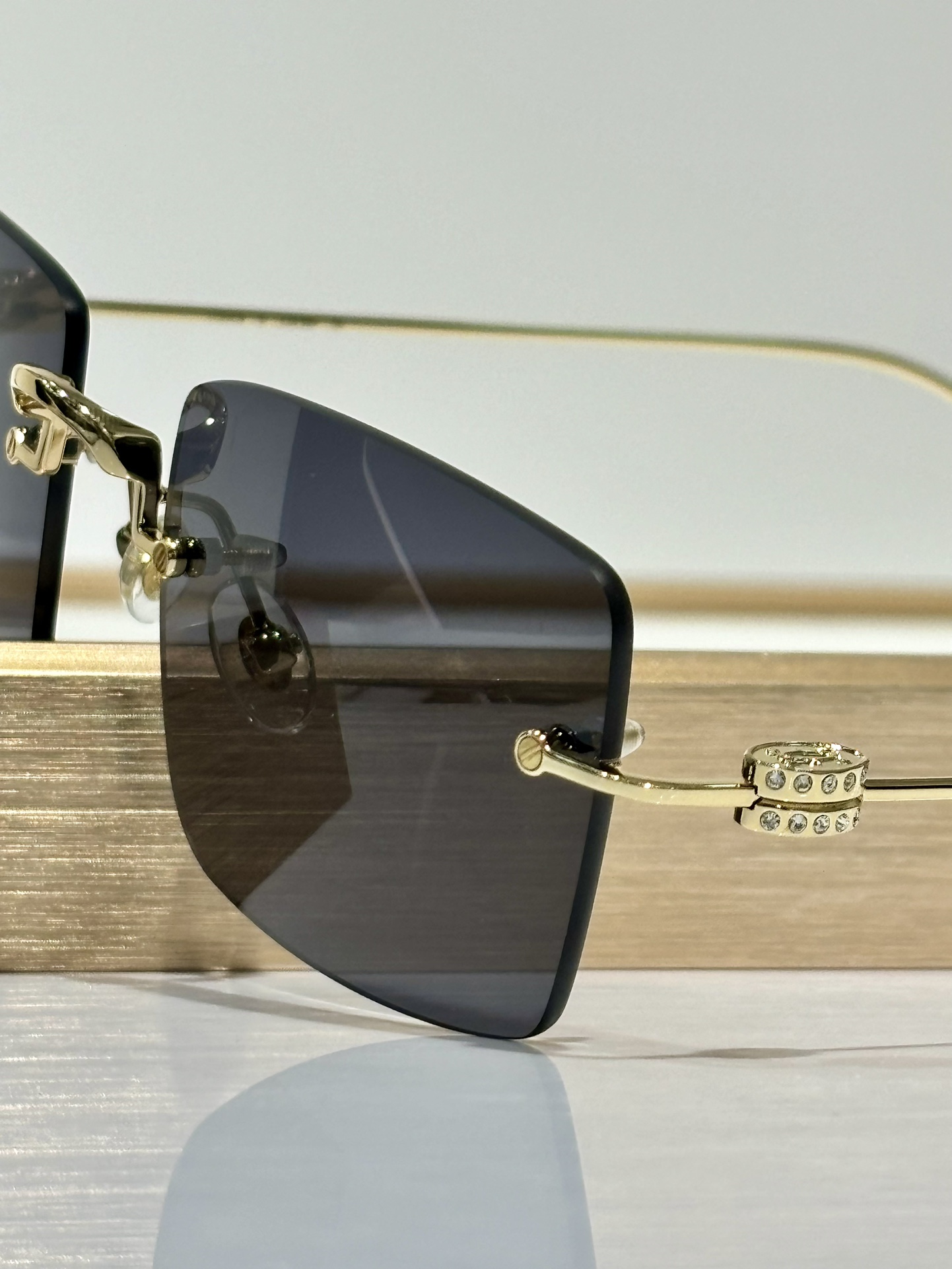 这款太阳眼镜是AAAAA 1:1 质量 (非常棒). 使用了和原版一模一样的材料. 商标部分也保持了和卡地亚/Cartier一样. 图片拍摄是实物太阳眼镜拍摄, 您所收到的实物保证和我们图片一模一样.