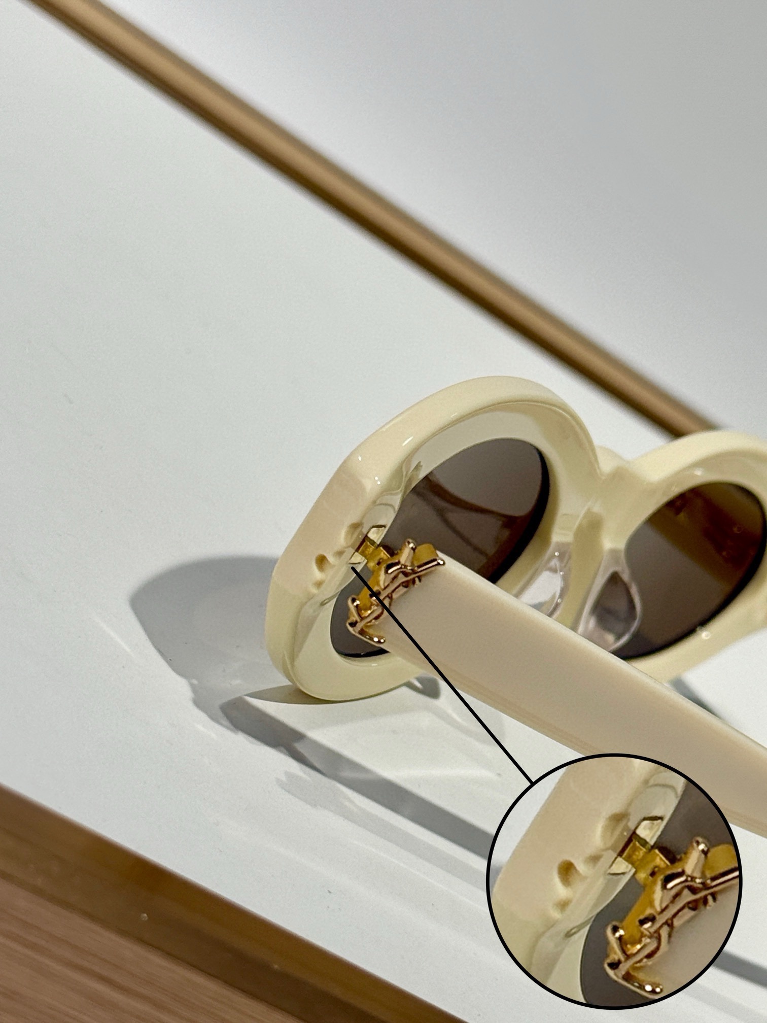 这款太阳眼镜是AAAAA 1:1 质量 (非常棒). 使用了和原版一模一样的材料. 商标部分也保持了和圣罗兰/Saint Laurent一样. 图片拍摄是实物太阳眼镜拍摄, 您所收到的实物保证和我们图片一模一样.