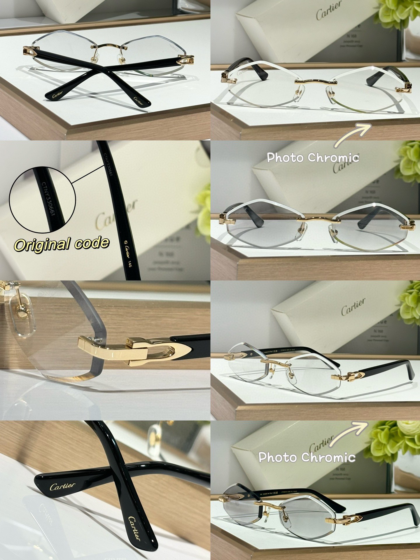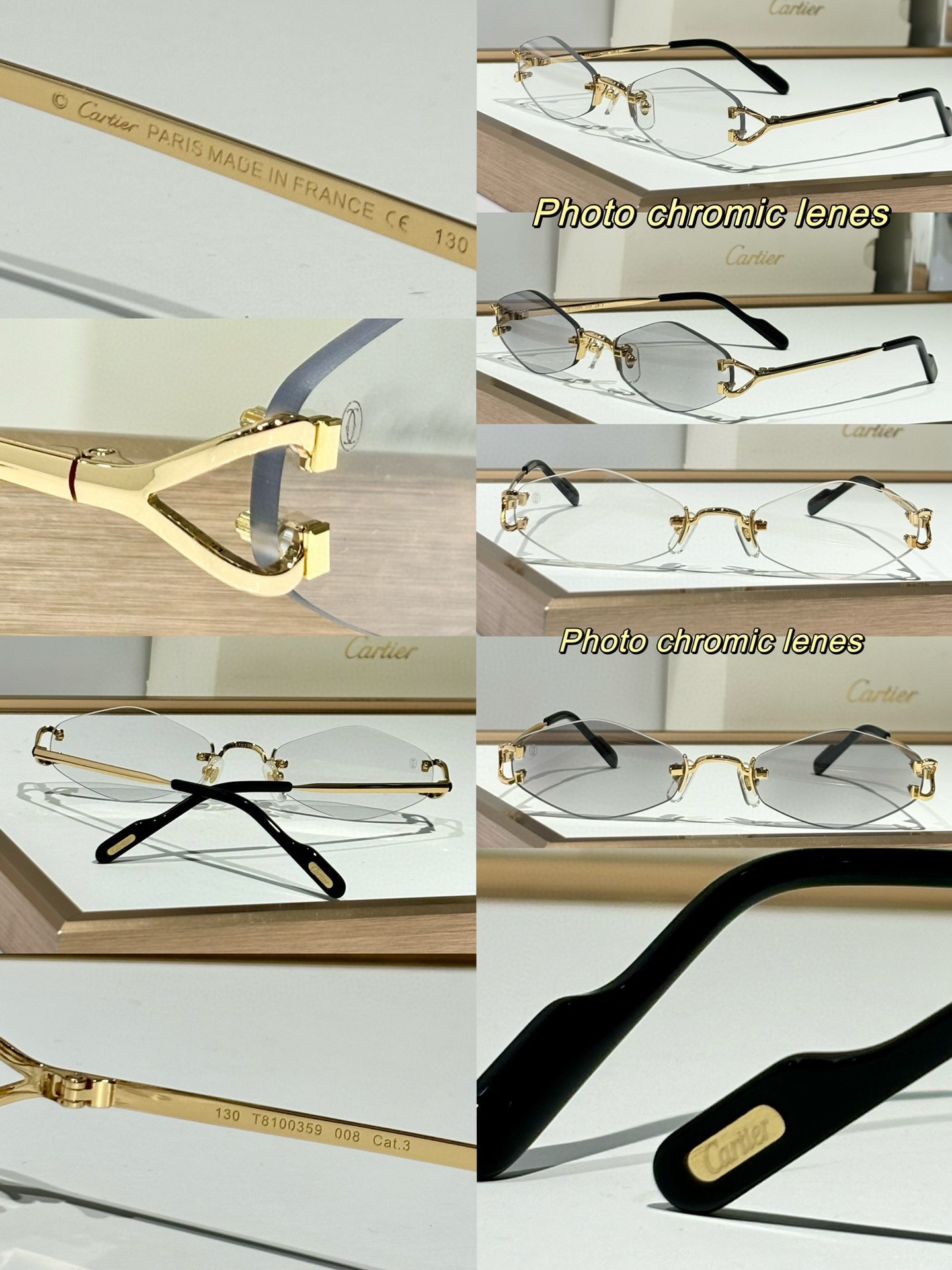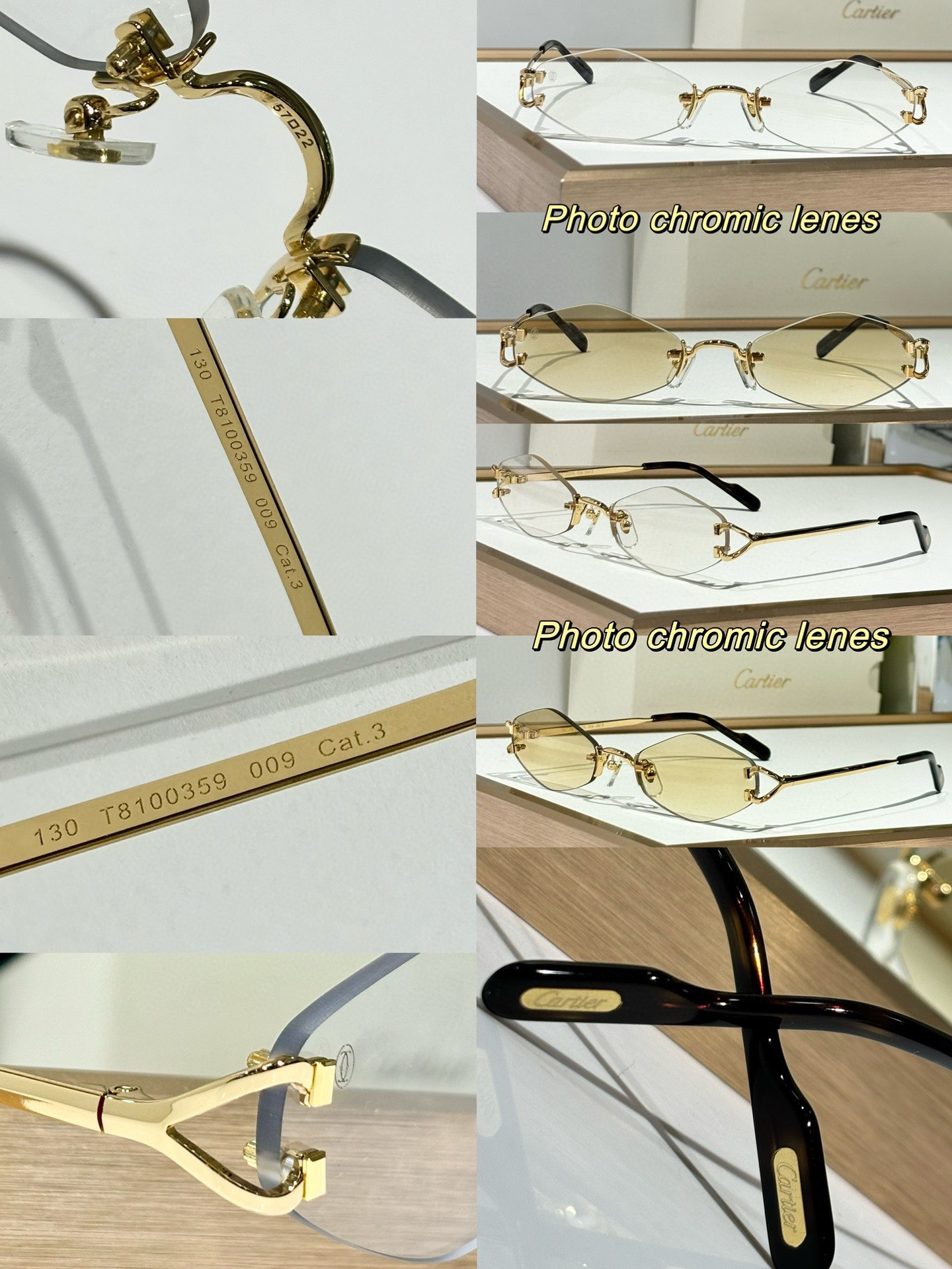 这款太阳眼镜是AAAAA 1:1 质量 (非常棒). 使用了和原版一模一样的材料. 商标部分也保持了和卡地亚/Cartier一样. 图片拍摄是实物太阳眼镜拍摄, 您所收到的实物保证和我们图片一模一样.