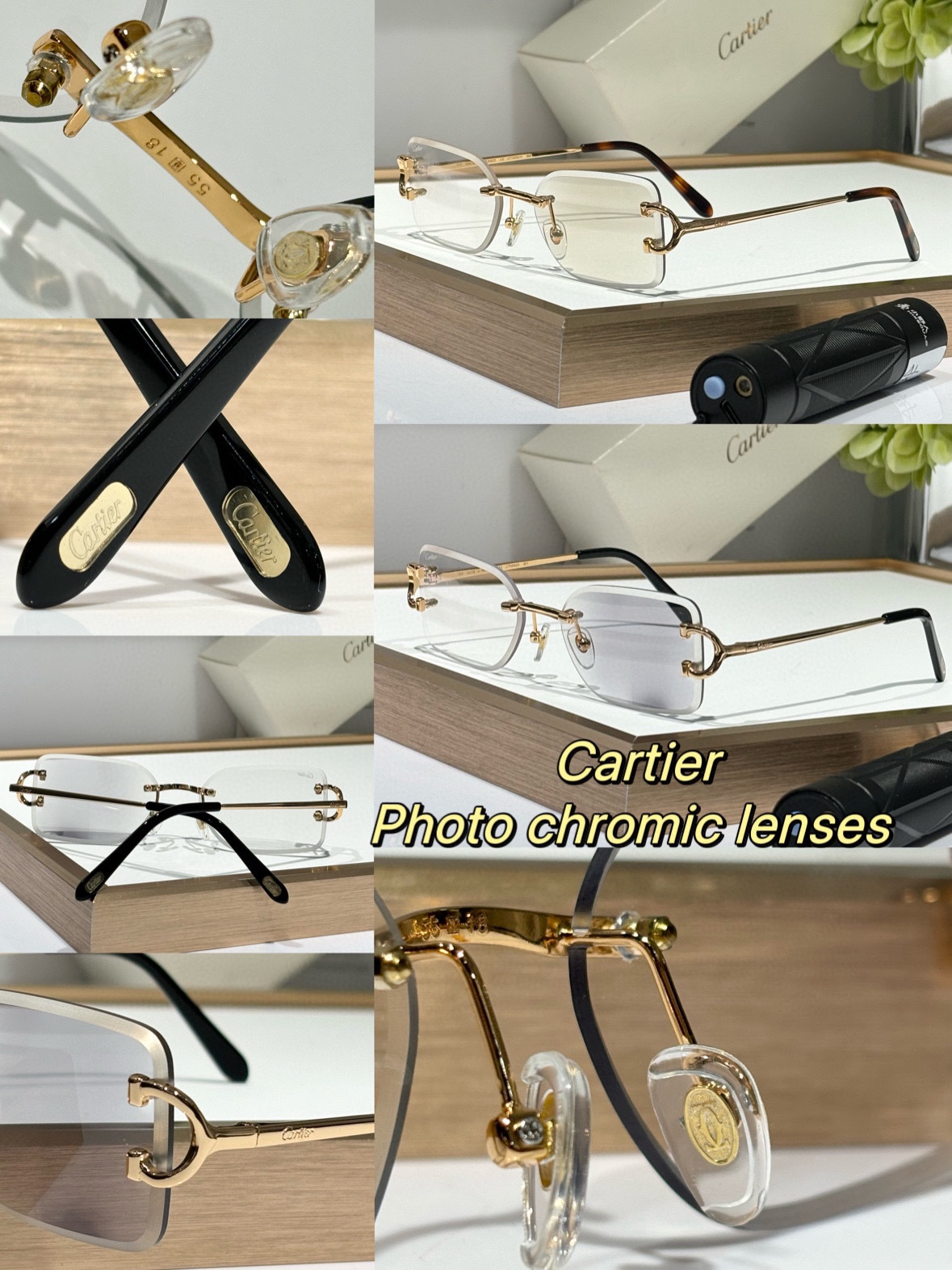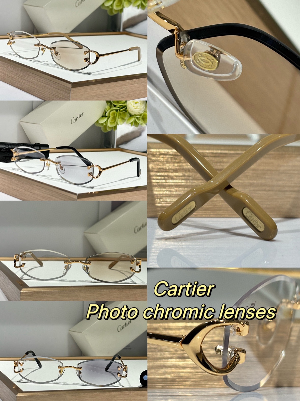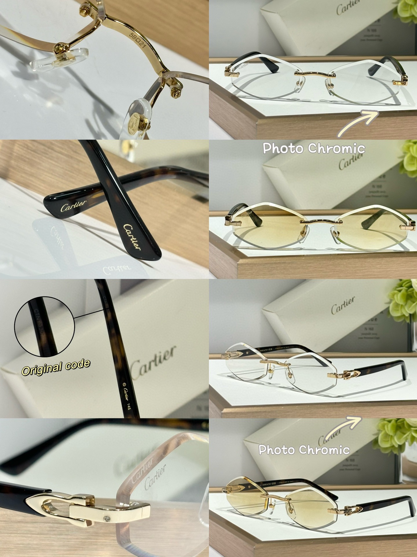 这款太阳眼镜是AAAAA 1:1 质量 (非常棒). 使用了和原版一模一样的材料. 商标部分也保持了和卡地亚/Cartier一样. 图片拍摄是实物太阳眼镜拍摄, 您所收到的实物保证和我们图片一模一样.
