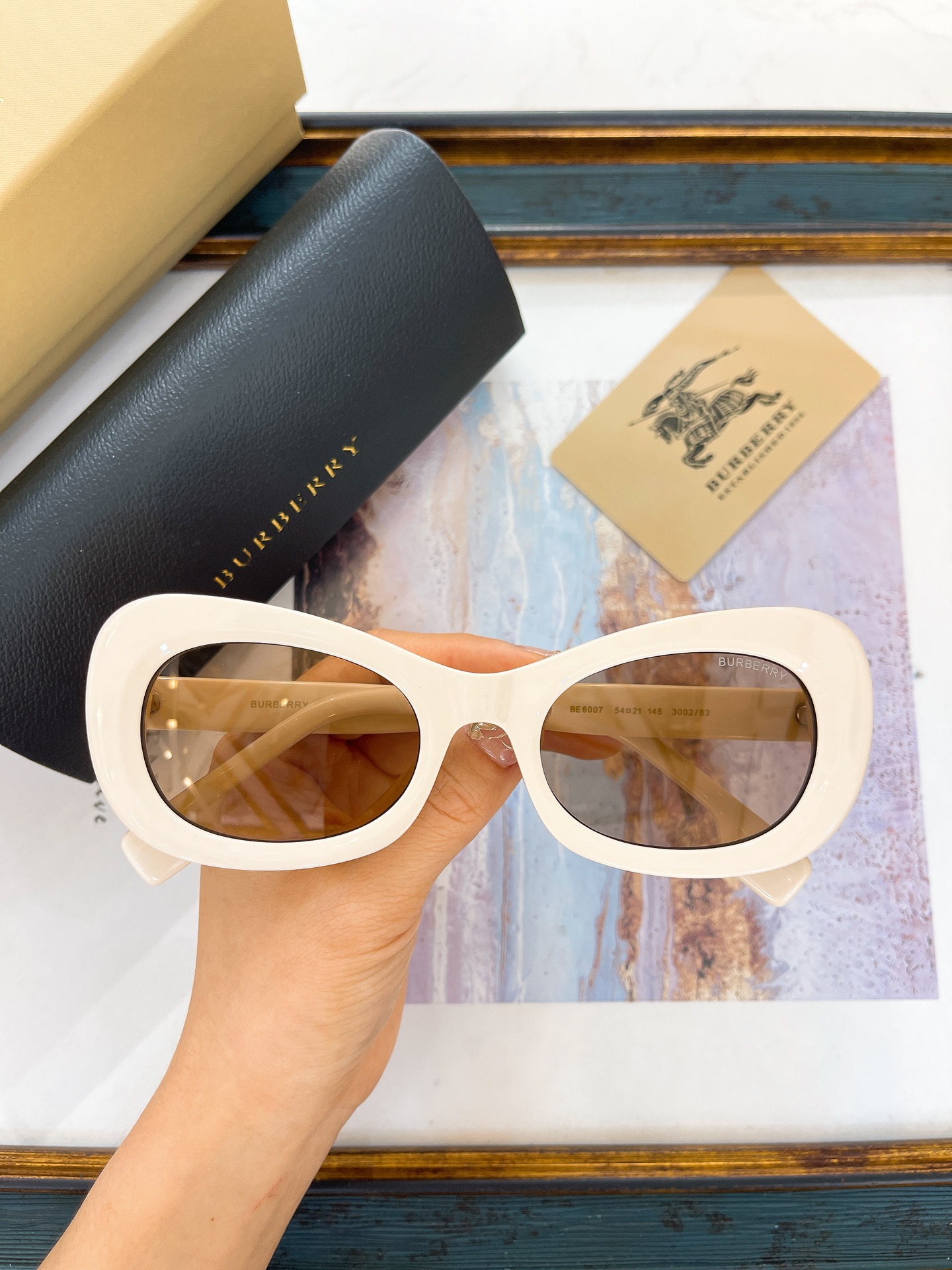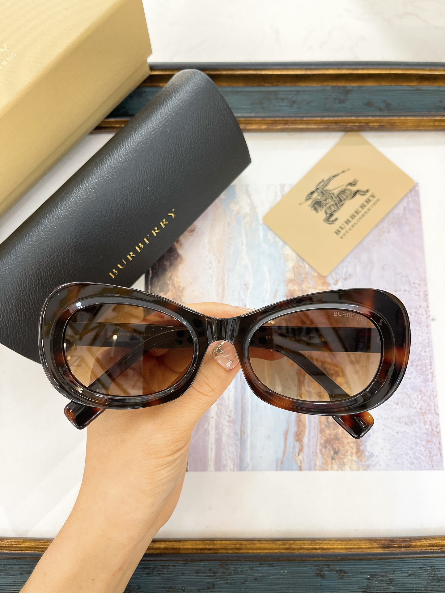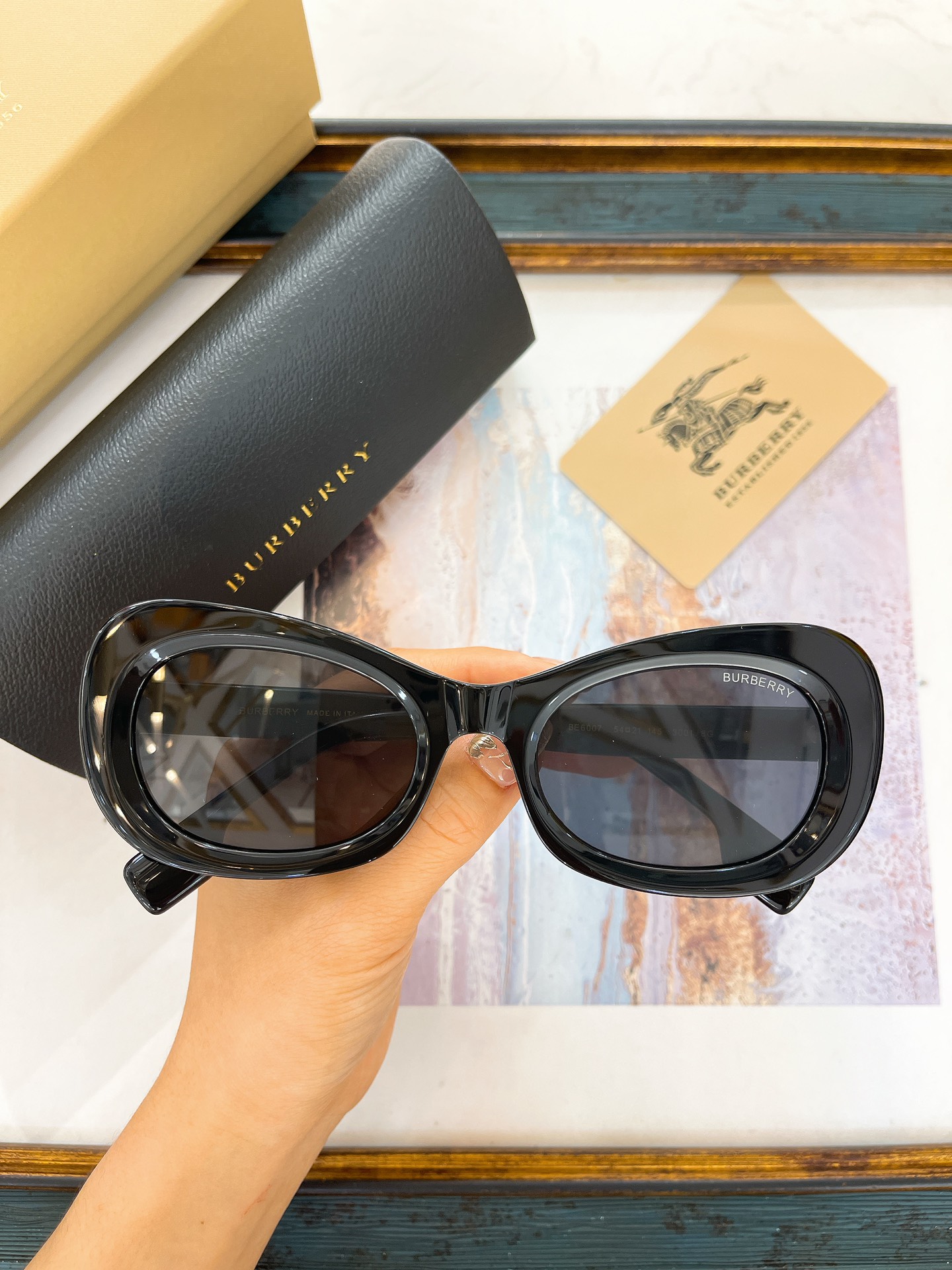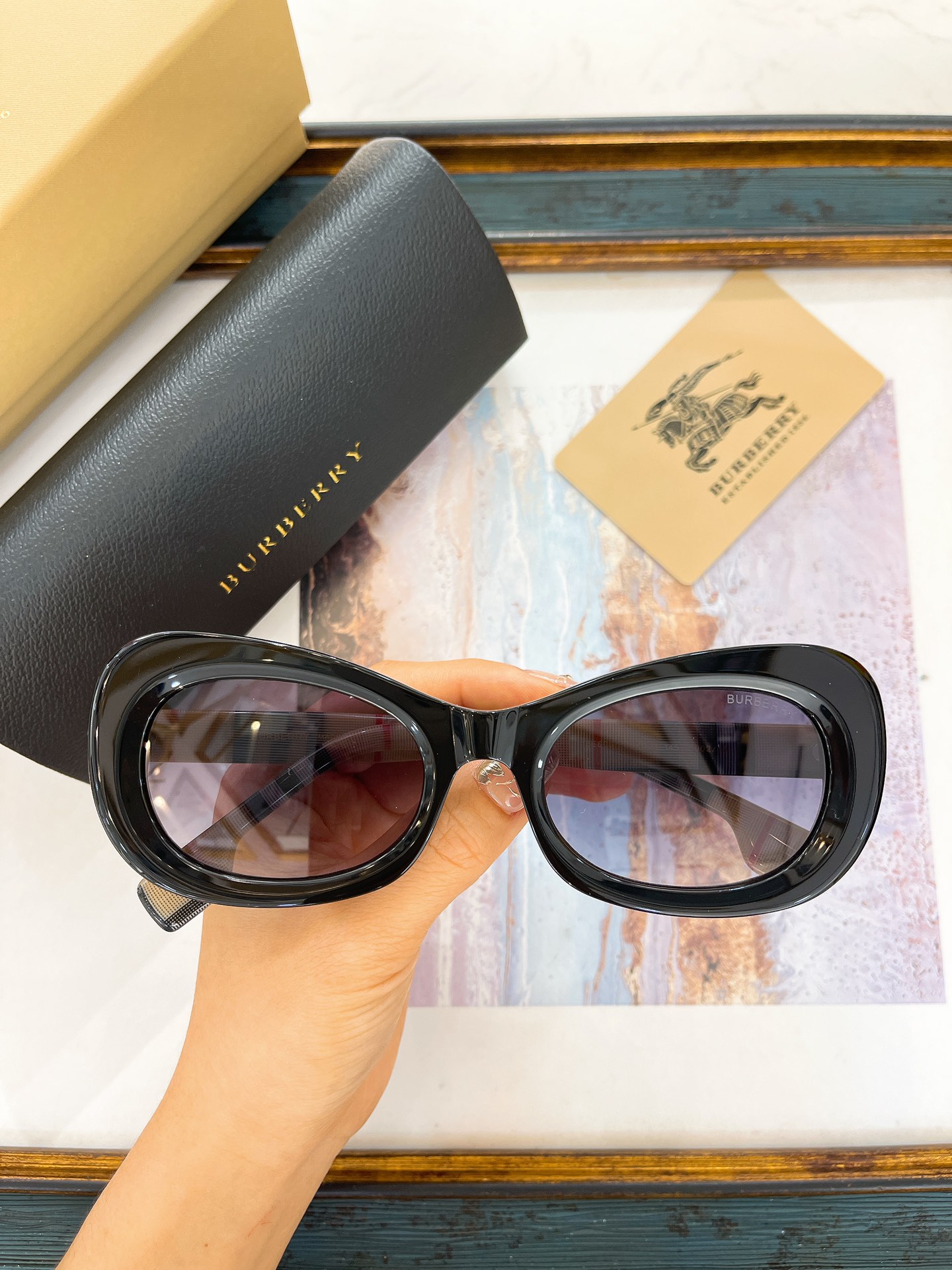 这款太阳眼镜是AAAAA 1:1 质量 (非常棒). 使用了和原版一模一样的材料. 商标部分也保持了和巴宝莉/Burberry一样. 图片拍摄是实物太阳眼镜拍摄, 您所收到的实物保证和我们图片一模一样.