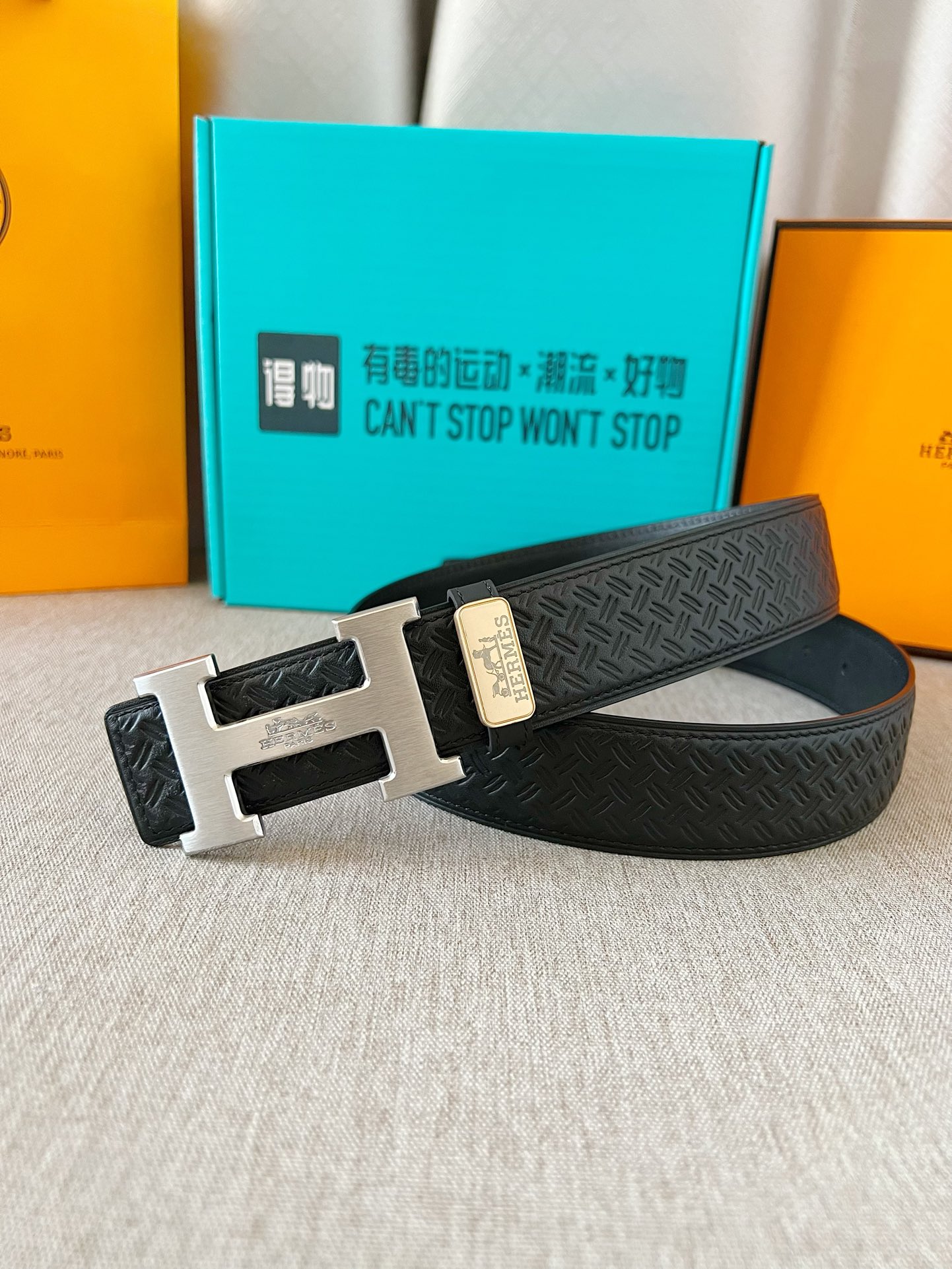 这款皮带是AAAAA 1:1 质量 (非常棒). 使用了和原版一模一样的材料. 商标部分也保持了和爱马仕/Hermes一样. 图片拍摄是实物皮带拍摄, 您所收到的实物保证和我们图片一模一样.