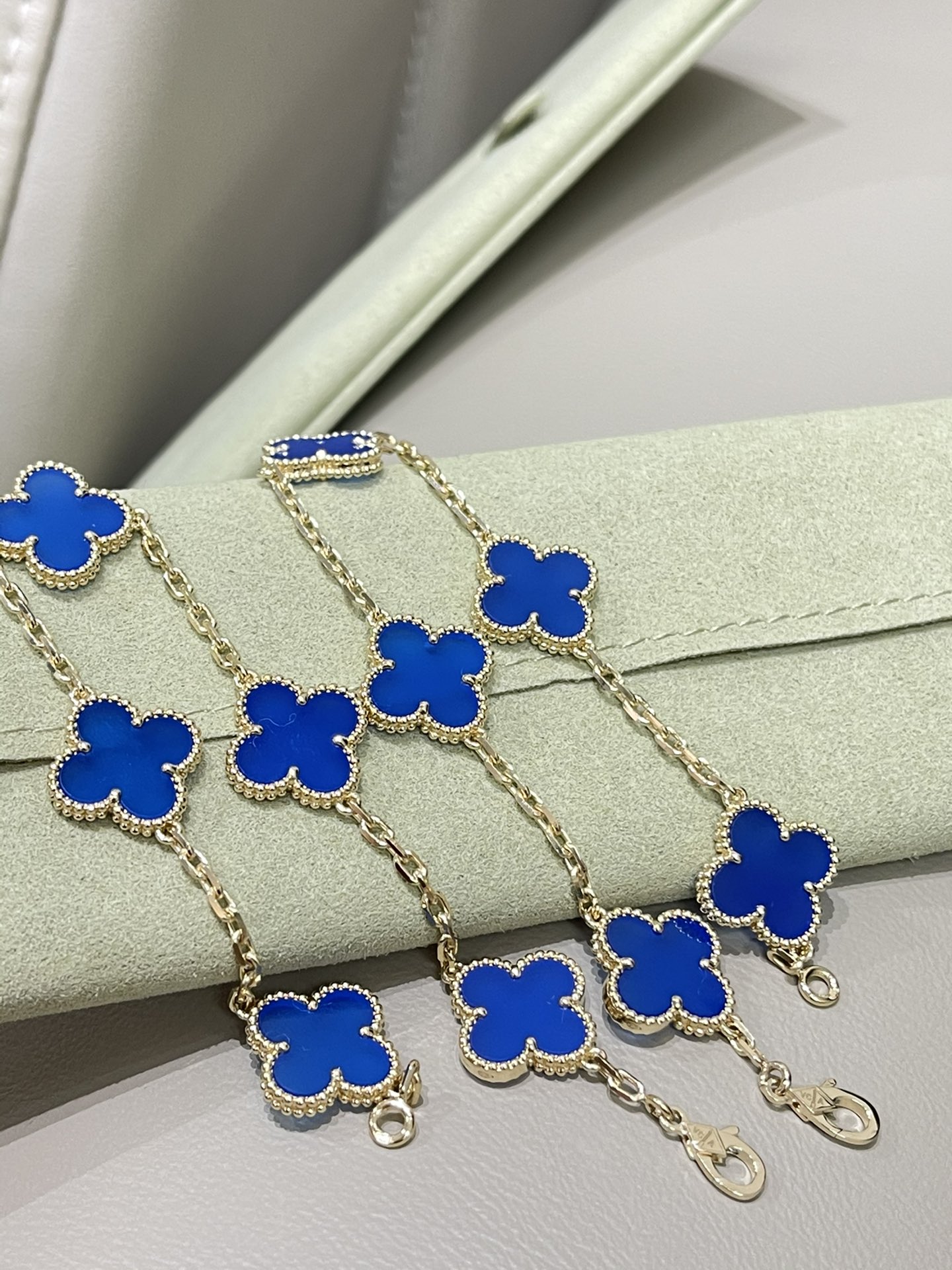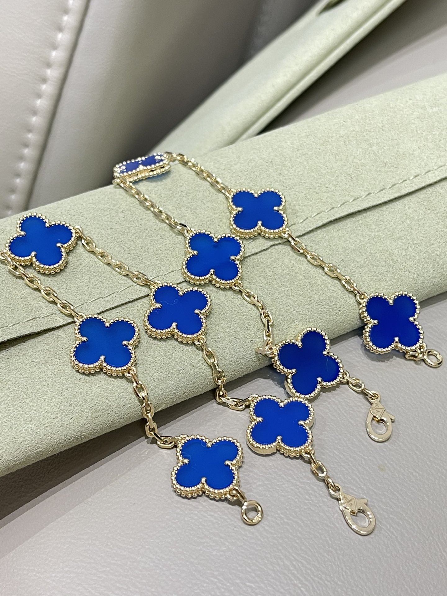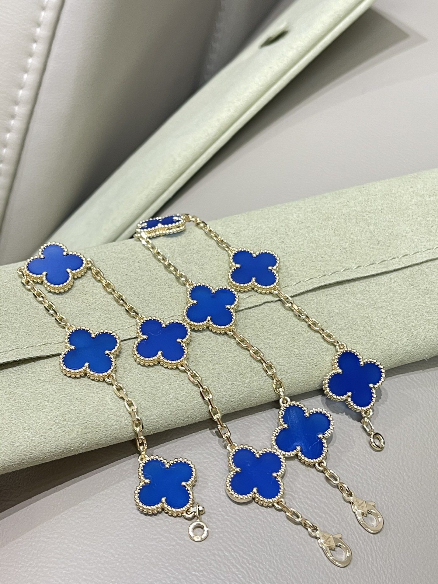这款首饰是AAAAA 1:1 质量 (非常棒). 使用了和原版一模一样的材料. 商标部分也保持了和梵克雅宝/Van Cleef & Arpels一样. 图片拍摄是实物首饰拍摄, 您所收到的实物保证和我们图片一模一样.
