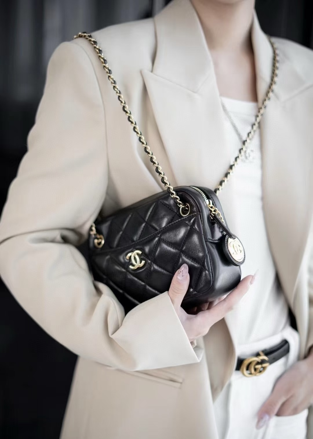 这款包包是AAAAA 1:1 质量 (非常棒). 使用了和原版一模一样的材料. 商标部分也保持了和香奈儿/Chanel一样. 图片拍摄是实物包包拍摄, 您所收到的实物保证和我们图片一模一样.