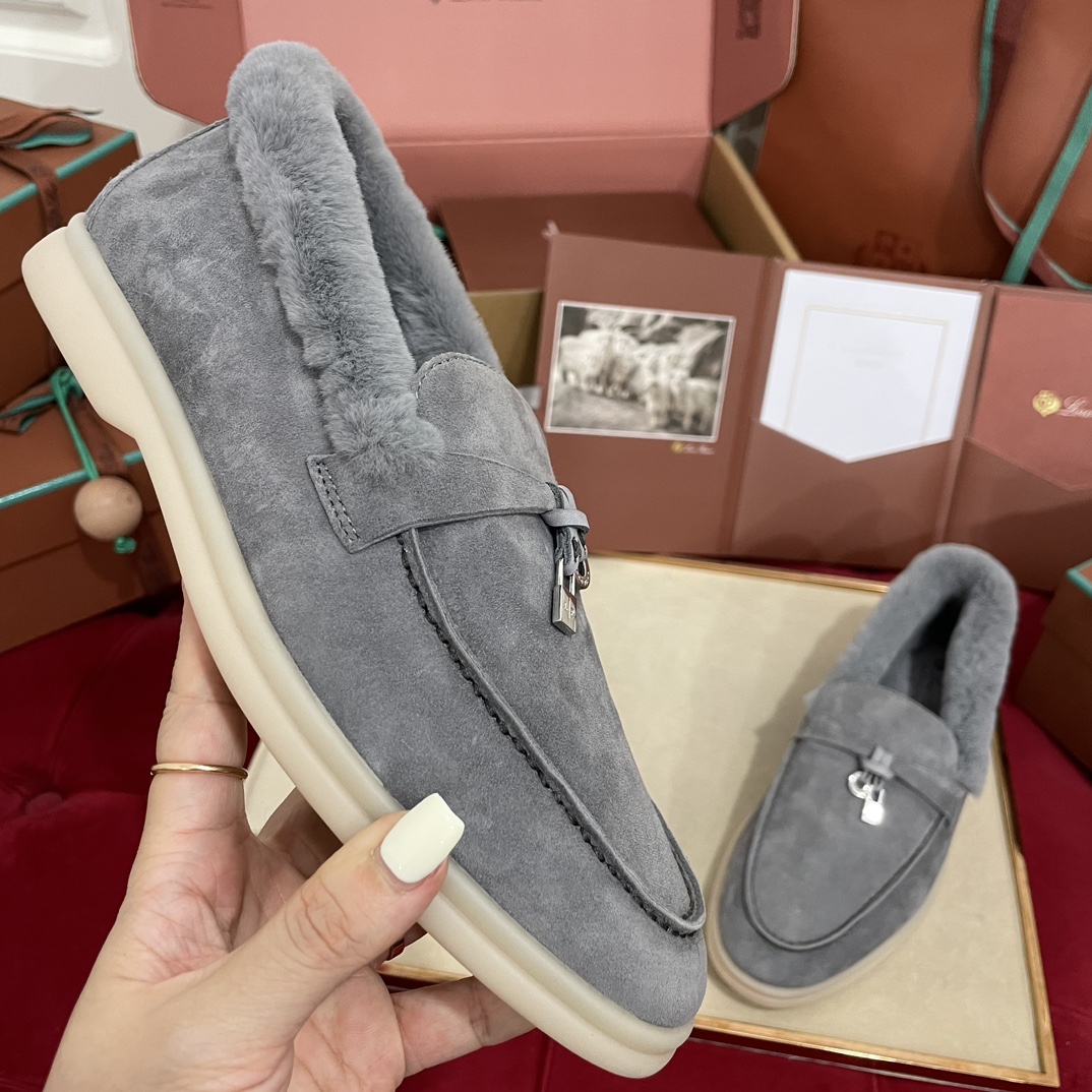 这款鞋子是AAAAA 1:1 质量 (非常棒). 使用了和原版一模一样的材料. 商标部分也保持了和洛罗皮亚纳/Loro Piana一样. 图片拍摄是实物鞋子拍摄, 您所收到的实物保证和我们图片一模一样.
