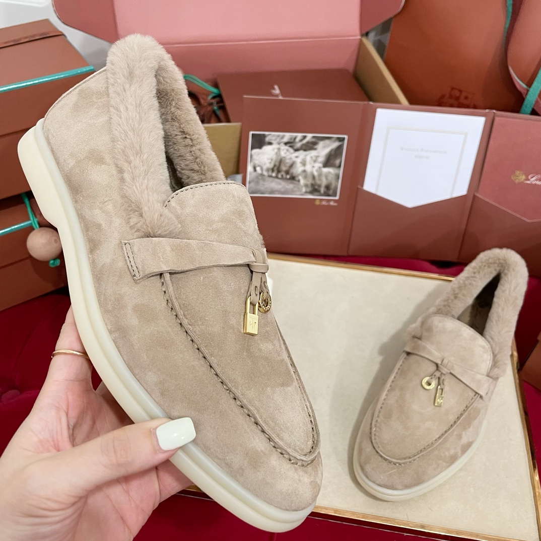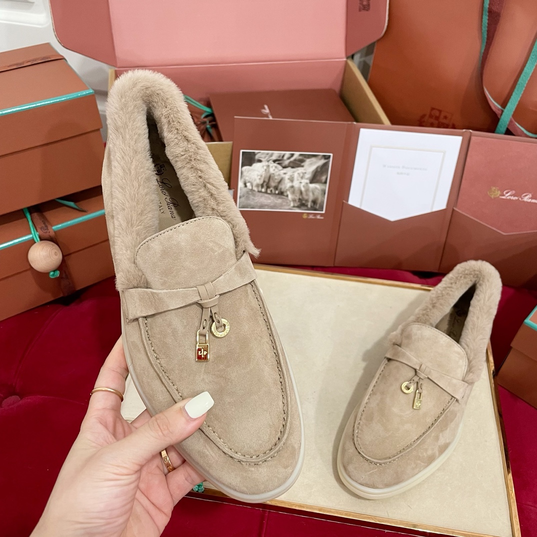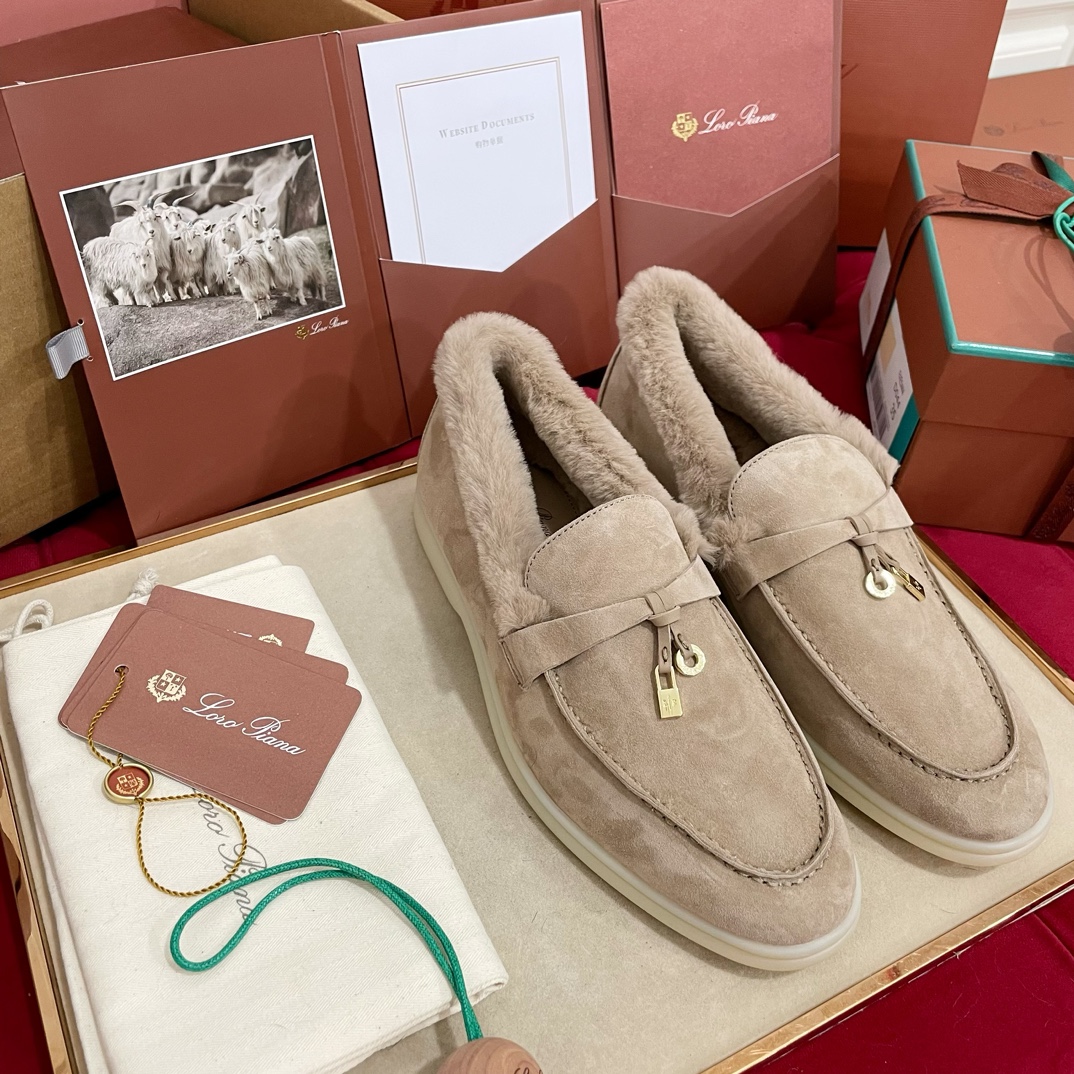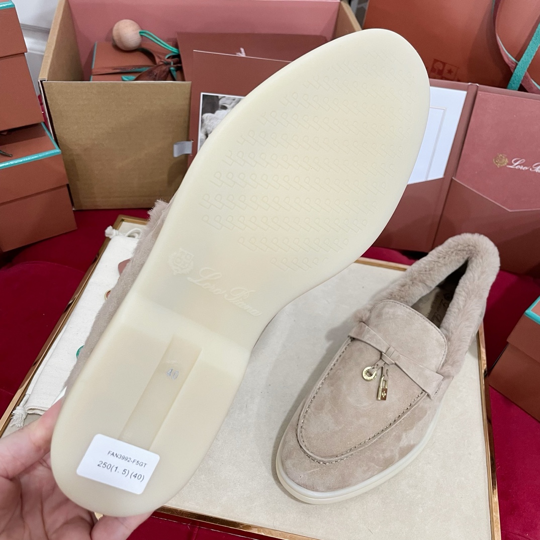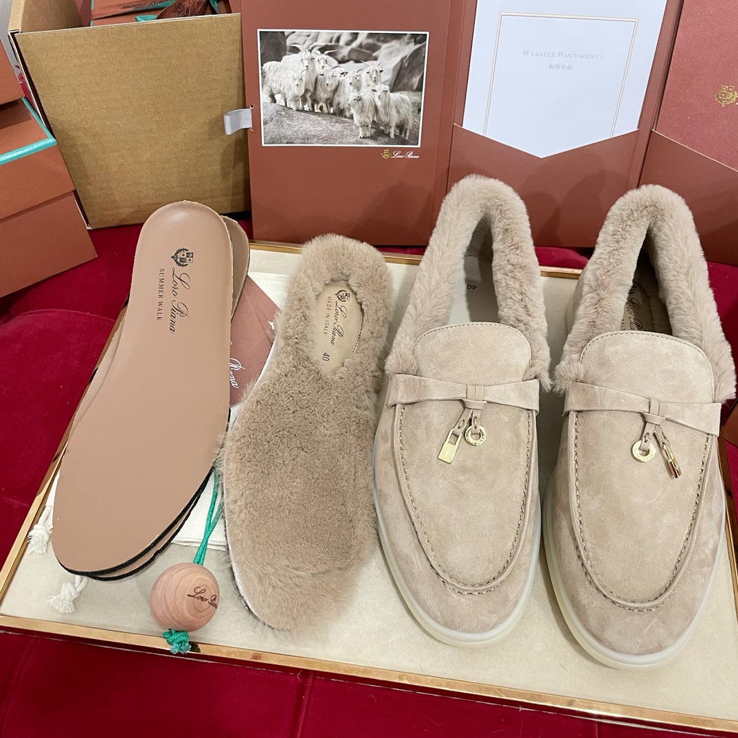 这款鞋子是AAAAA 1:1 质量 (非常棒). 使用了和原版一模一样的材料. 商标部分也保持了和洛罗皮亚纳/Loro Piana一样. 图片拍摄是实物鞋子拍摄, 您所收到的实物保证和我们图片一模一样.