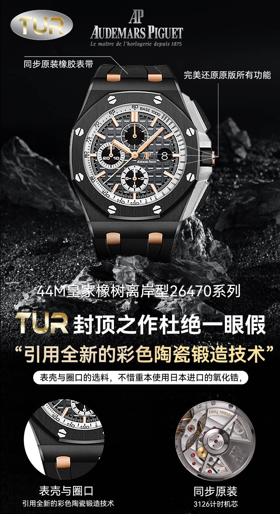 这款手表是AAAAA 1:1 质量 (非常棒). 使用了和原版一模一样的材料. 商标部分也保持了和爱彼/Audemars Piguet一样. 图片拍摄是实物手表拍摄, 您所收到的实物保证和我们图片一模一样.
