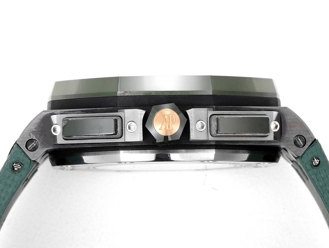 这款手表是AAAAA 1:1 质量 (非常棒). 使用了和原版一模一样的材料. 商标部分也保持了和爱彼/Audemars Piguet一样. 图片拍摄是实物手表拍摄, 您所收到的实物保证和我们图片一模一样.