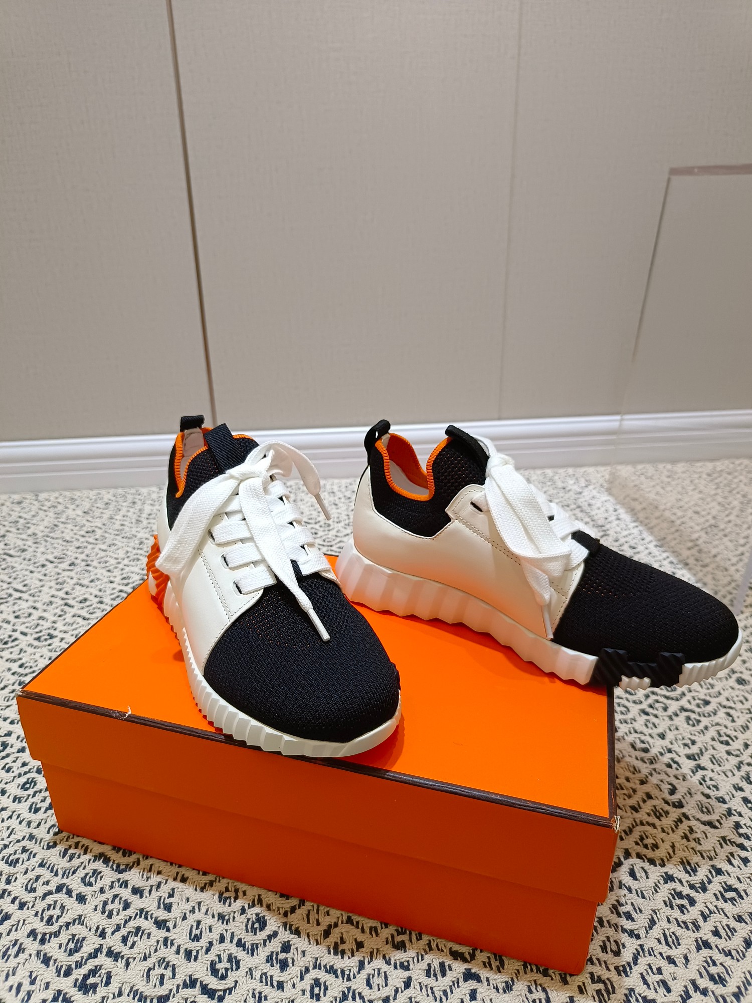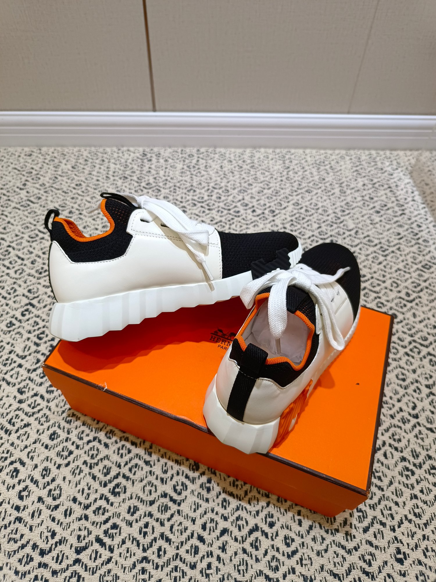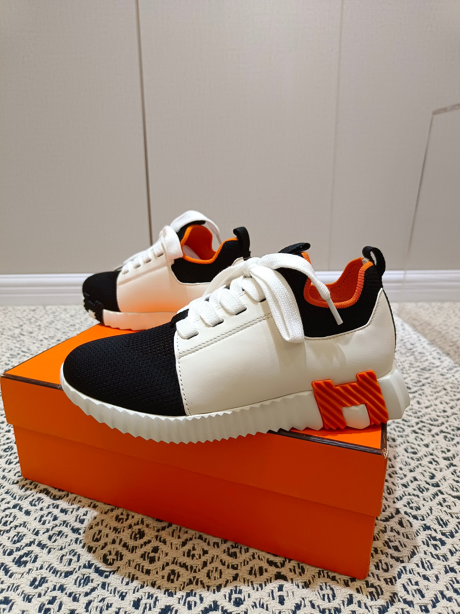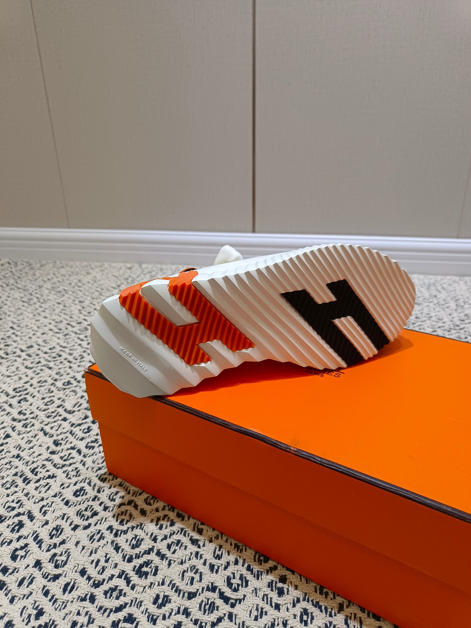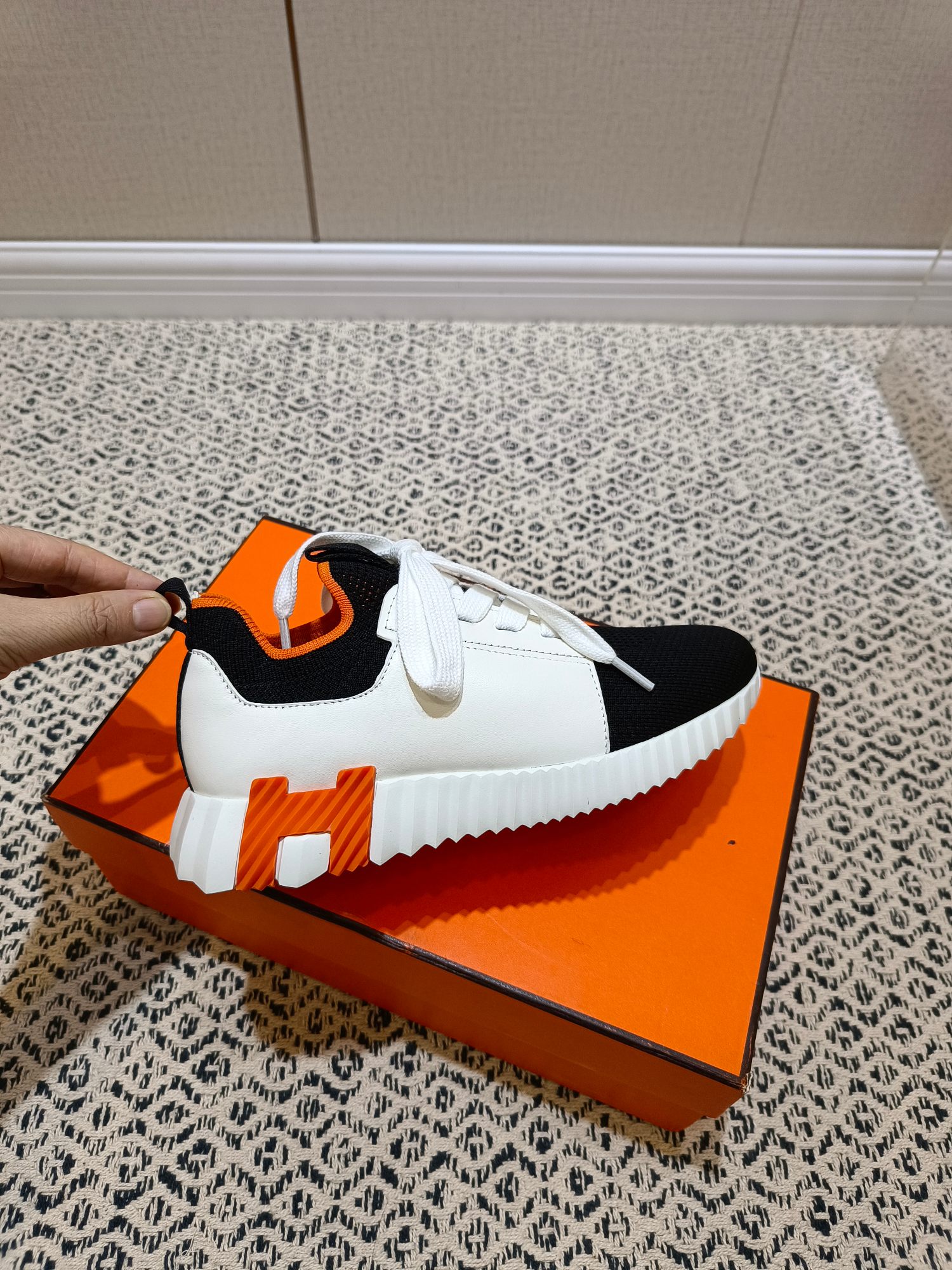 这款鞋子是AAAAA 1:1 质量 (非常棒). 使用了和原版一模一样的材料. 商标部分也保持了和爱马仕/Hermes一样. 图片拍摄是实物鞋子拍摄, 您所收到的实物保证和我们图片一模一样.