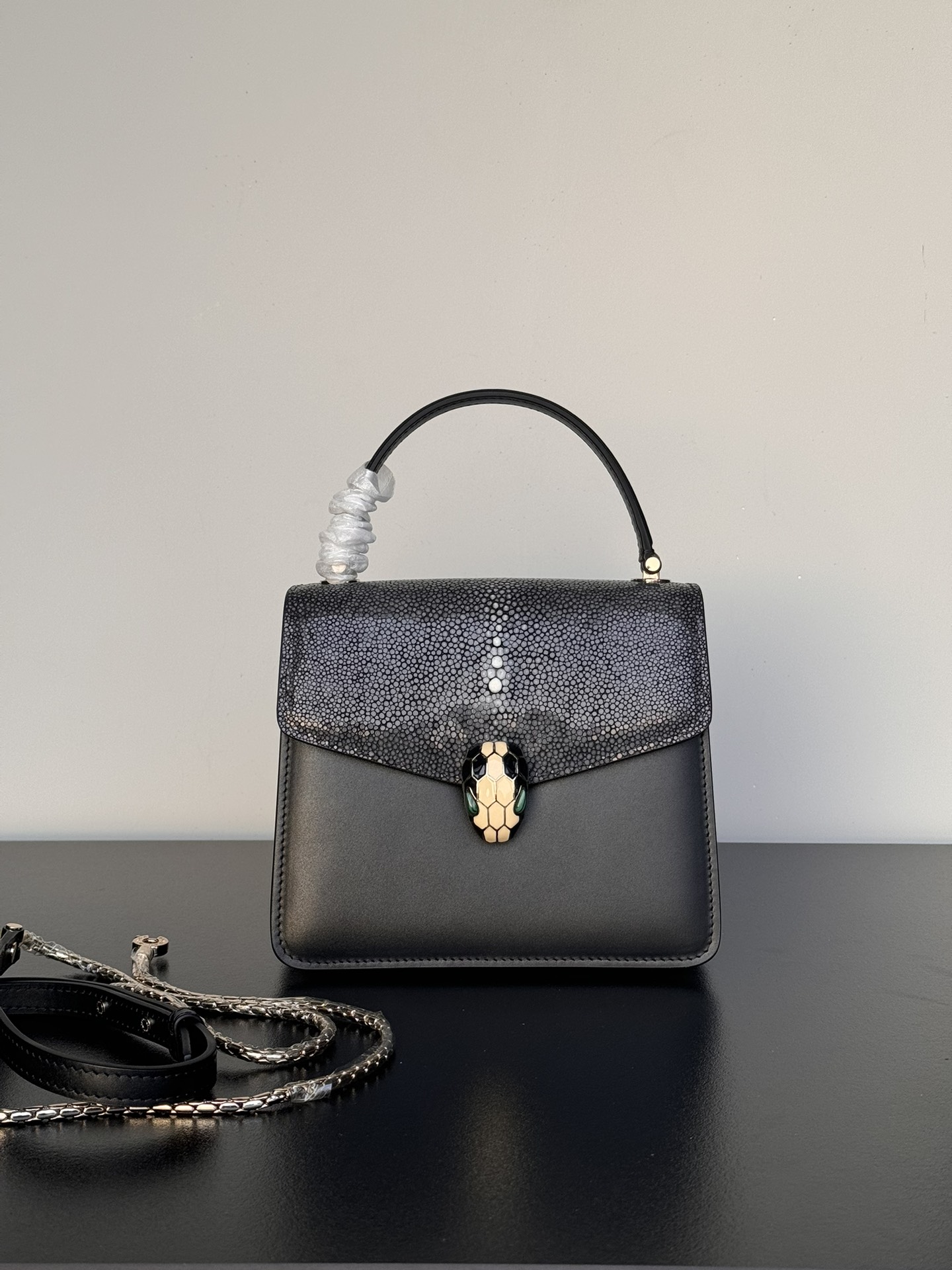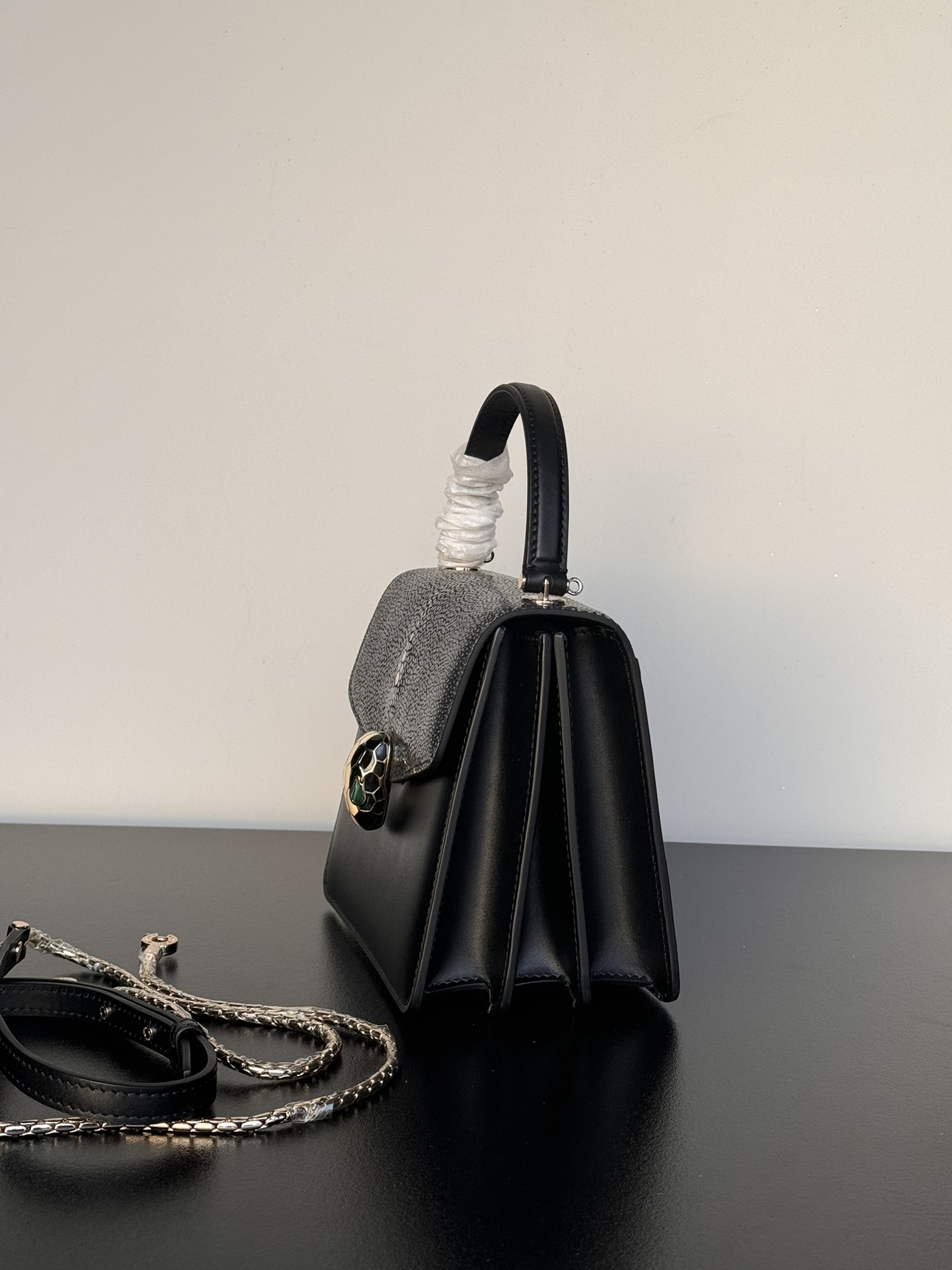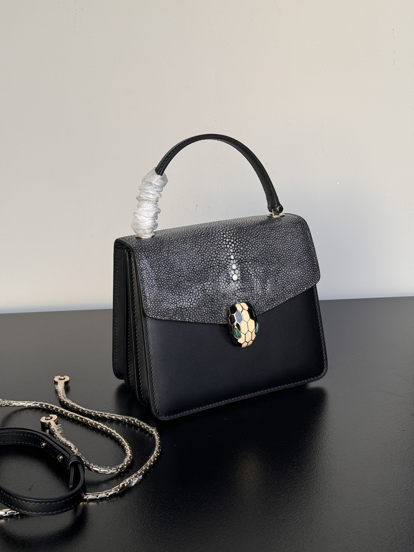 这款包包是AAAAA 1:1 质量 (非常棒). 使用了和原版一模一样的材料. 商标部分也保持了和宝格丽/Bulgari一样. 图片拍摄是实物包包拍摄, 您所收到的实物保证和我们图片一模一样.