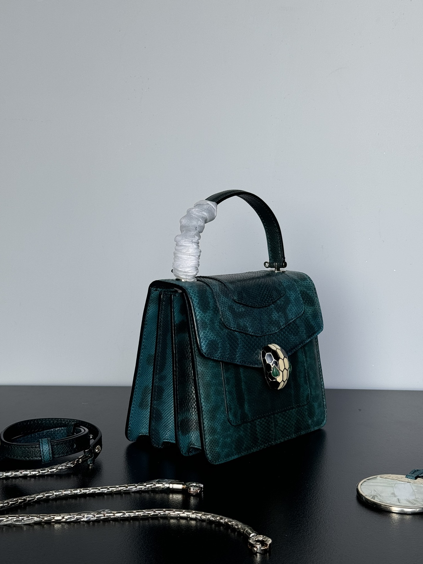 这款包包是AAAAA 1:1 质量 (非常棒). 使用了和原版一模一样的材料. 商标部分也保持了和宝格丽/Bulgari一样. 图片拍摄是实物包包拍摄, 您所收到的实物保证和我们图片一模一样.
