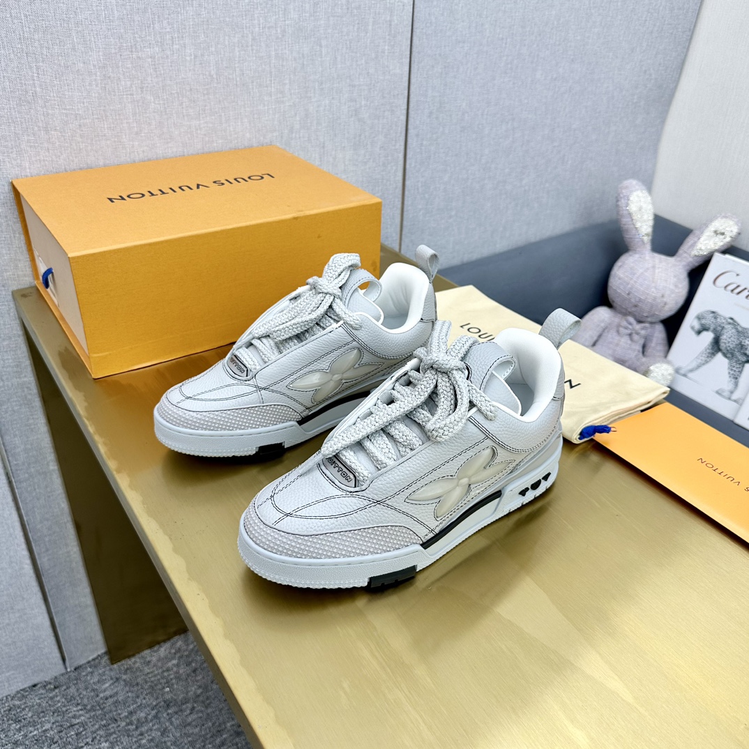 这款鞋子是AAAAA 1:1 质量 (非常棒). 使用了和原版一模一样的材料. 商标部分也保持了和路易威登/Louis Vuitton一样. 图片拍摄是实物鞋子拍摄, 您所收到的实物保证和我们图片一模一样.