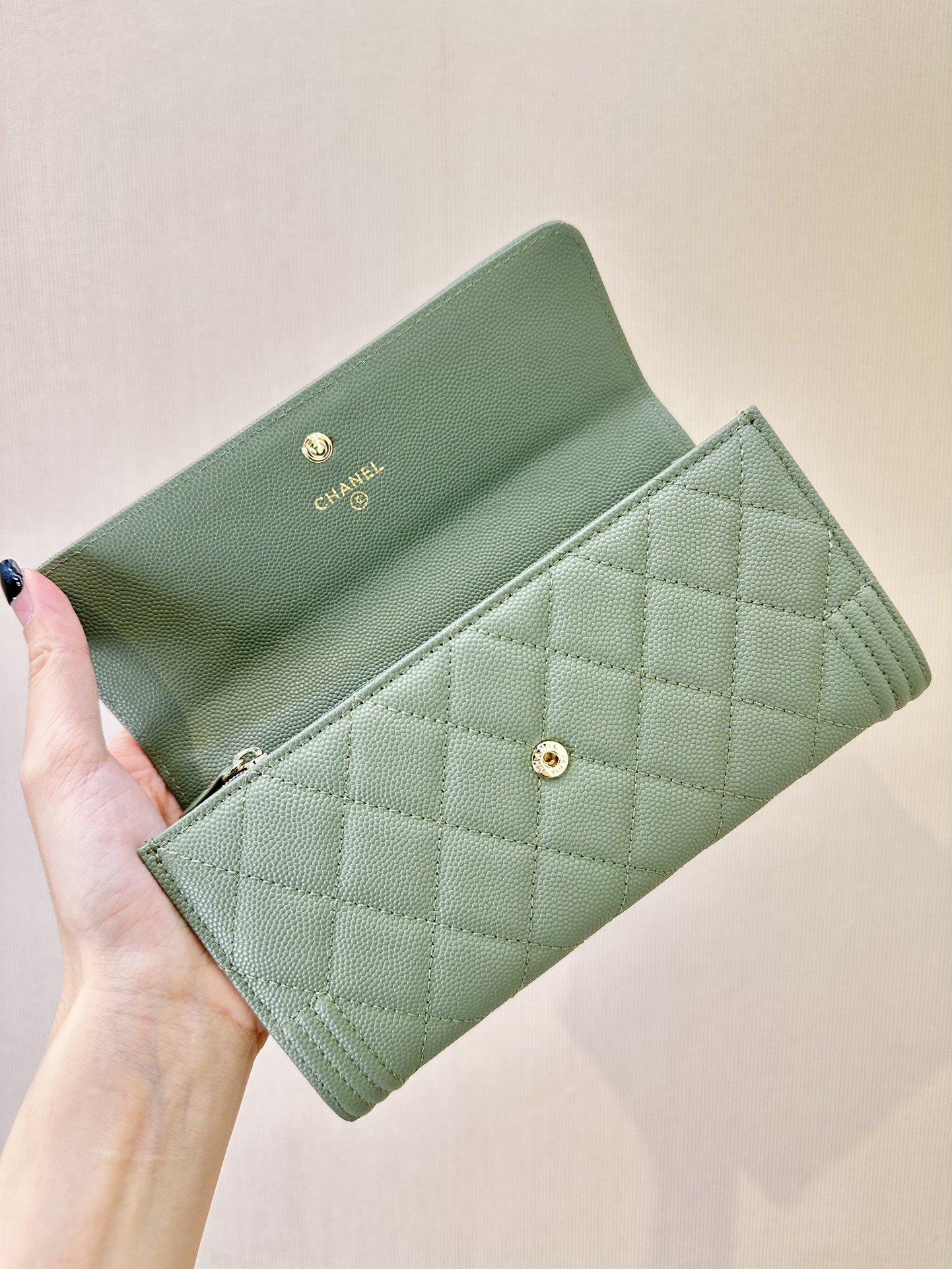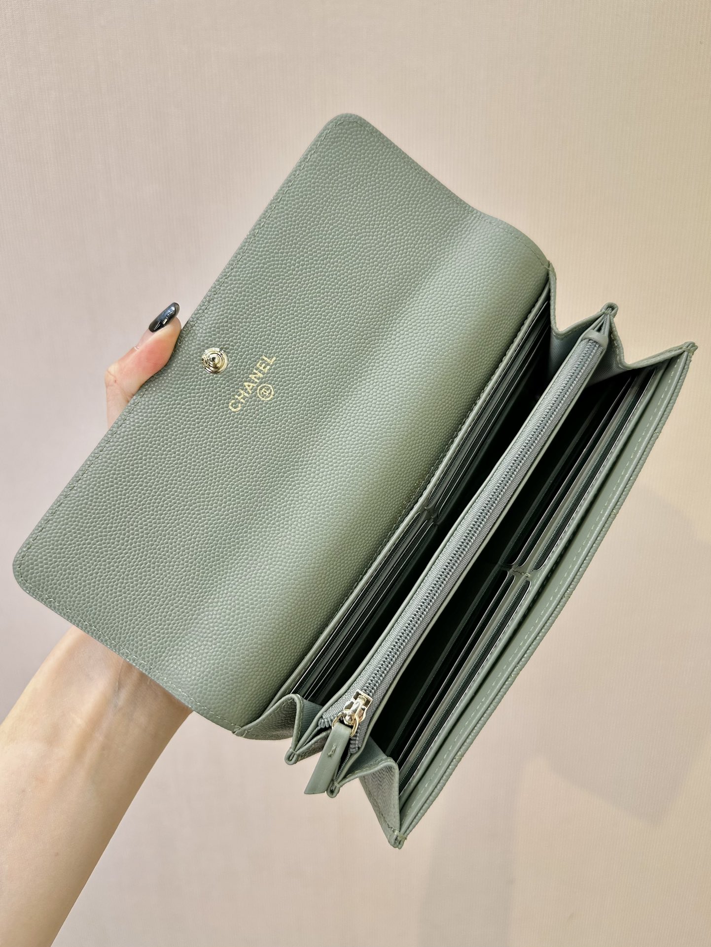这款钱包是AAAAA 1:1 质量 (非常棒). 使用了和原版一模一样的材料. 商标部分也保持了和香奈儿/Chanel一样. 图片拍摄是实物钱包拍摄, 您所收到的实物保证和我们图片一模一样.