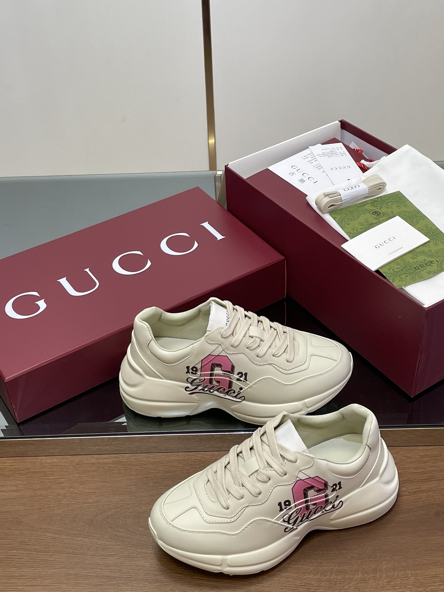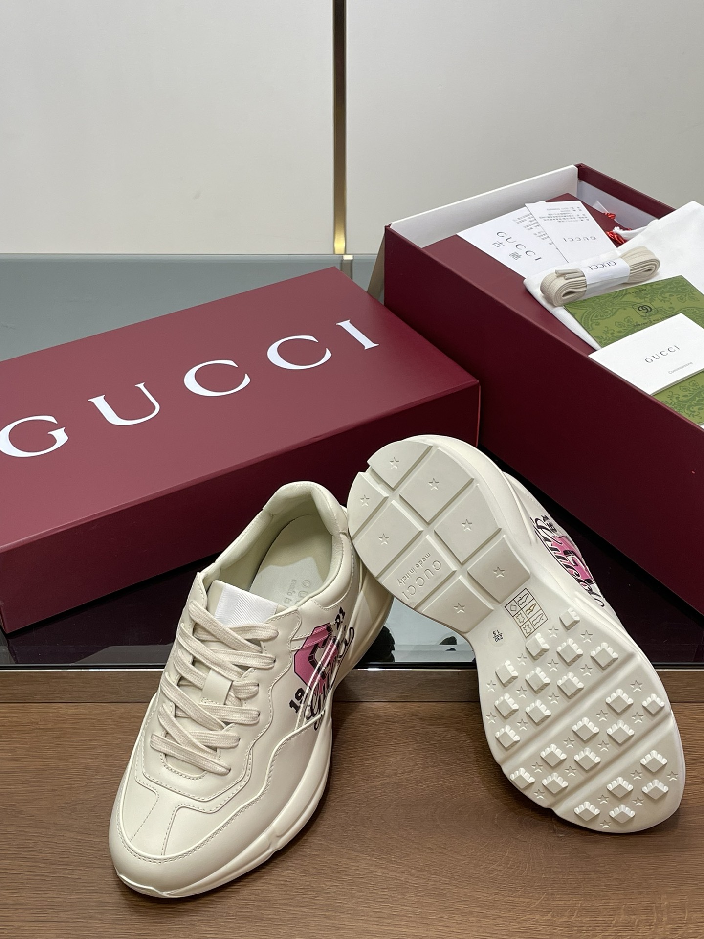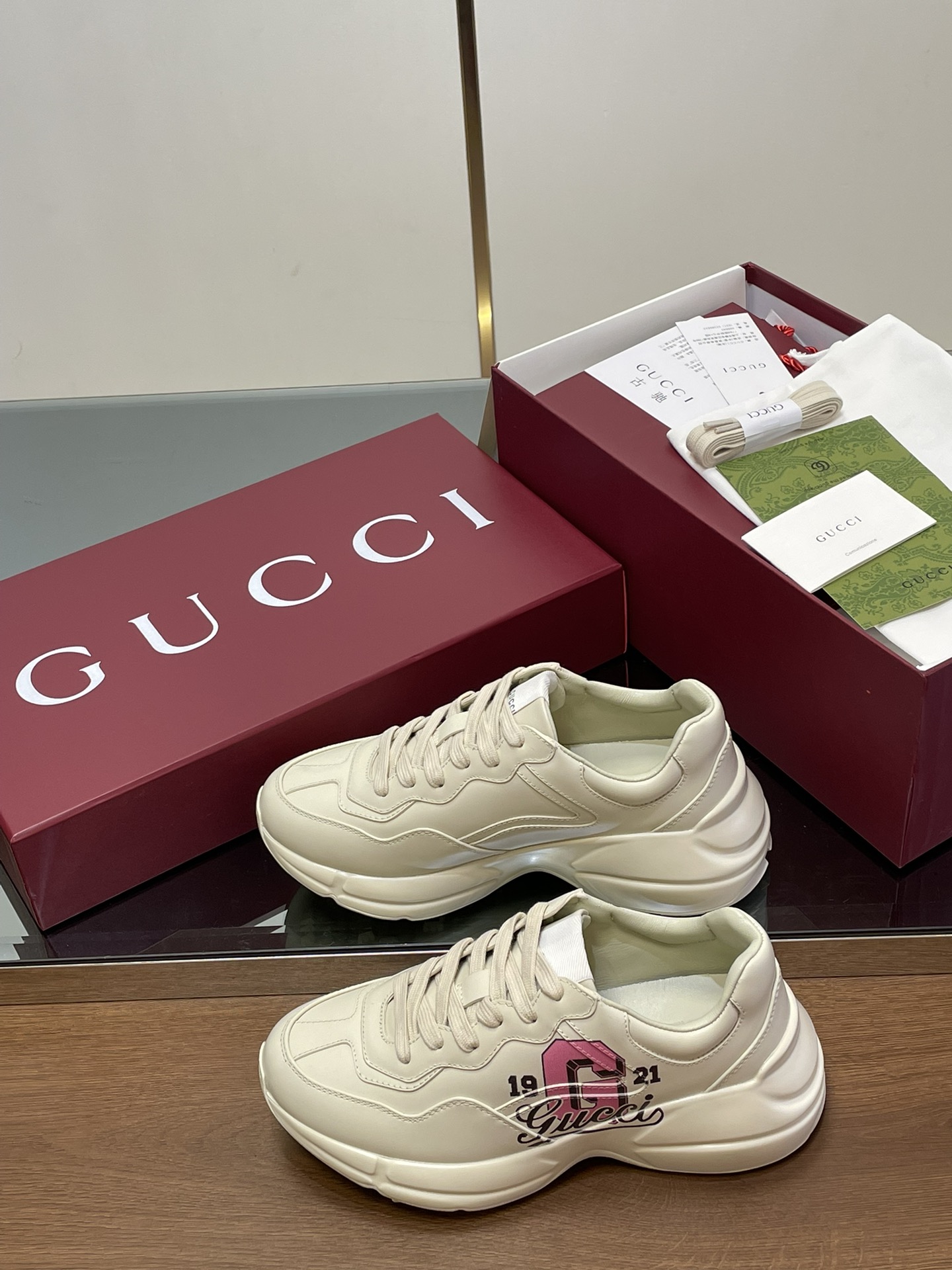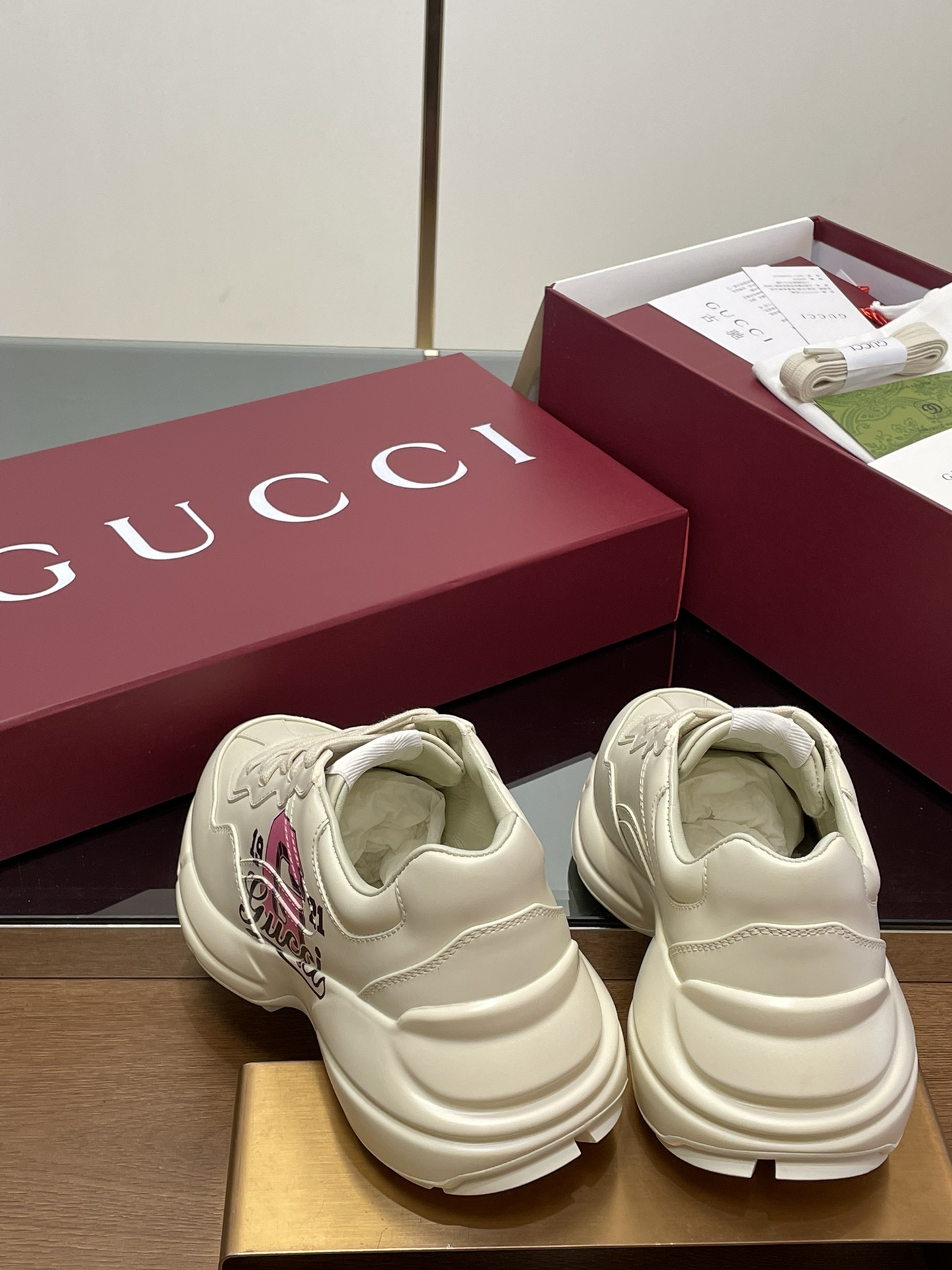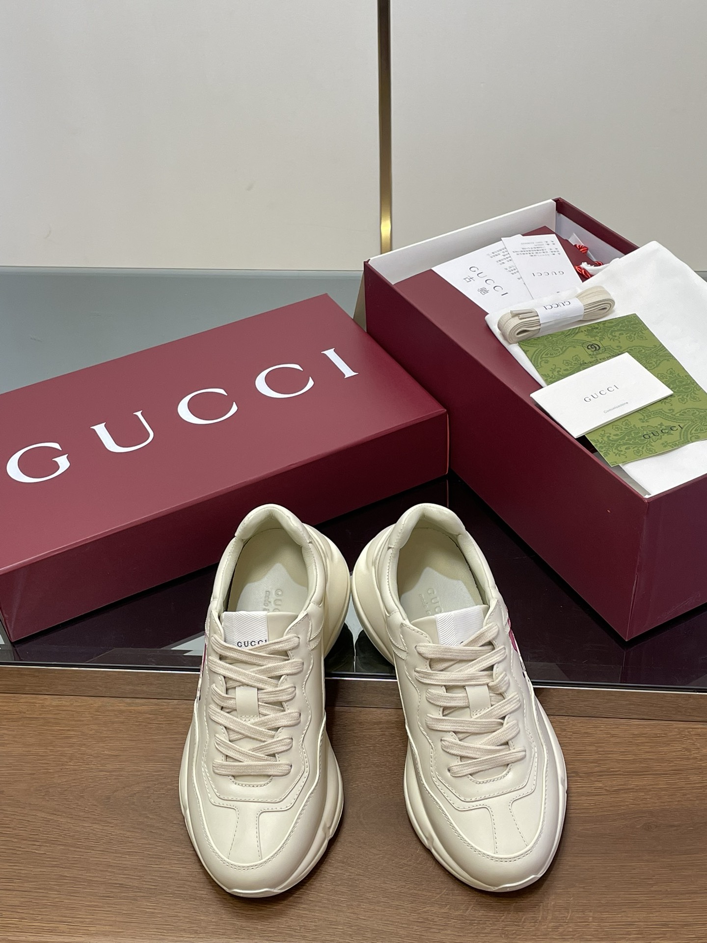 这款鞋子是AAAAA 1:1 质量 (非常棒). 使用了和原版一模一样的材料. 商标部分也保持了和古奇/Gucci一样. 图片拍摄是实物鞋子拍摄, 您所收到的实物保证和我们图片一模一样.
