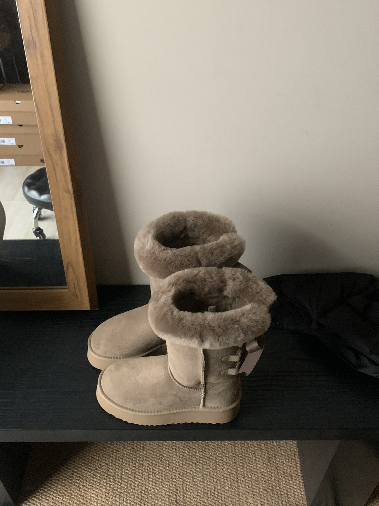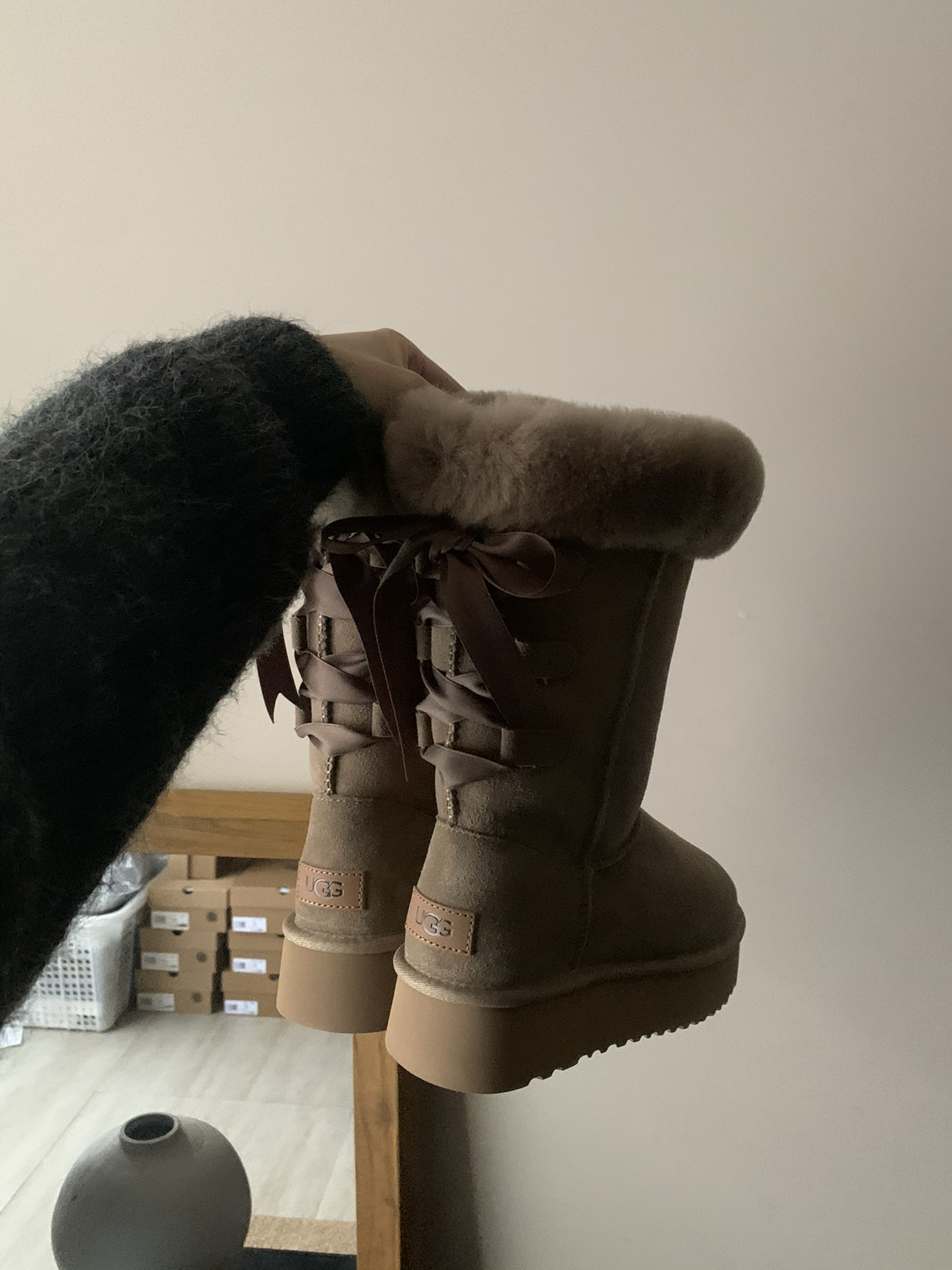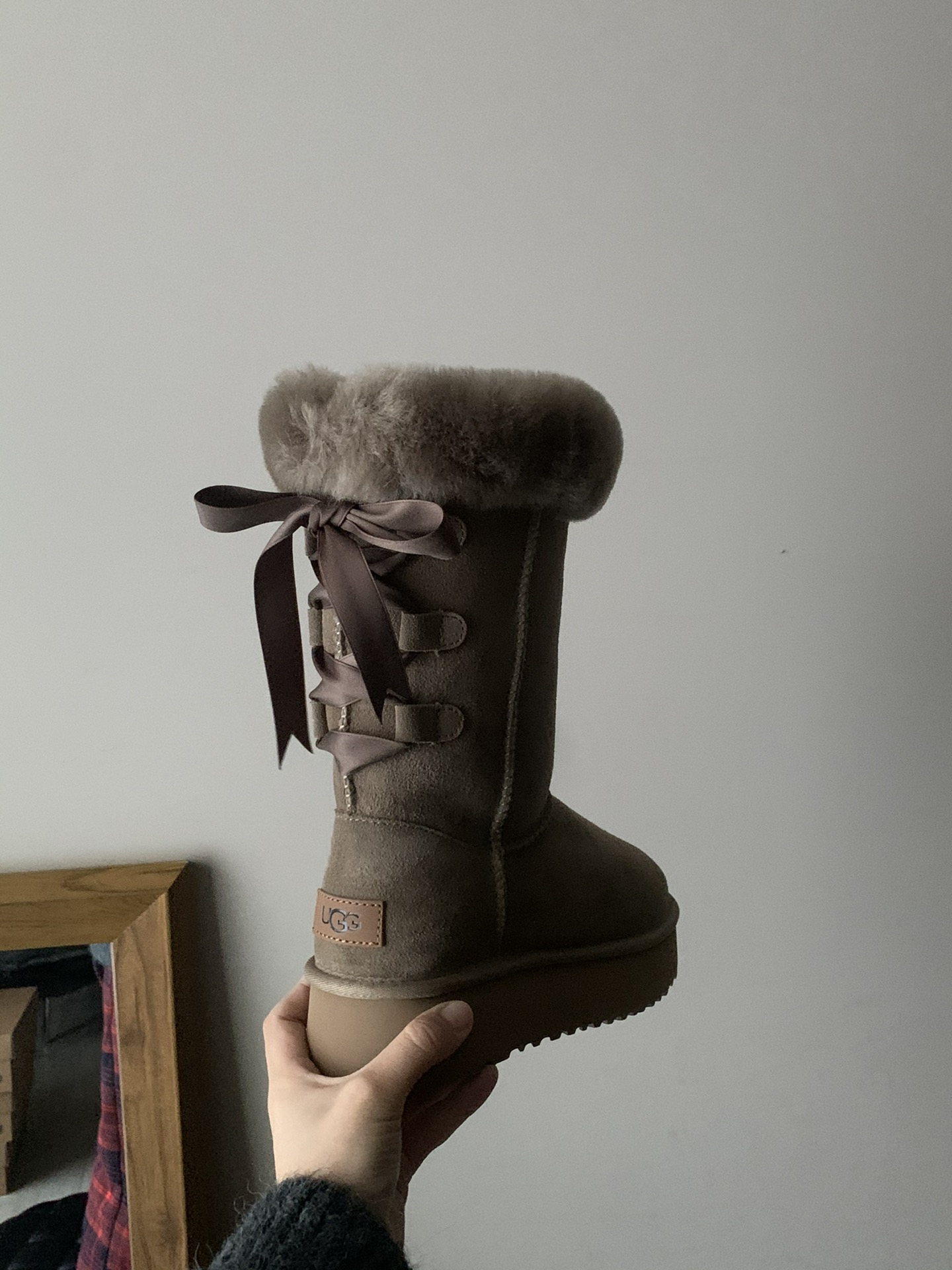 这款鞋子是AAAAA 1:1 质量 (非常棒). 使用了和原版一模一样的材料. 商标部分也保持了和UGG雪地靴一样. 图片拍摄是实物鞋子拍摄, 您所收到的实物保证和我们图片一模一样.