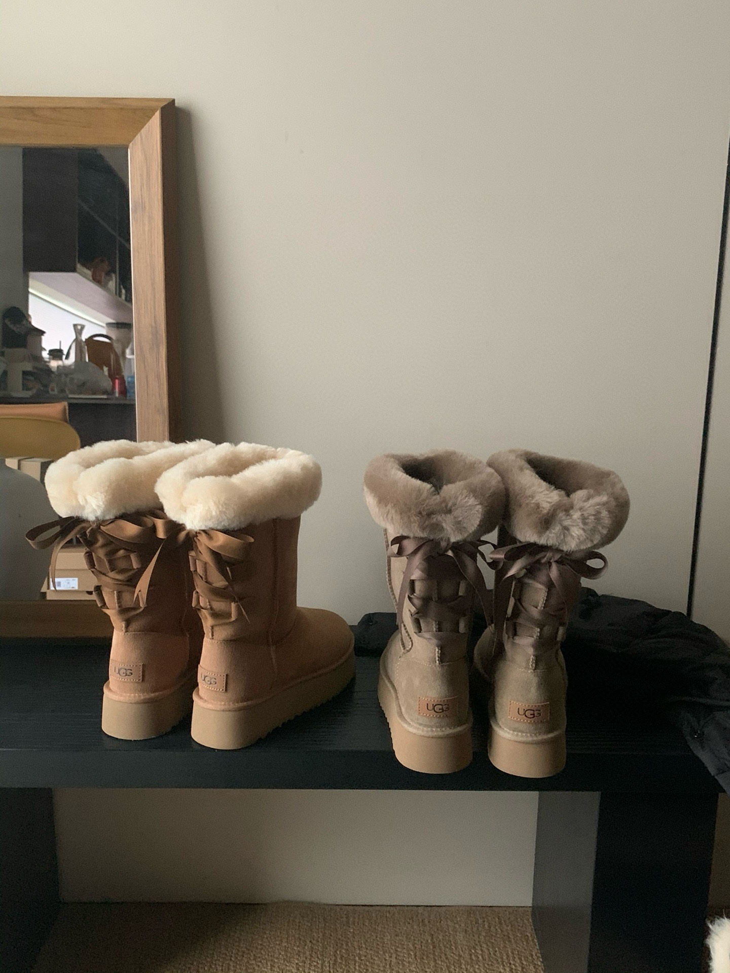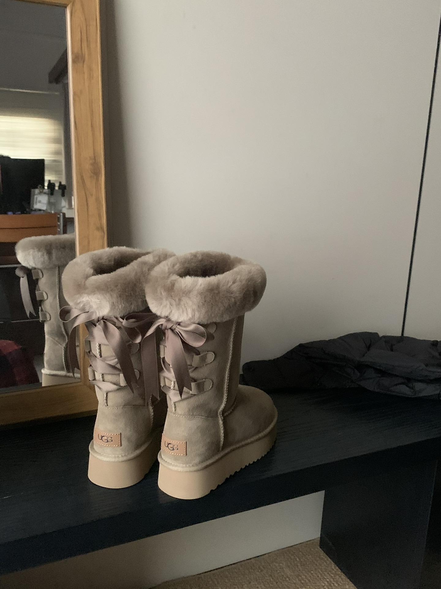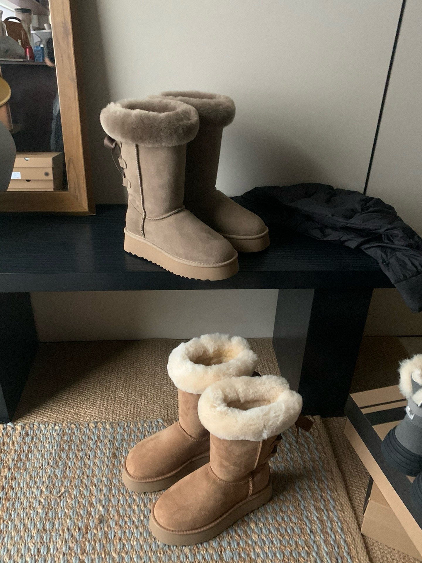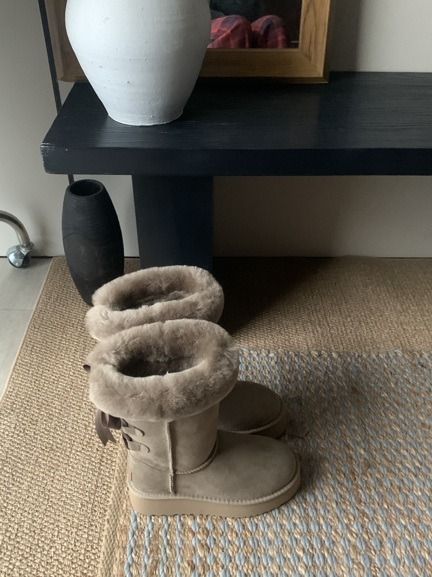 这款鞋子是AAAAA 1:1 质量 (非常棒). 使用了和原版一模一样的材料. 商标部分也保持了和UGG雪地靴一样. 图片拍摄是实物鞋子拍摄, 您所收到的实物保证和我们图片一模一样.