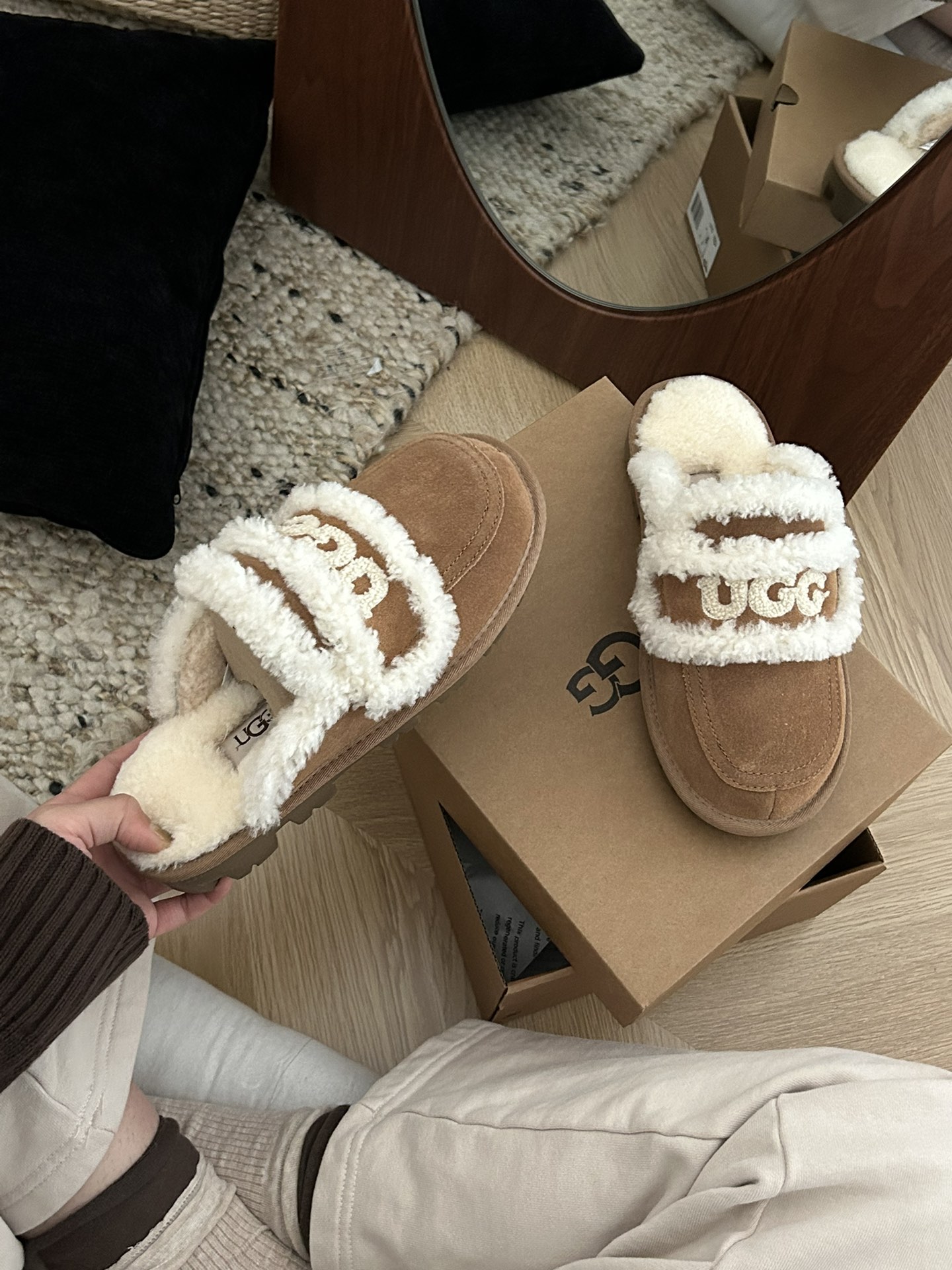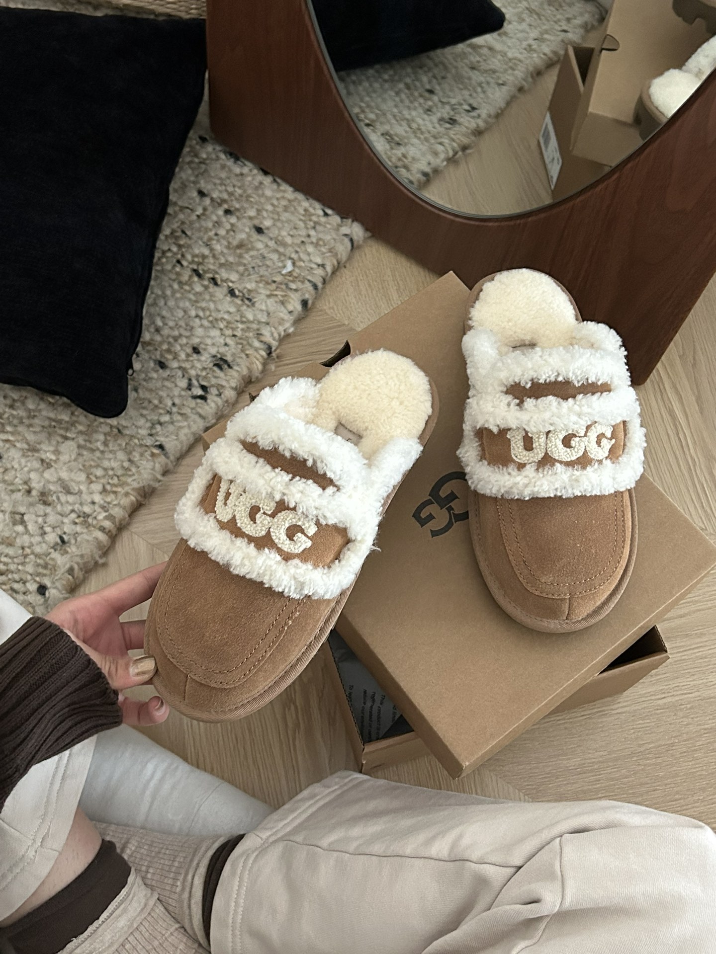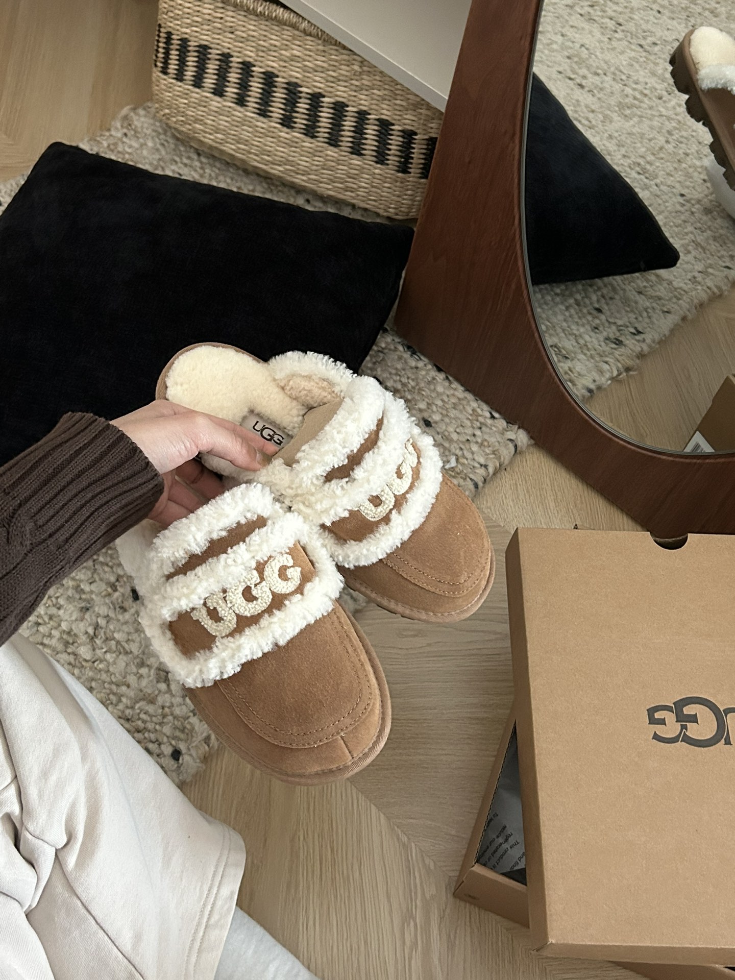 这款鞋子是AAAAA 1:1 质量 (非常棒). 使用了和原版一模一样的材料. 商标部分也保持了和UGG雪地靴一样. 图片拍摄是实物鞋子拍摄, 您所收到的实物保证和我们图片一模一样.