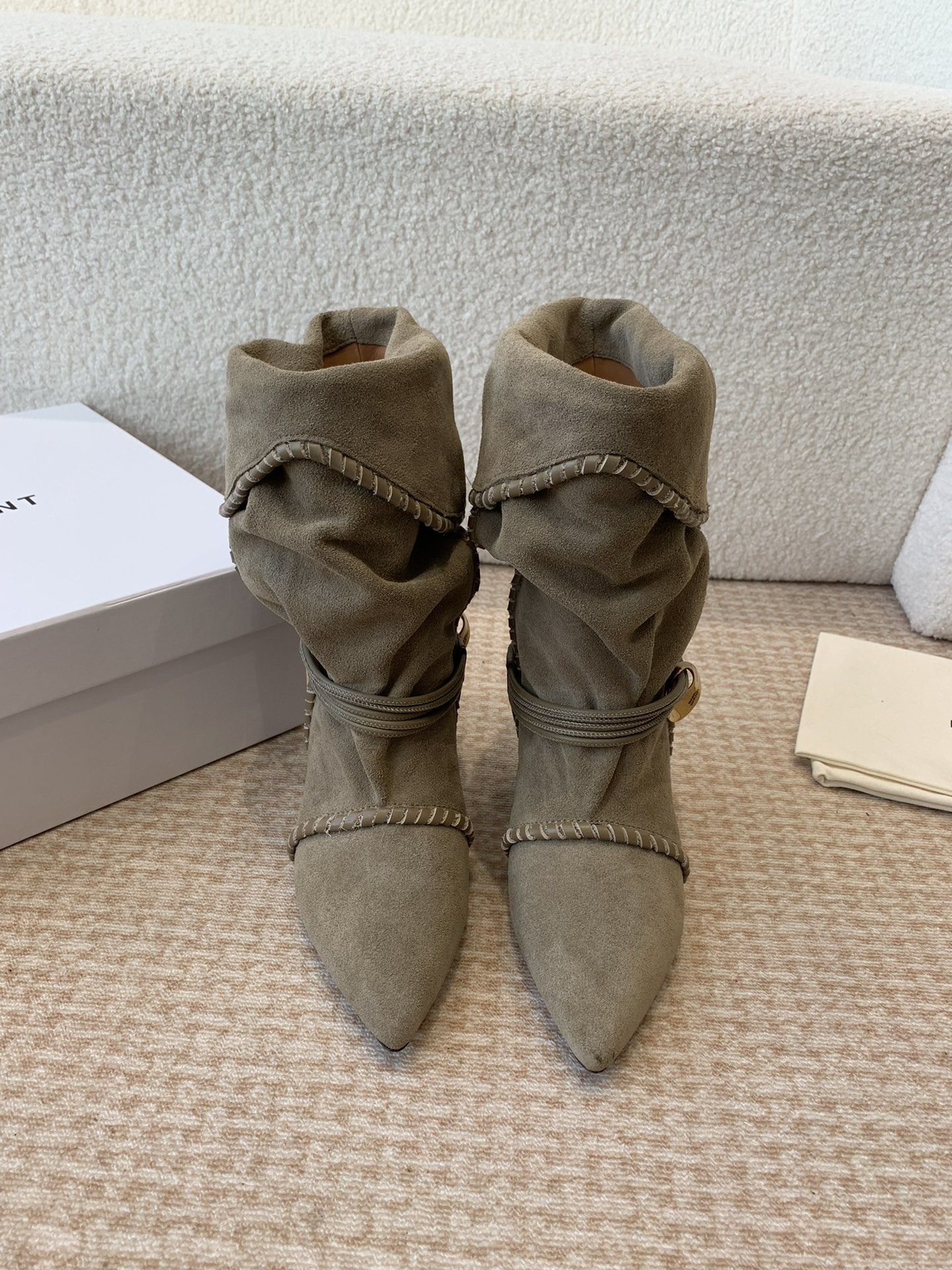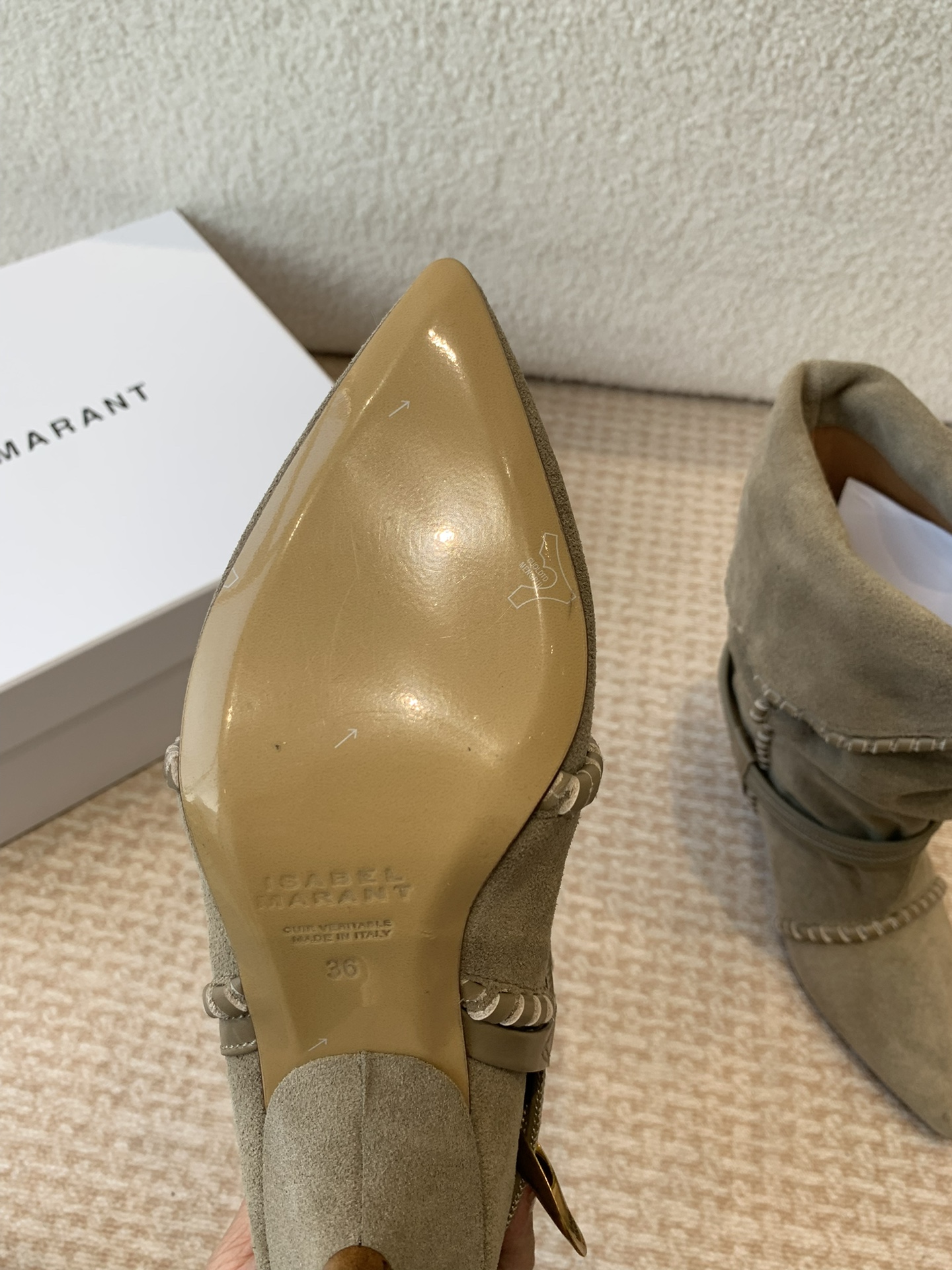 这款鞋子是AAAAA 1:1 质量 (非常棒). 使用了和原版一模一样的材料. 商标部分也保持了和伊莎贝尔·马兰特/Isabel Marant一样. 图片拍摄是实物鞋子拍摄, 您所收到的实物保证和我们图片一模一样.