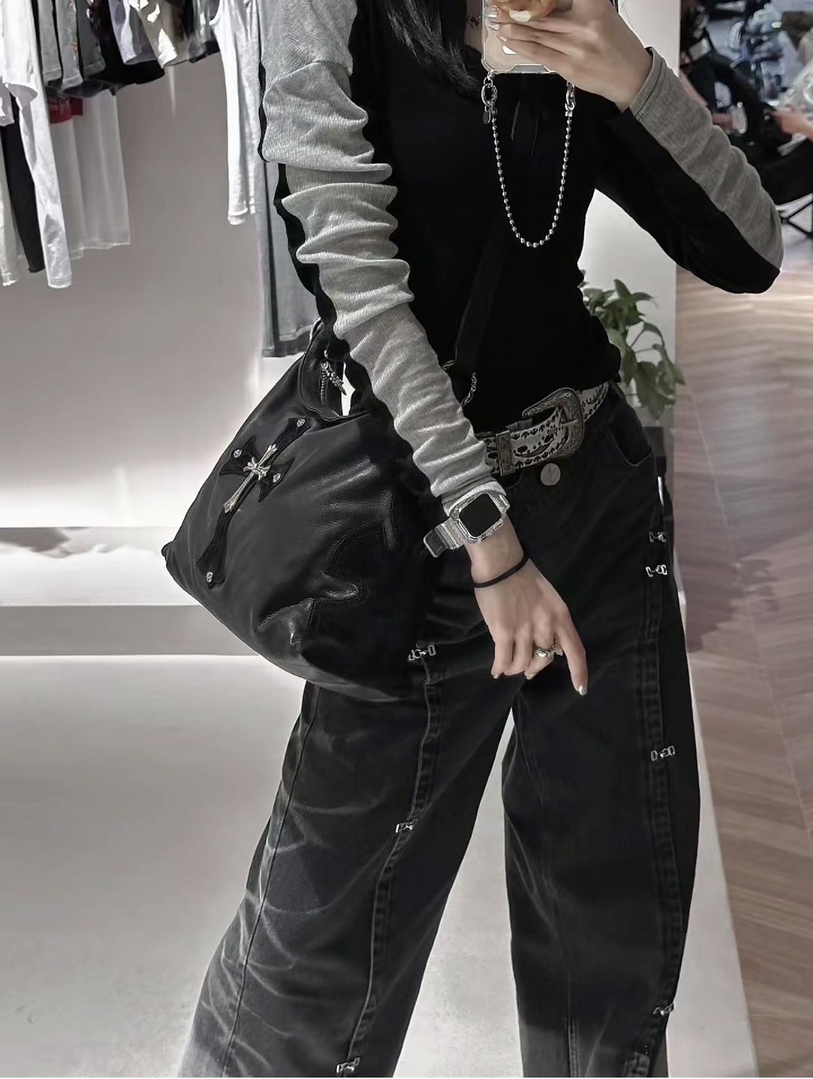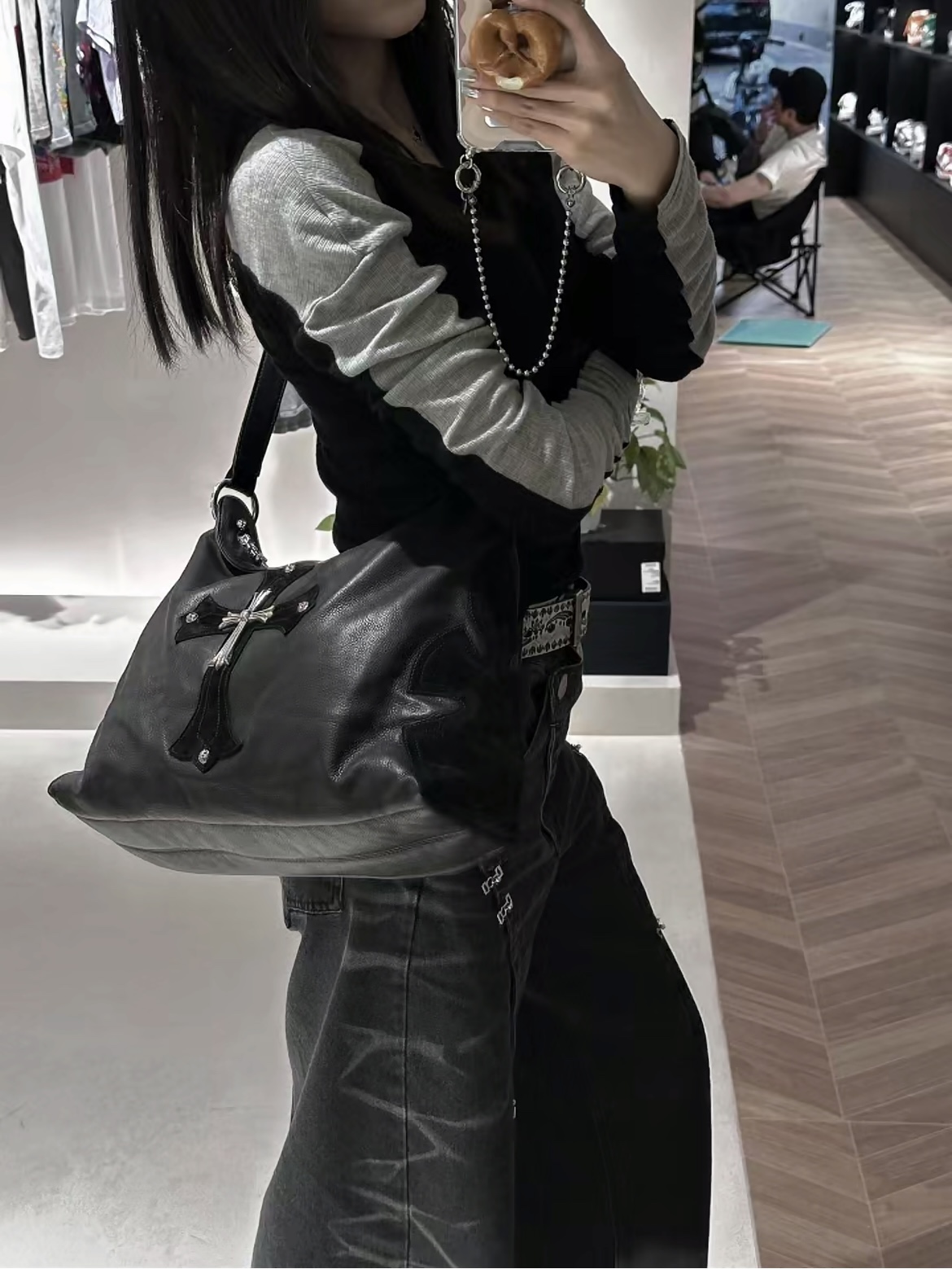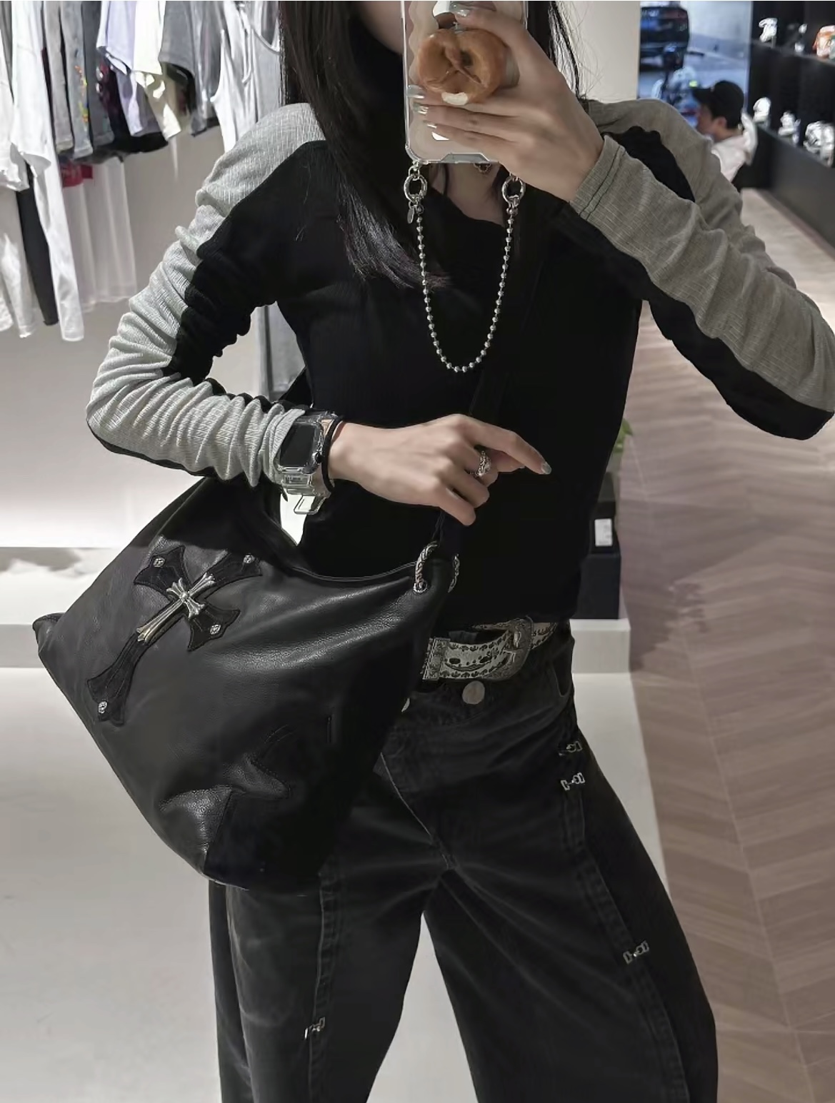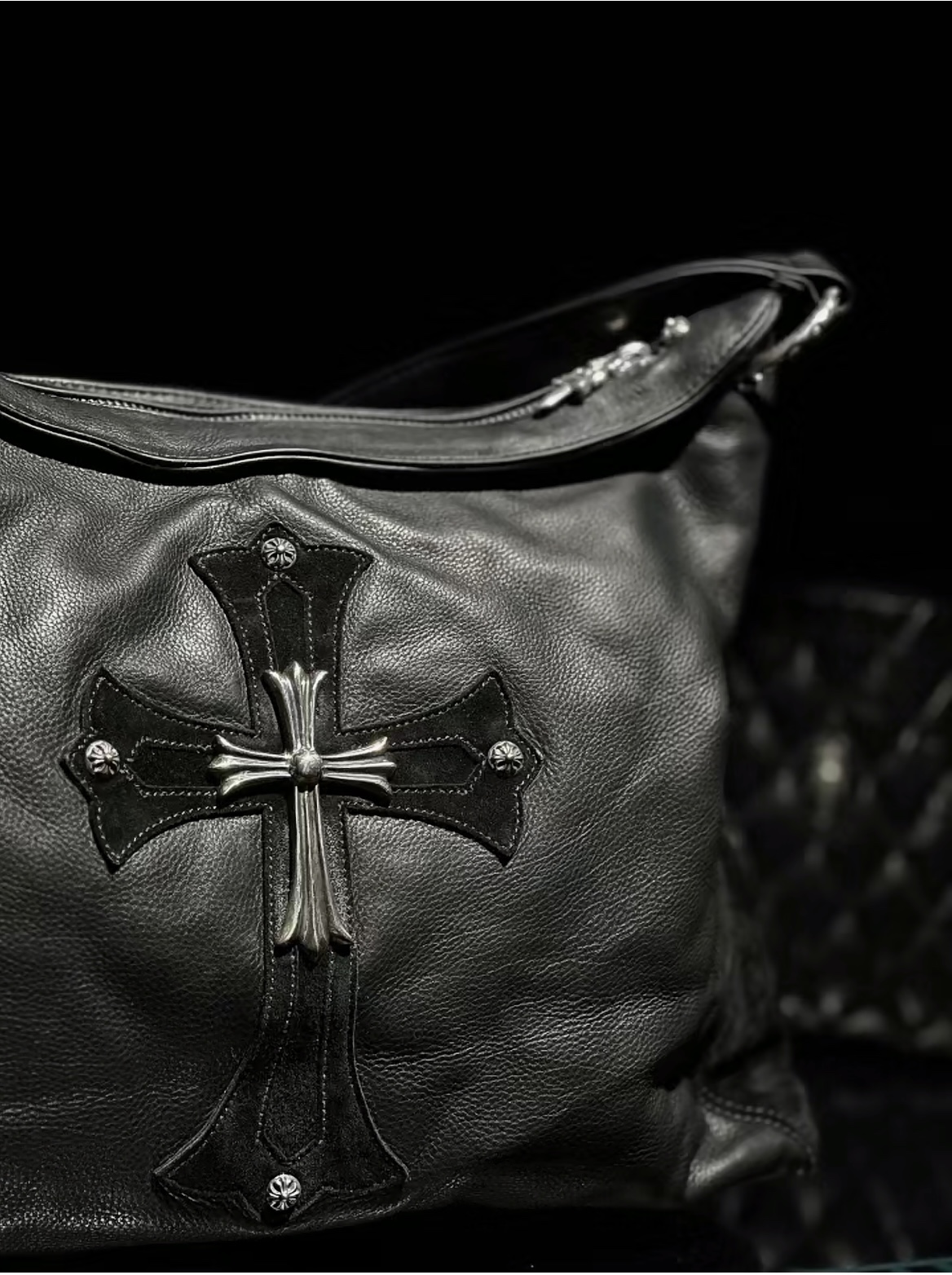 这款包包是AAAAA 1:1 质量 (非常棒). 使用了和原版一模一样的材料. 商标部分也保持了和克罗心/Chrome Hearts一样. 图片拍摄是实物包包拍摄, 您所收到的实物保证和我们图片一模一样.