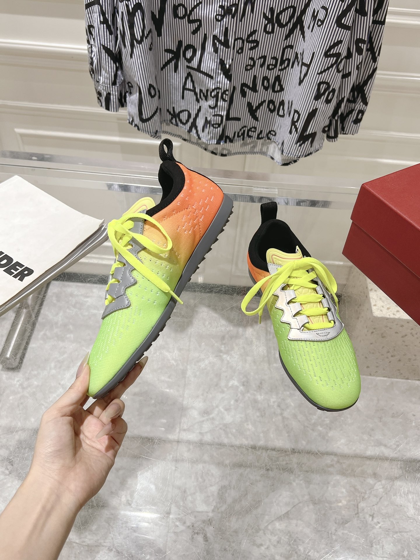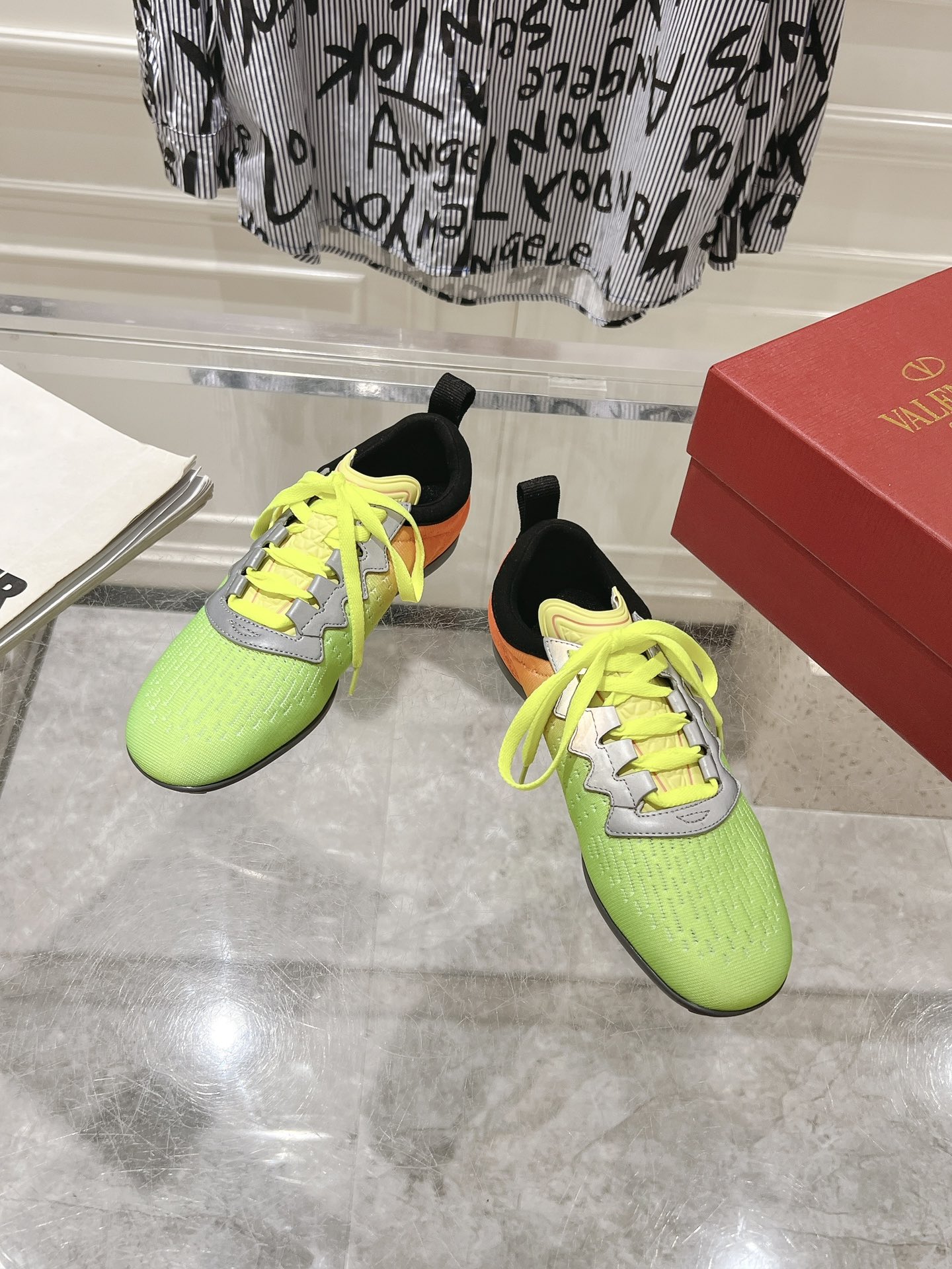 这款鞋子是AAAAA 1:1 质量 (非常棒). 使用了和原版一模一样的材料. 商标部分也保持了和华伦天奴/Valentino一样. 图片拍摄是实物鞋子拍摄, 您所收到的实物保证和我们图片一模一样.