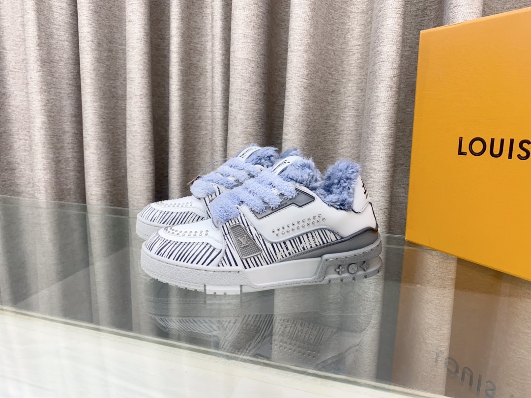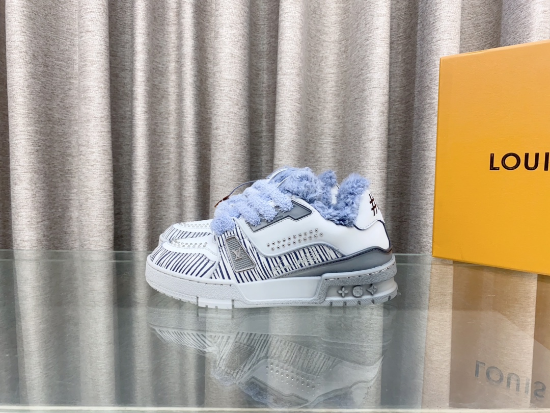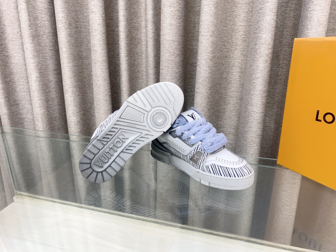 这款鞋子是AAAAA 1:1 质量 (非常棒). 使用了和原版一模一样的材料. 商标部分也保持了和路易威登/Louis Vuitton一样. 图片拍摄是实物鞋子拍摄, 您所收到的实物保证和我们图片一模一样.