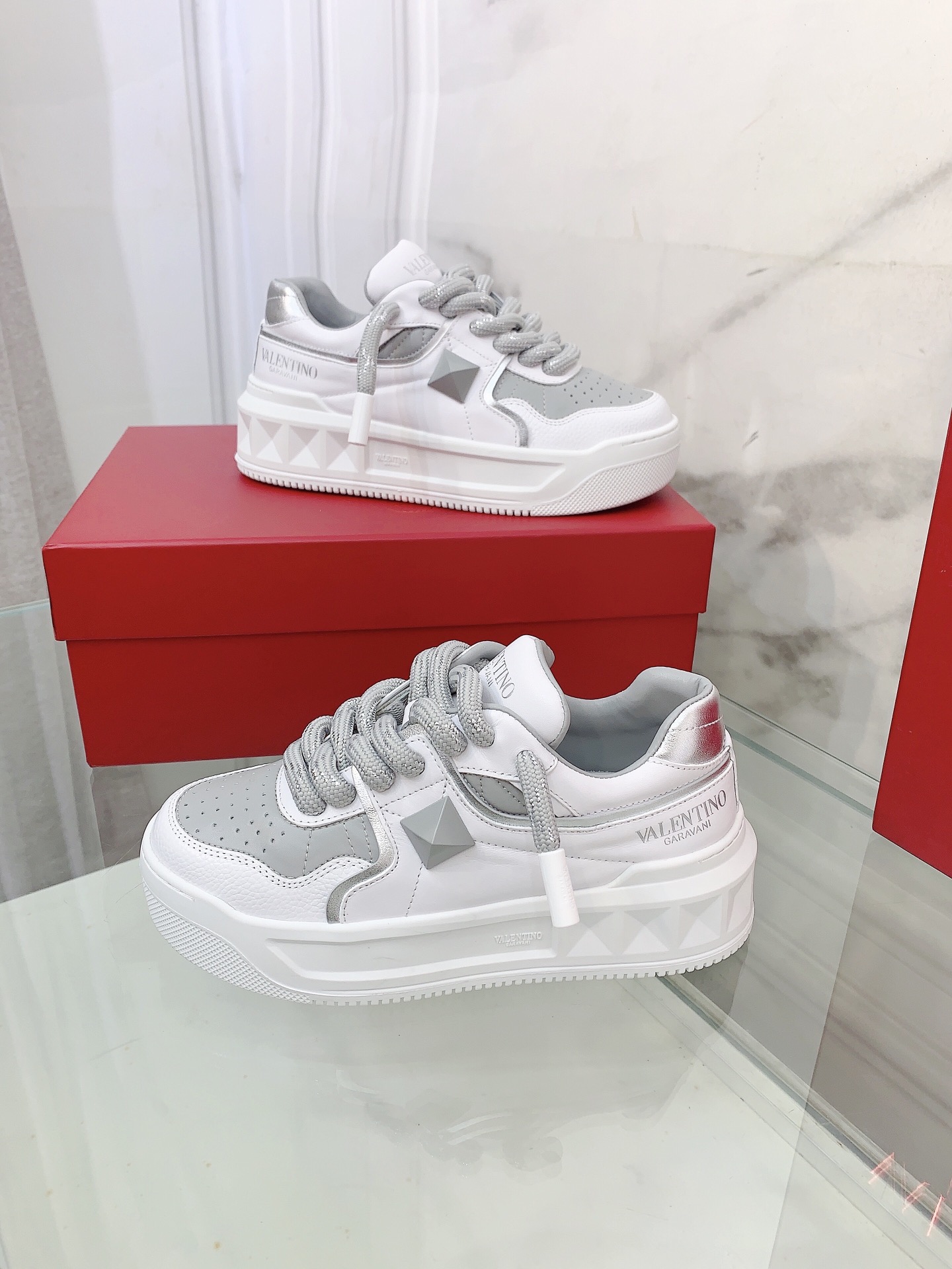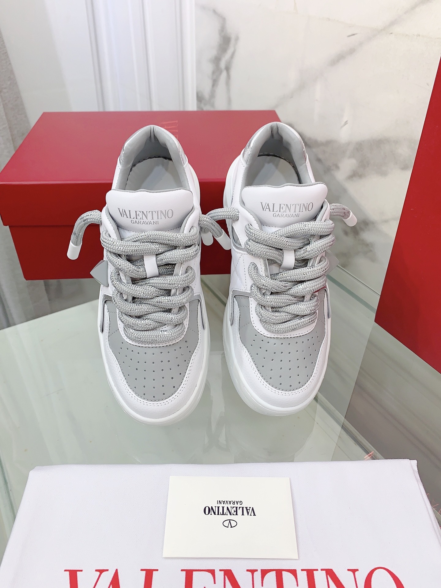 这款鞋子是AAAAA 1:1 质量 (非常棒). 使用了和原版一模一样的材料. 商标部分也保持了和华伦天奴/Valentino一样. 图片拍摄是实物鞋子拍摄, 您所收到的实物保证和我们图片一模一样.
