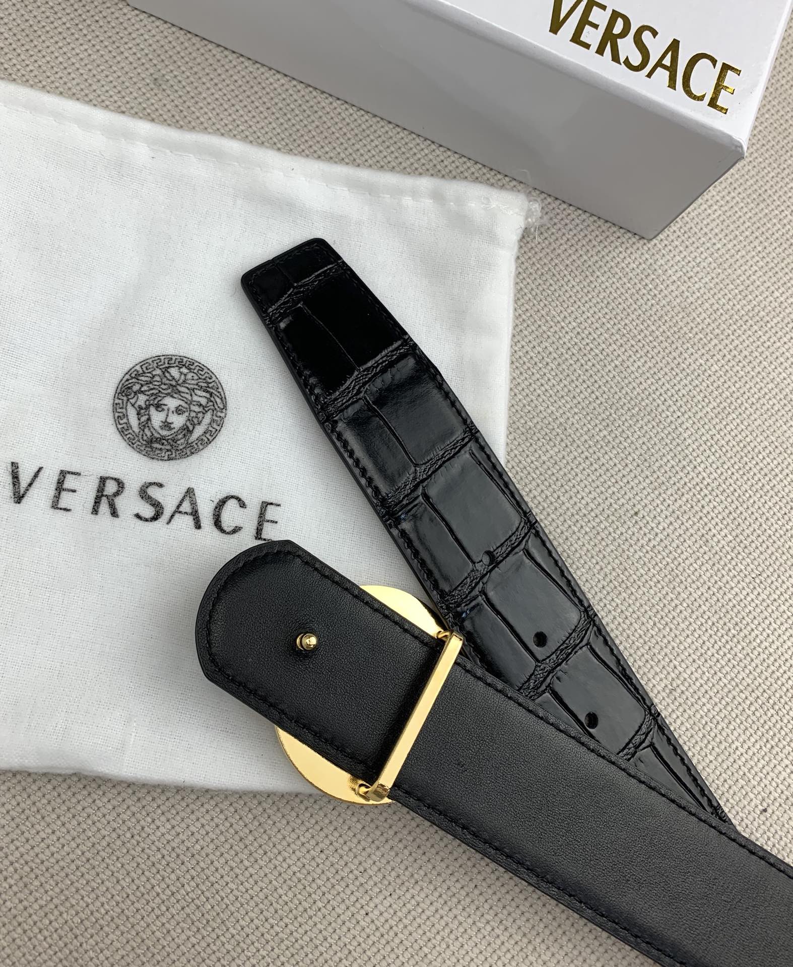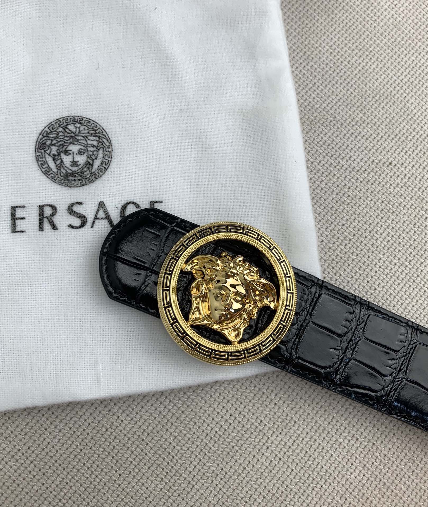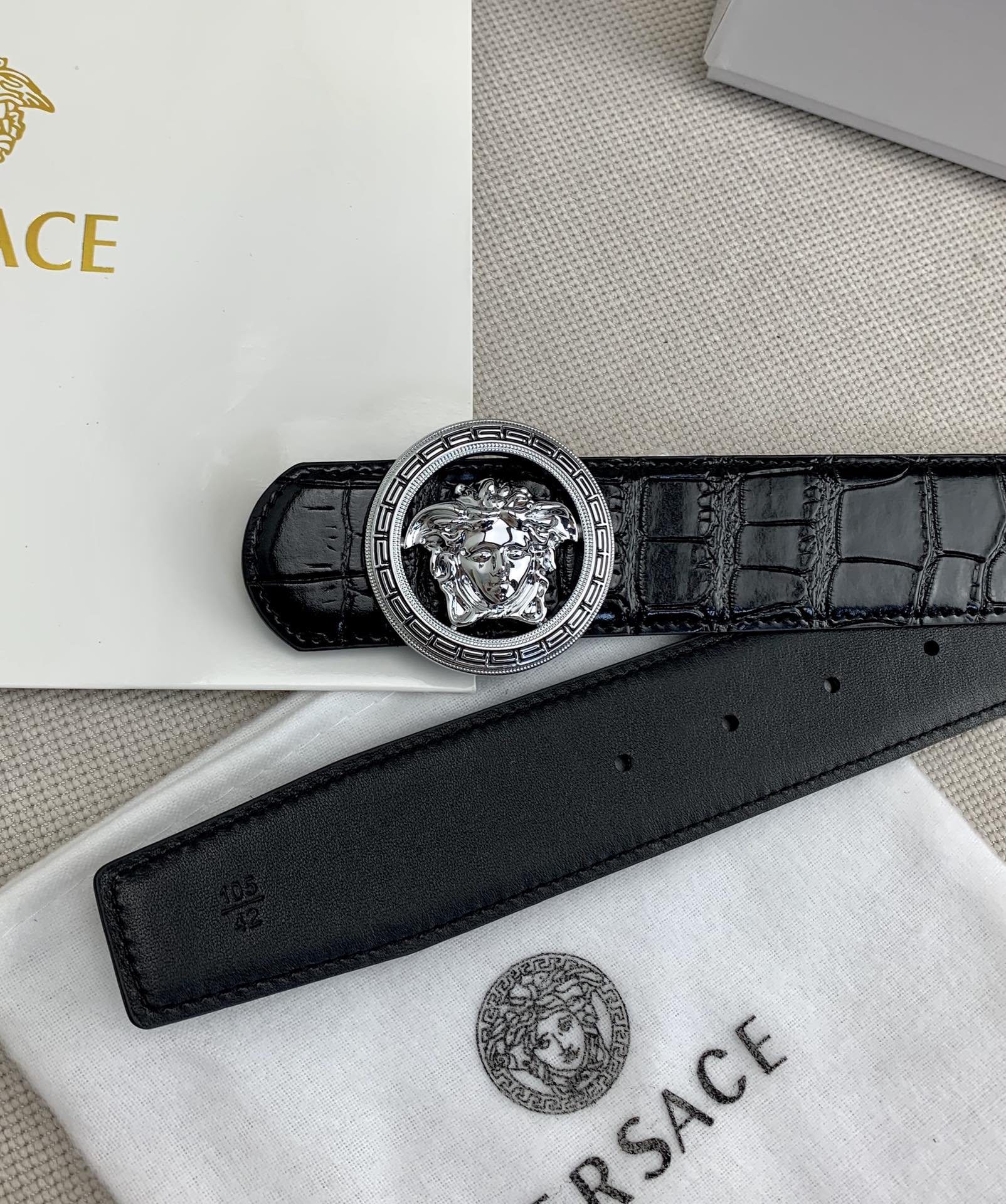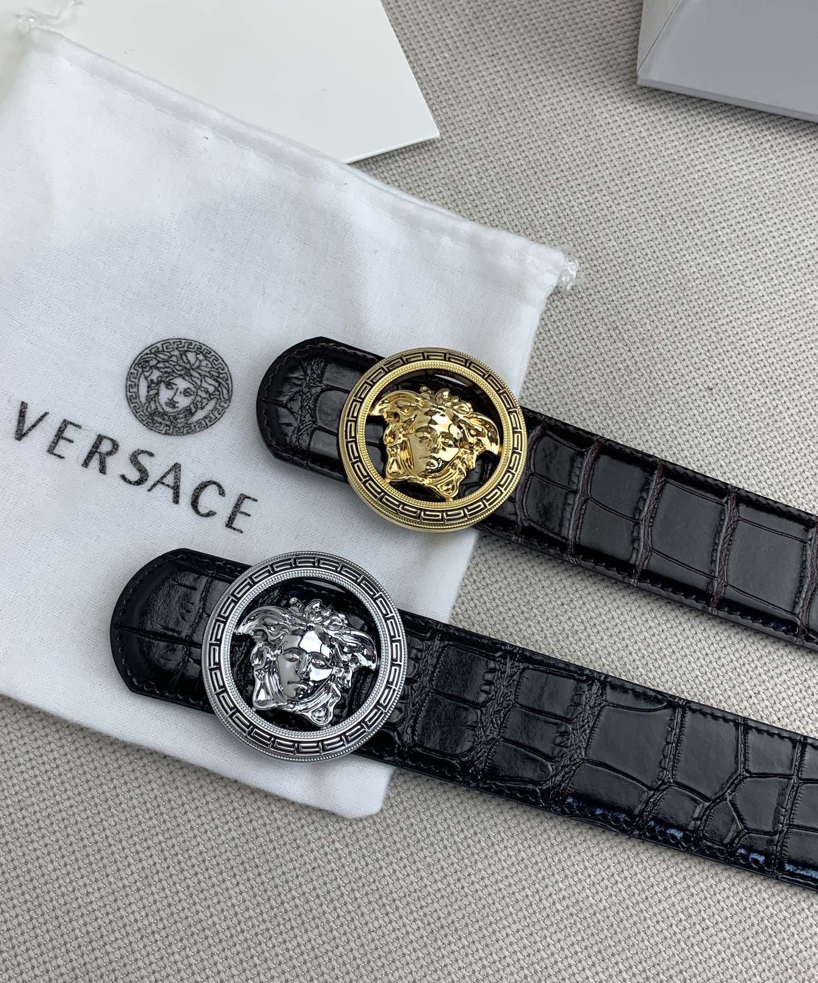 这款皮带是AAAAA 1:1 质量 (非常棒). 使用了和原版一模一样的材料. 商标部分也保持了和范思哲/Versace一样. 图片拍摄是实物皮带拍摄, 您所收到的实物保证和我们图片一模一样.