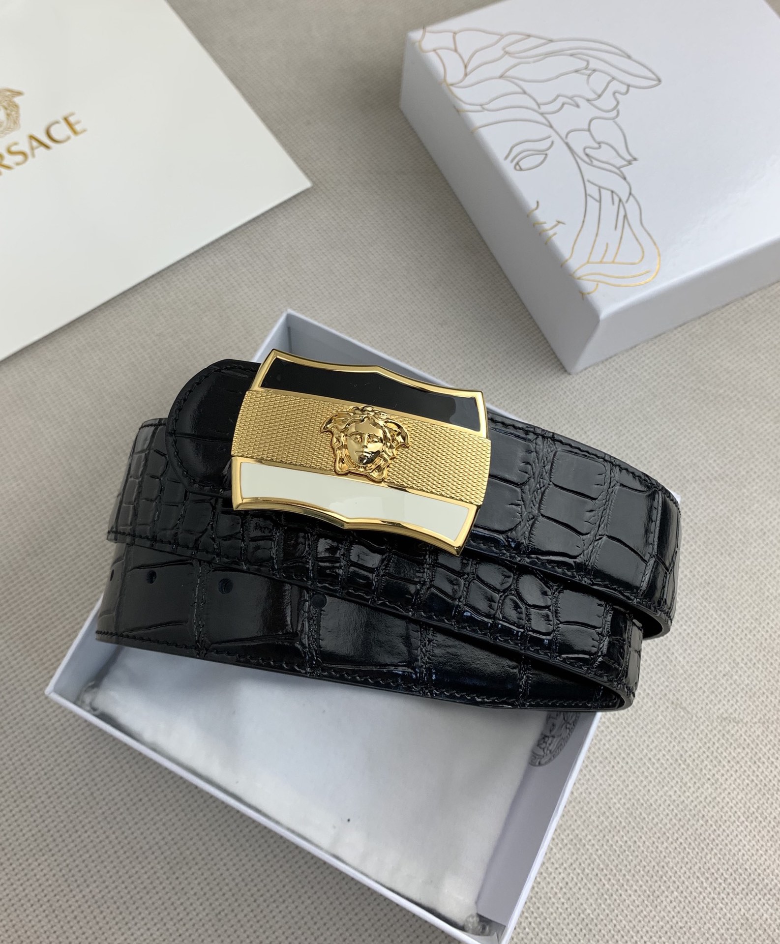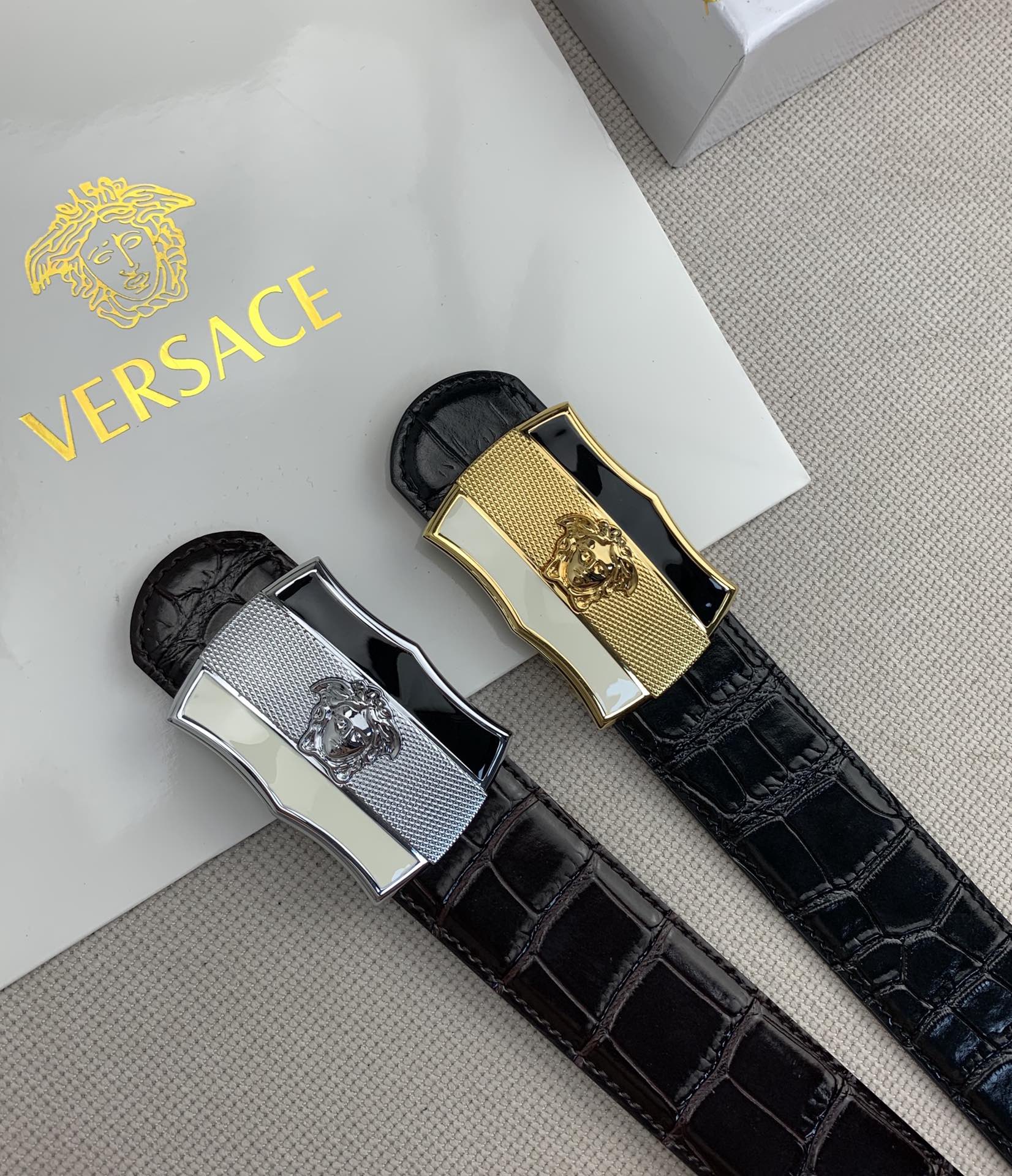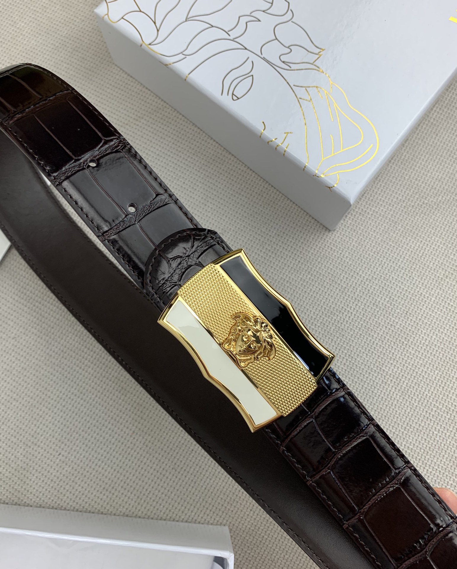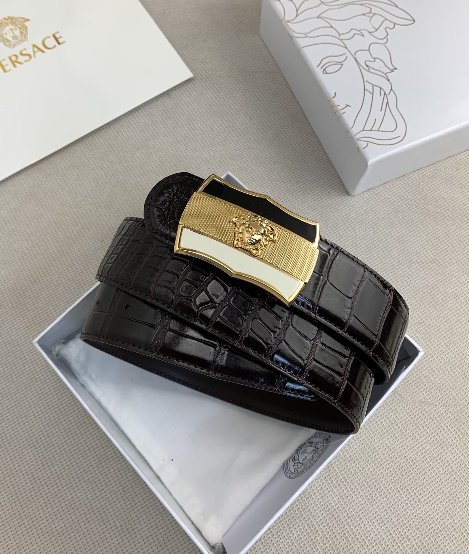 这款皮带是AAAAA 1:1 质量 (非常棒). 使用了和原版一模一样的材料. 商标部分也保持了和范思哲/Versace一样. 图片拍摄是实物皮带拍摄, 您所收到的实物保证和我们图片一模一样.