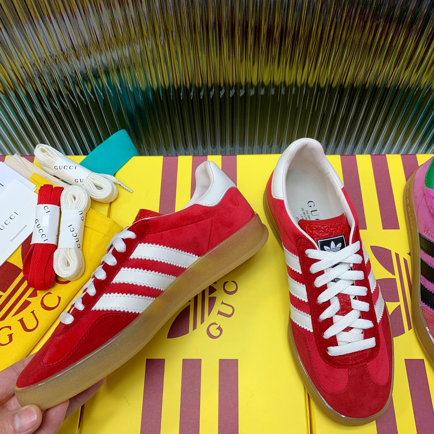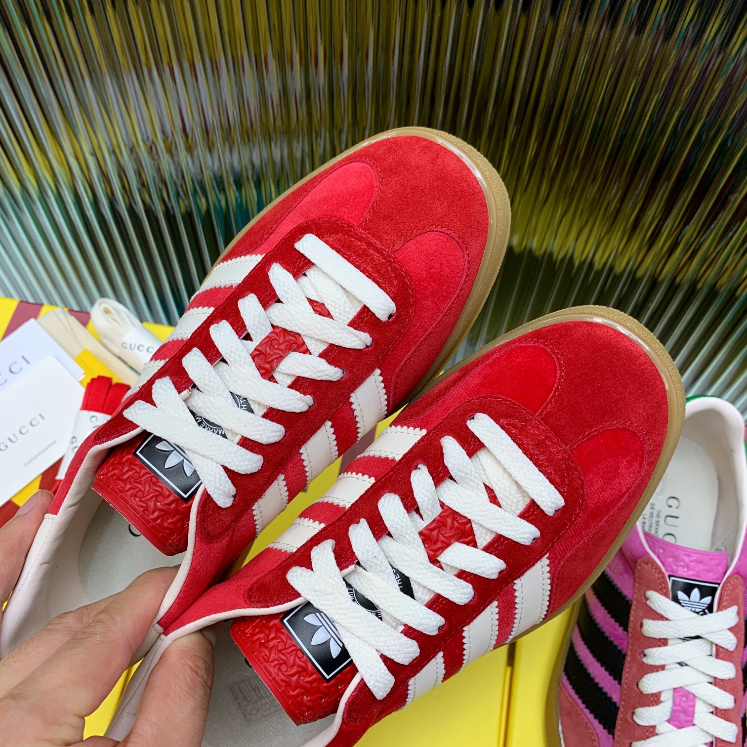 这款鞋子是AAAAA 1:1 质量 (非常棒). 使用了和原版一模一样的材料. 商标部分也保持了和阿迪达斯/Adidas一样. 图片拍摄是实物鞋子拍摄, 您所收到的实物保证和我们图片一模一样.