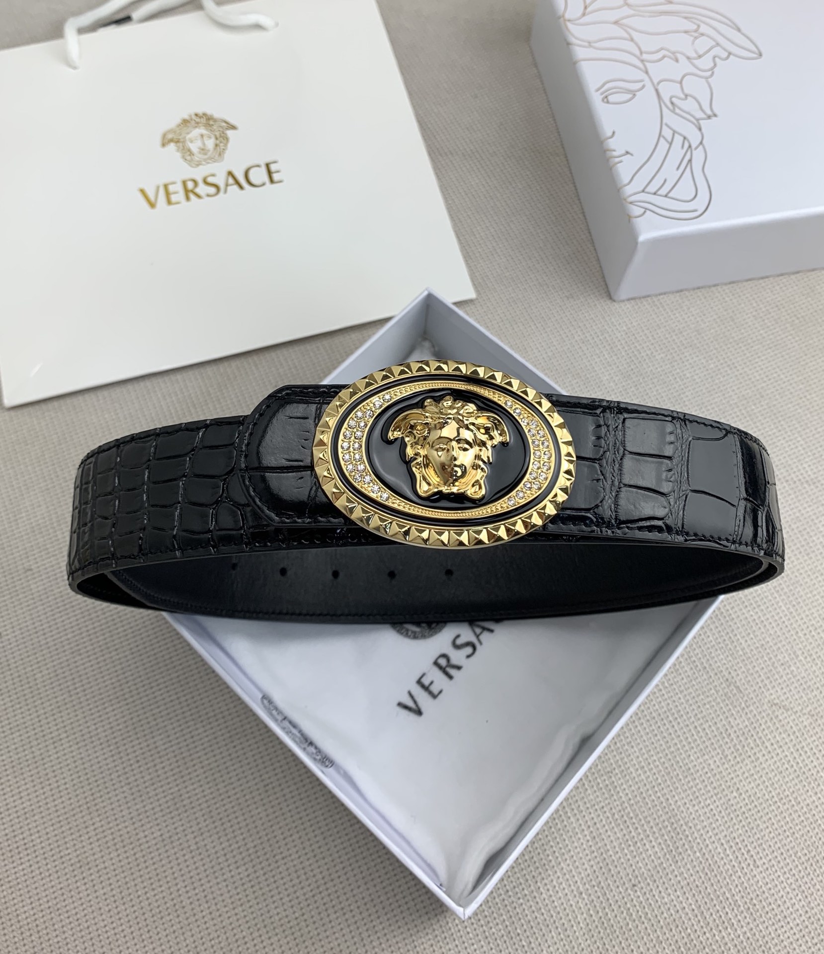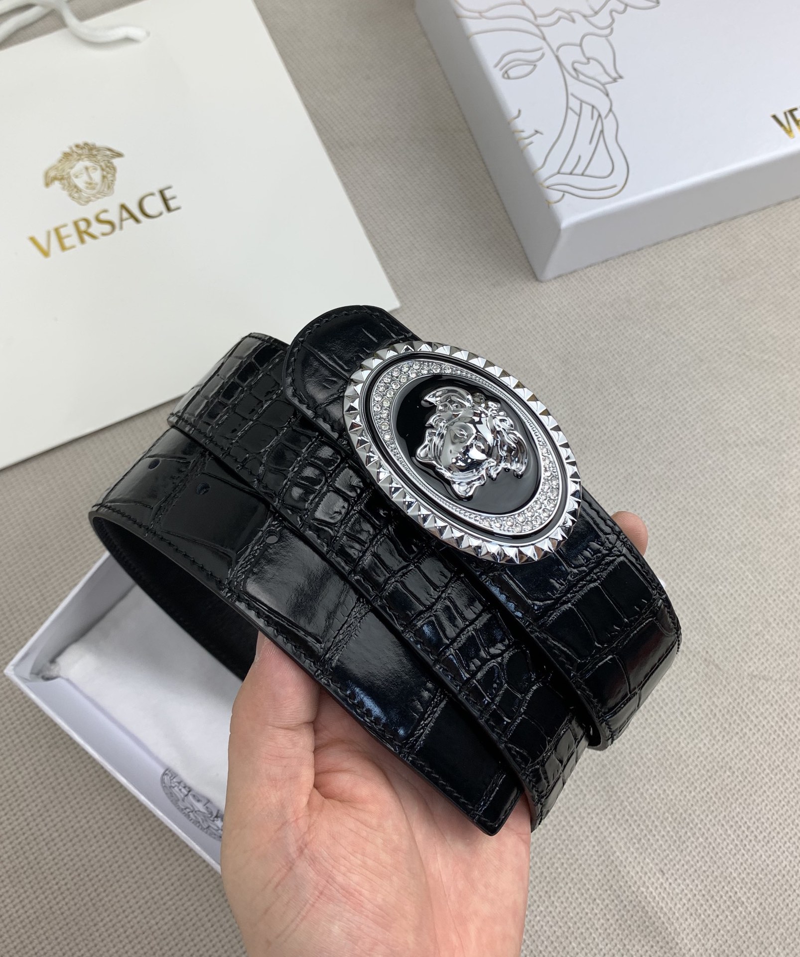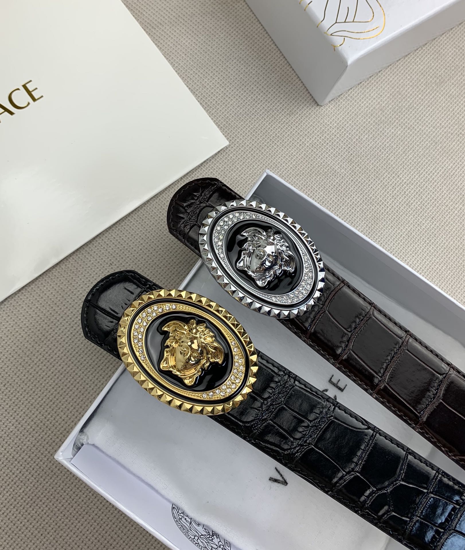 这款皮带是AAAAA 1:1 质量 (非常棒). 使用了和原版一模一样的材料. 商标部分也保持了和范思哲/Versace一样. 图片拍摄是实物皮带拍摄, 您所收到的实物保证和我们图片一模一样.