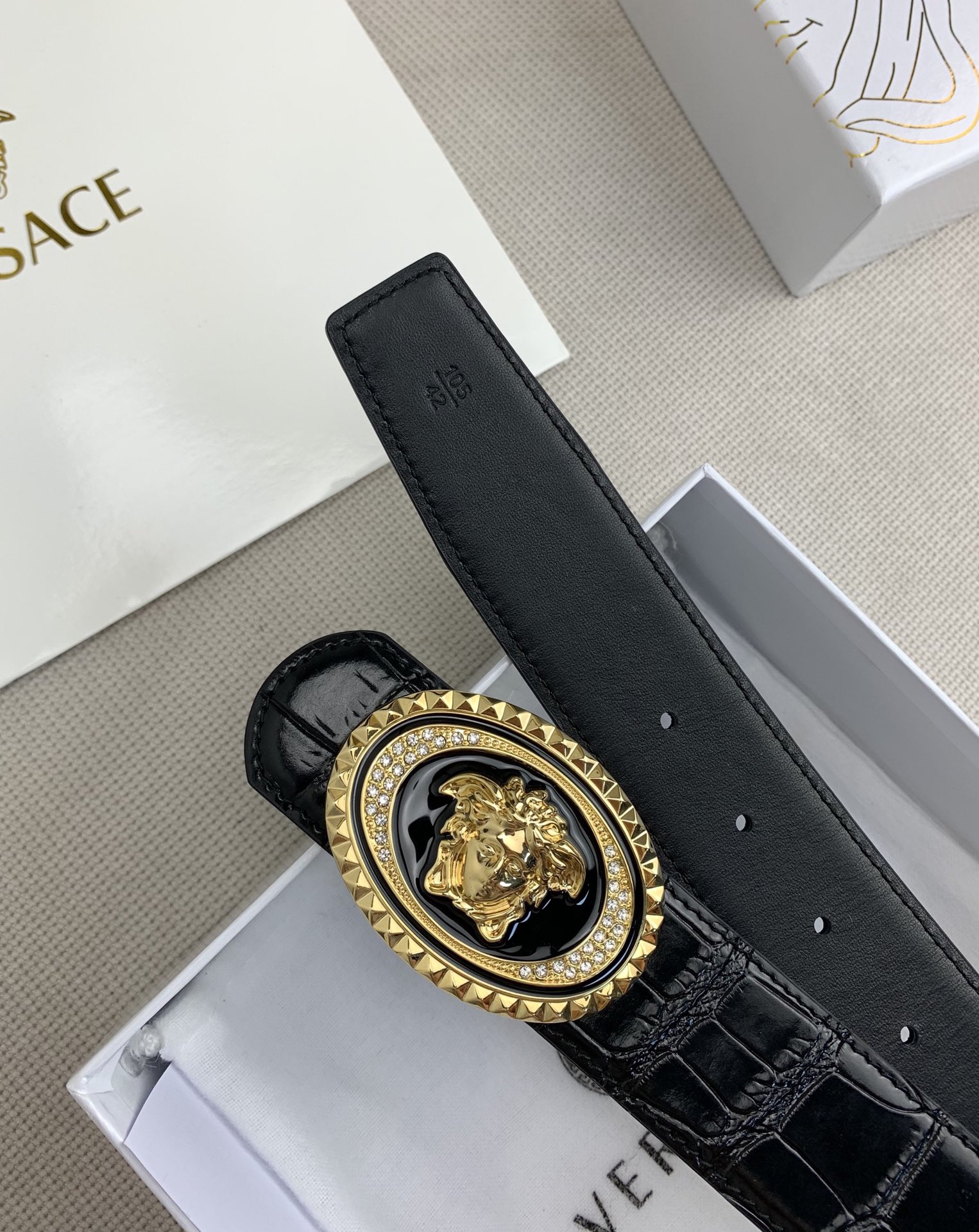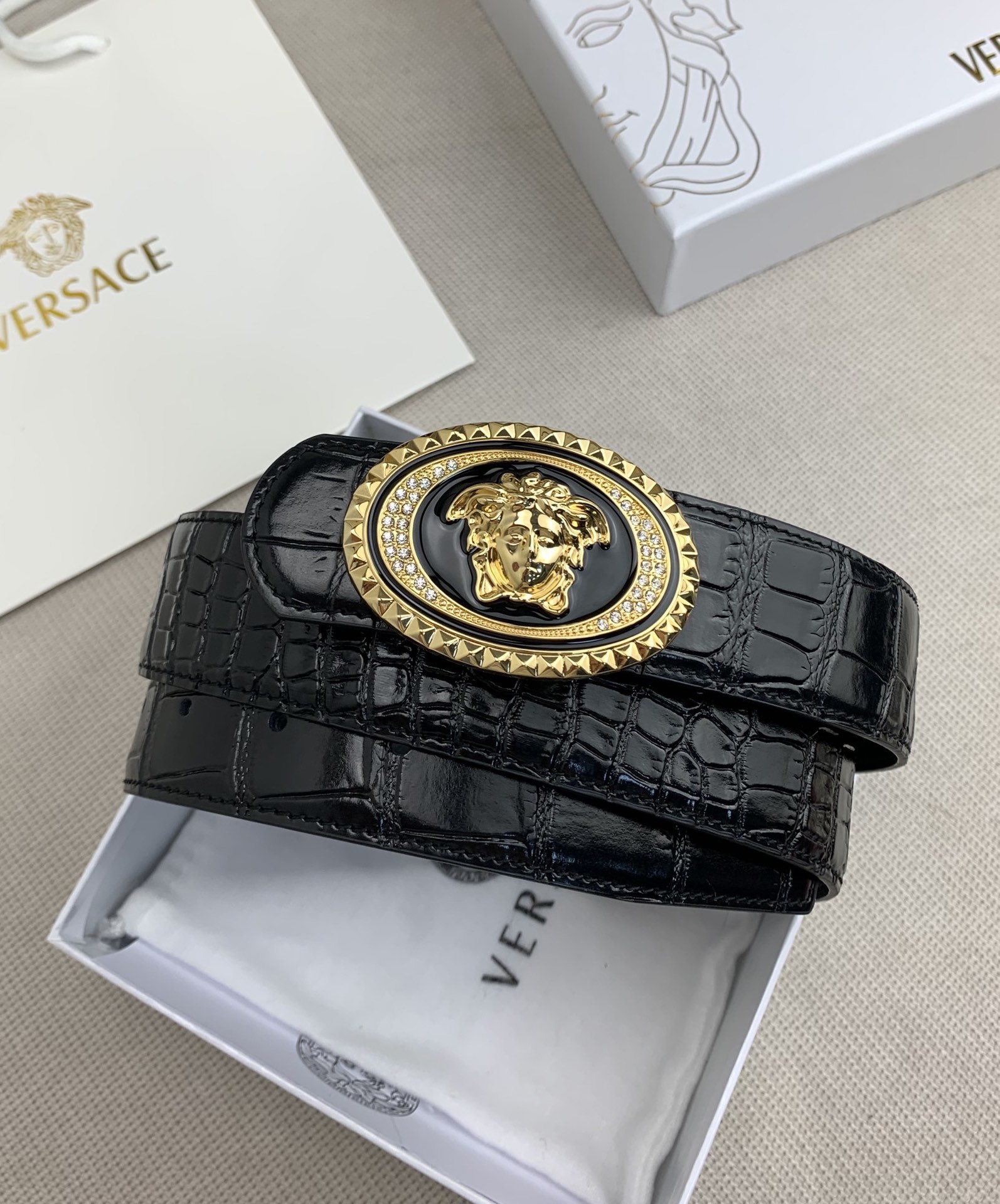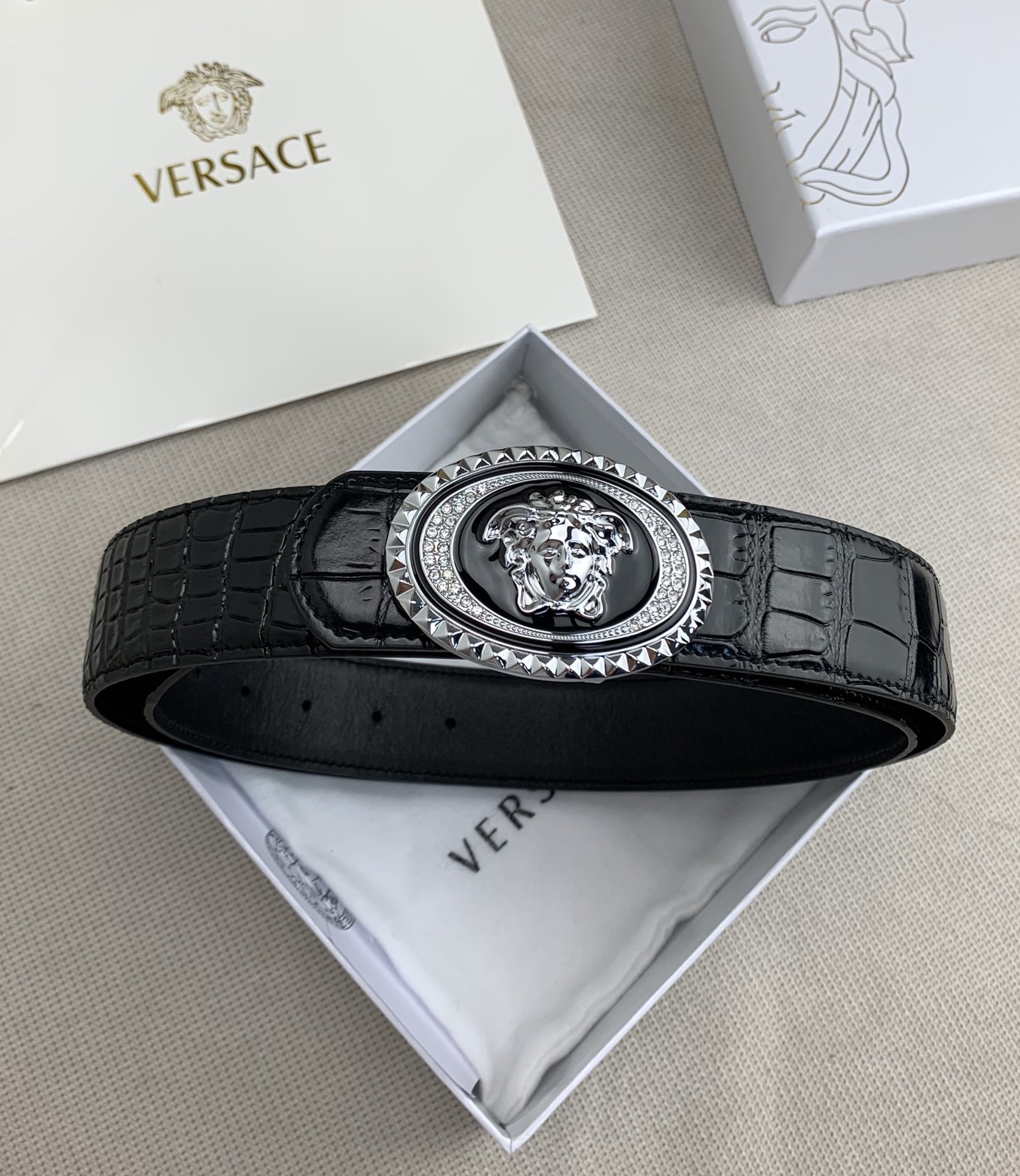 这款皮带是AAAAA 1:1 质量 (非常棒). 使用了和原版一模一样的材料. 商标部分也保持了和范思哲/Versace一样. 图片拍摄是实物皮带拍摄, 您所收到的实物保证和我们图片一模一样.
