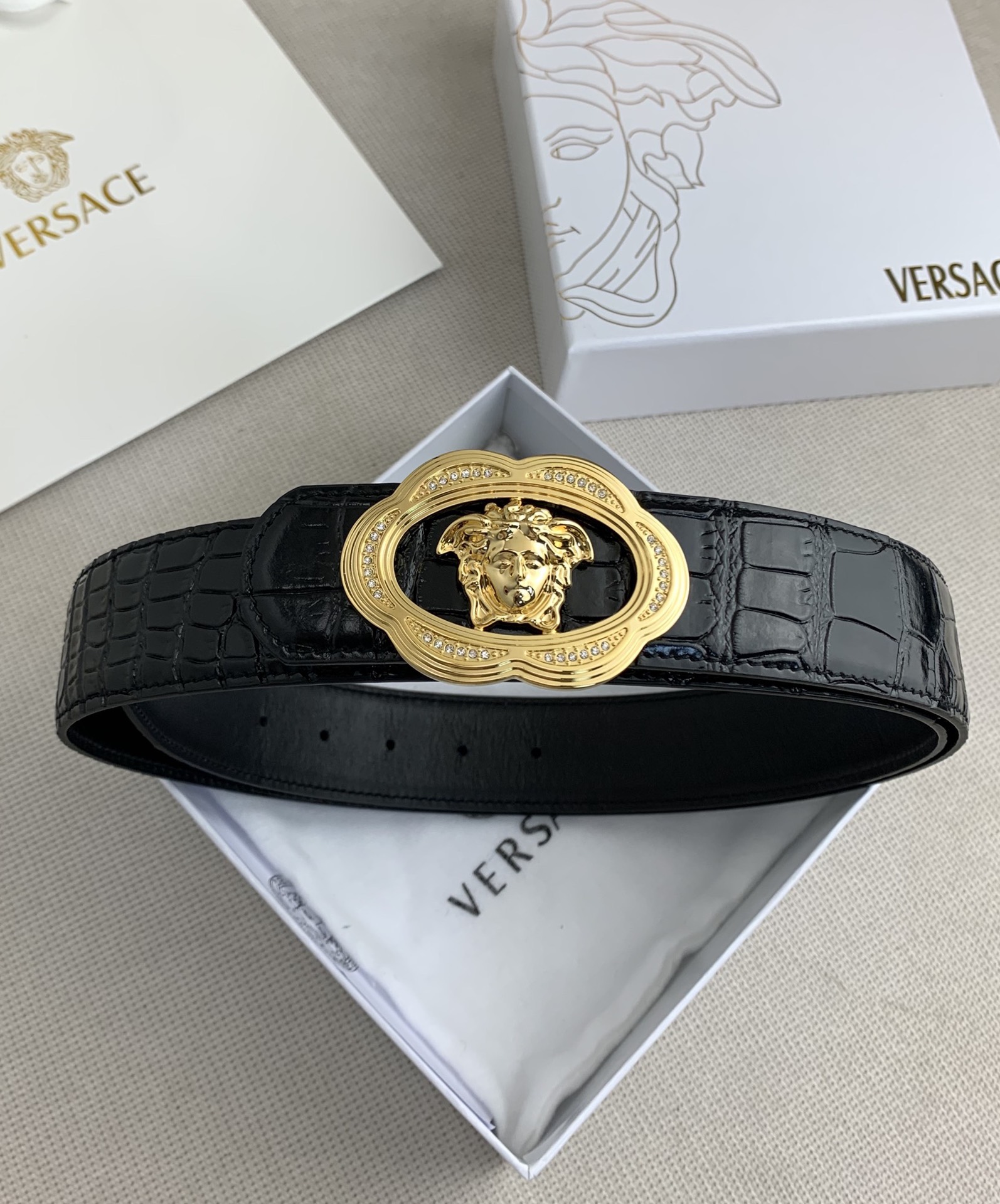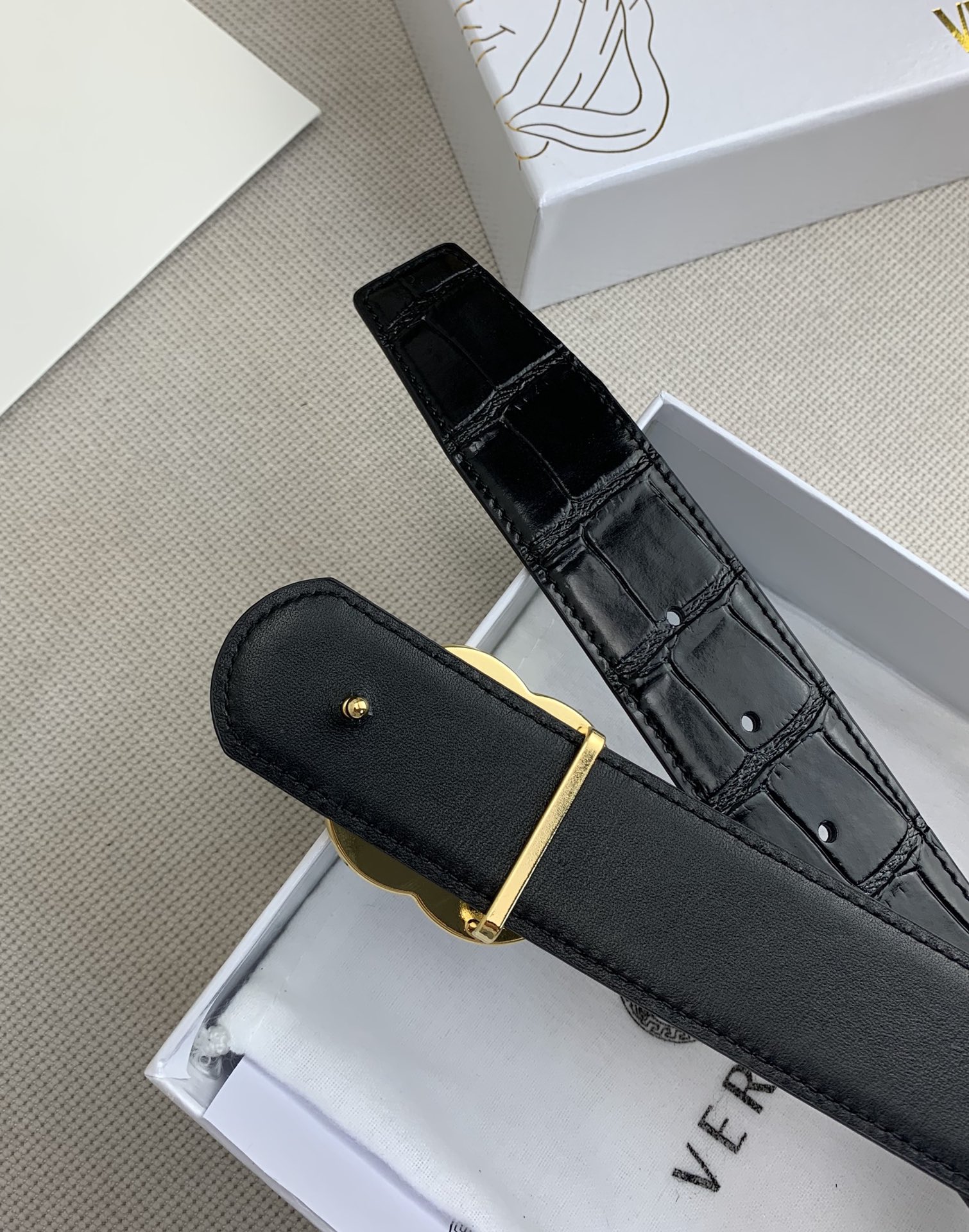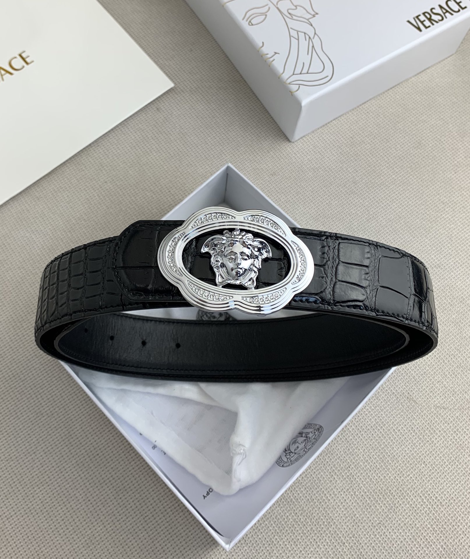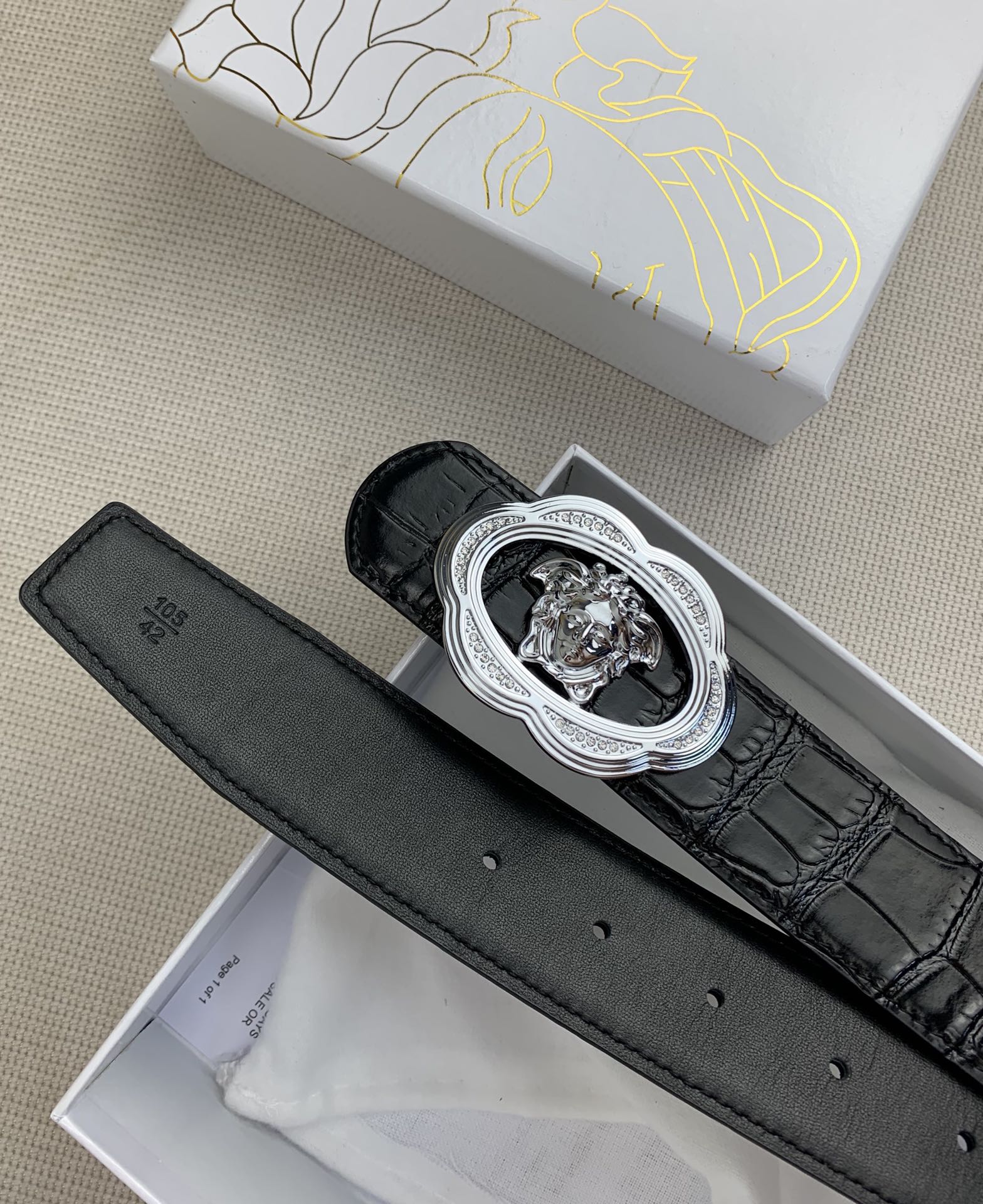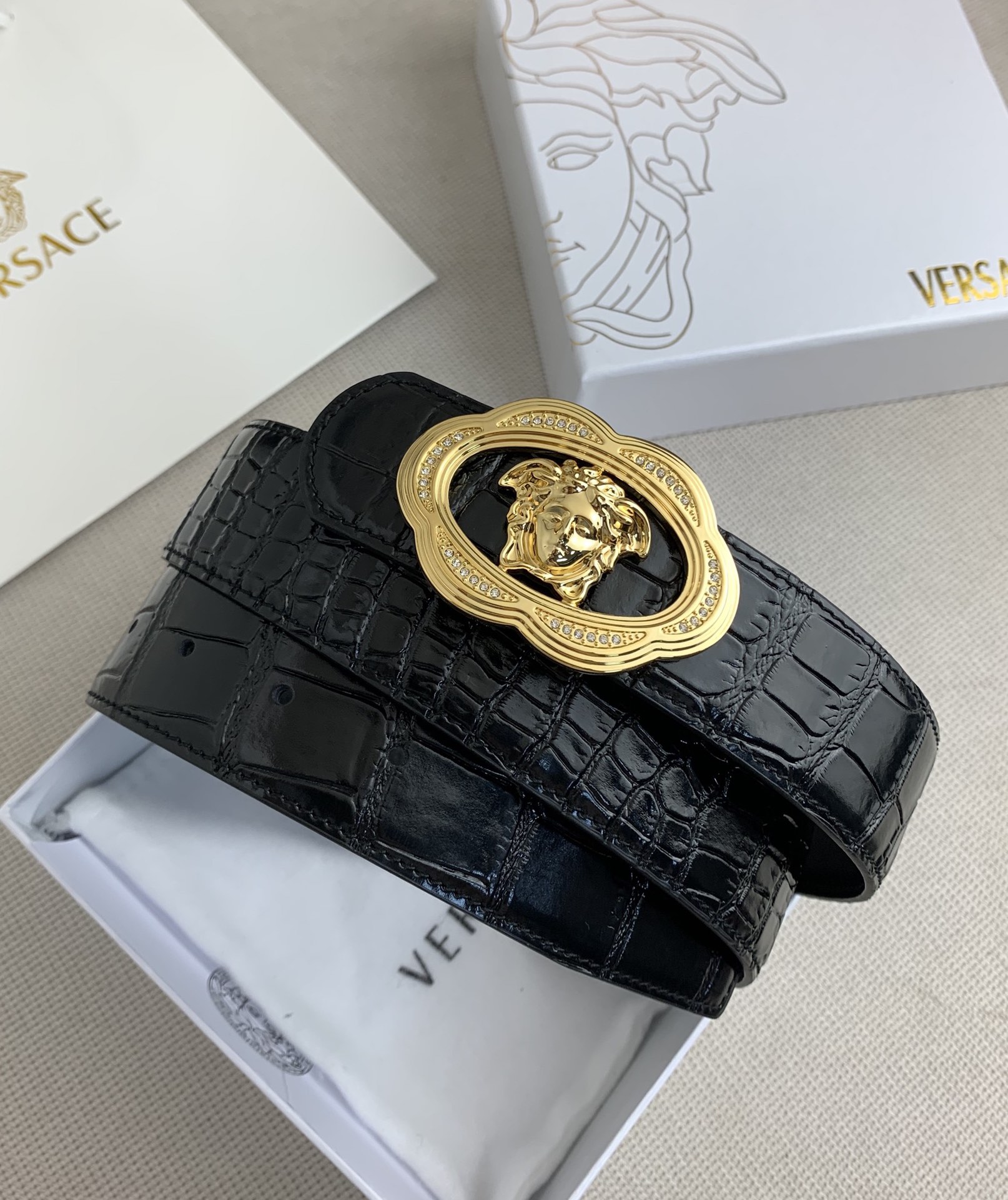 这款皮带是AAAAA 1:1 质量 (非常棒). 使用了和原版一模一样的材料. 商标部分也保持了和范思哲/Versace一样. 图片拍摄是实物皮带拍摄, 您所收到的实物保证和我们图片一模一样.