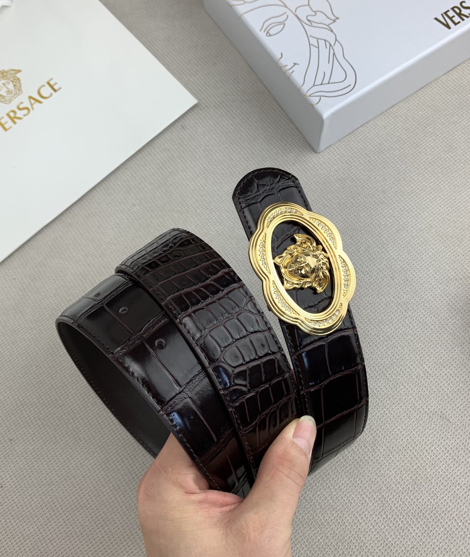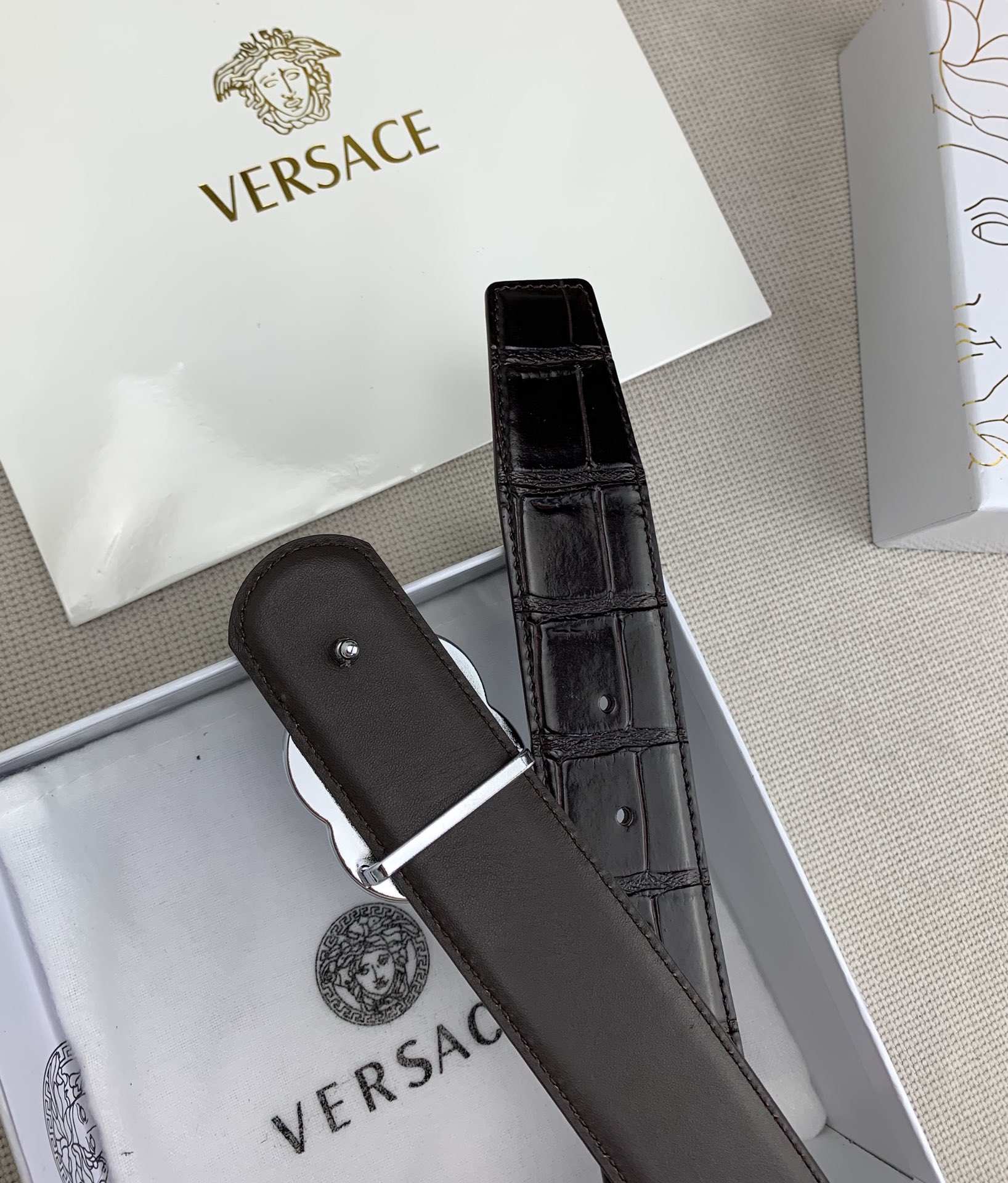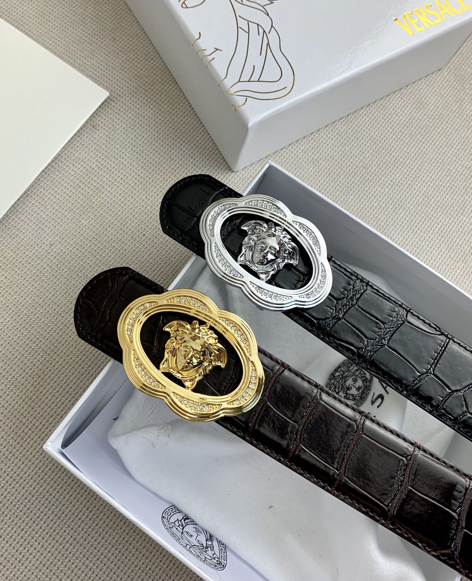 这款皮带是AAAAA 1:1 质量 (非常棒). 使用了和原版一模一样的材料. 商标部分也保持了和范思哲/Versace一样. 图片拍摄是实物皮带拍摄, 您所收到的实物保证和我们图片一模一样.