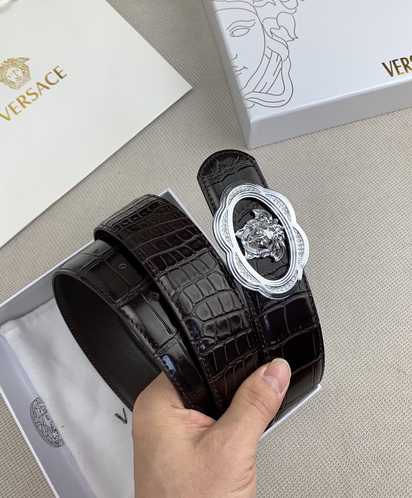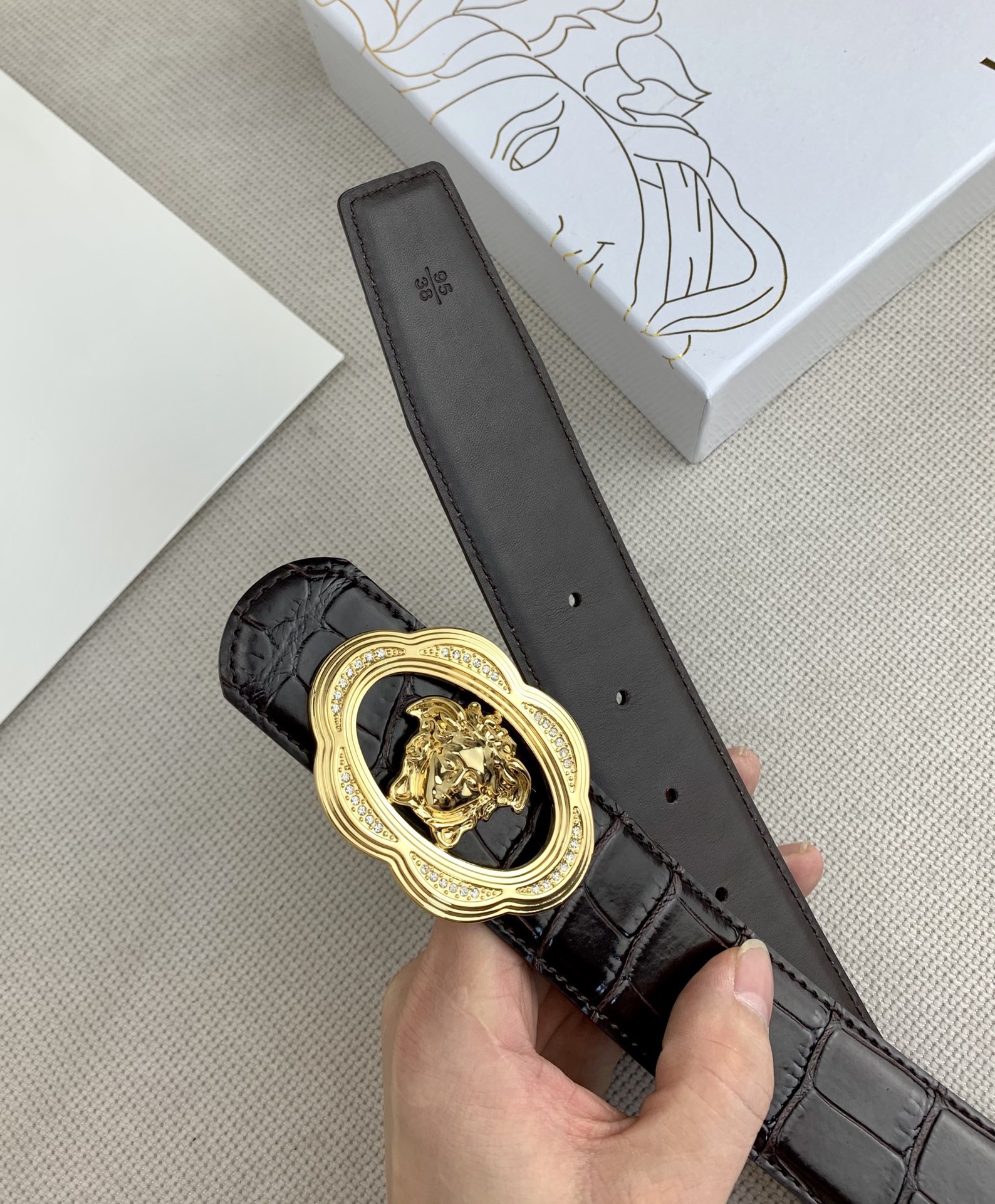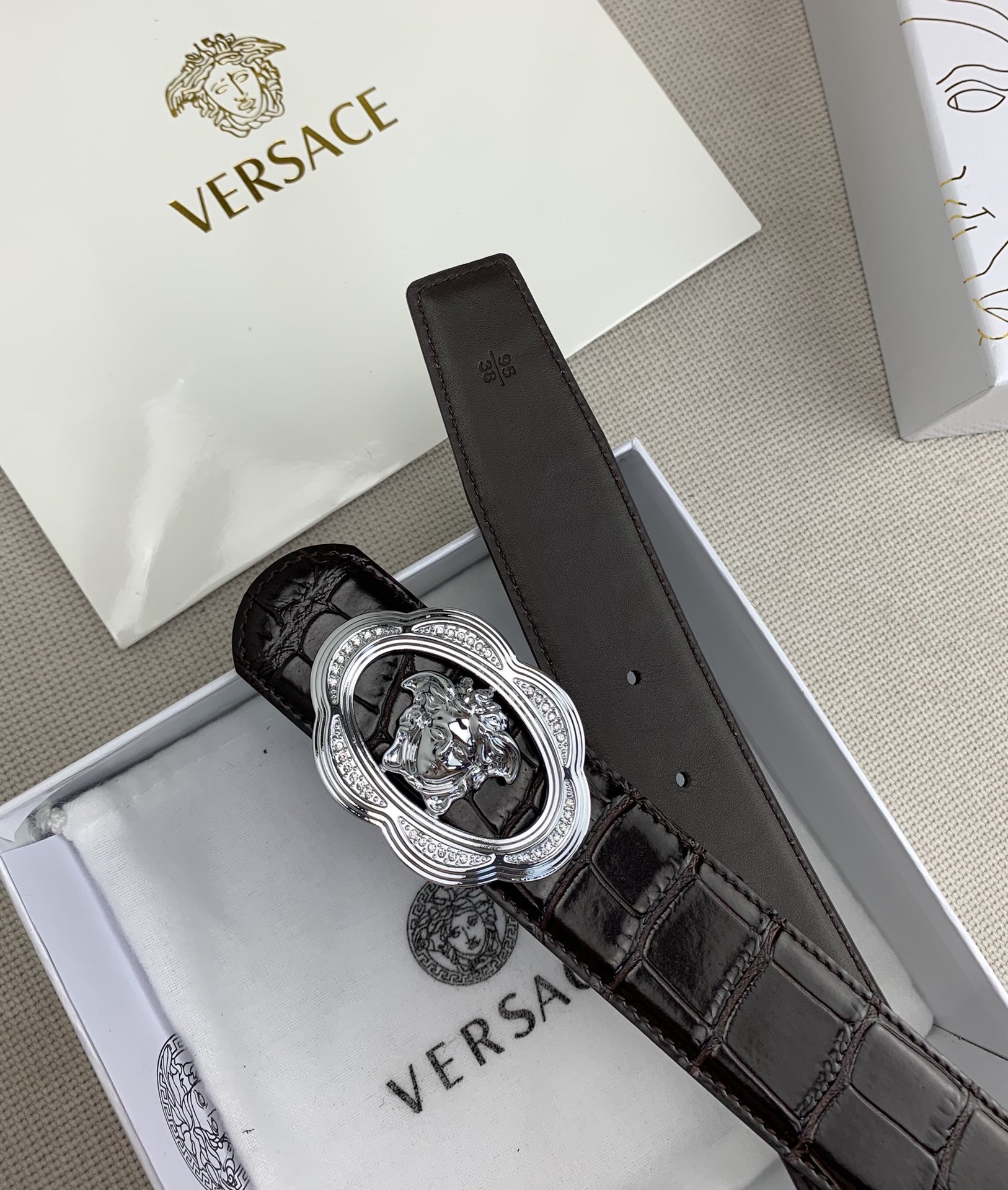 这款皮带是AAAAA 1:1 质量 (非常棒). 使用了和原版一模一样的材料. 商标部分也保持了和范思哲/Versace一样. 图片拍摄是实物皮带拍摄, 您所收到的实物保证和我们图片一模一样.