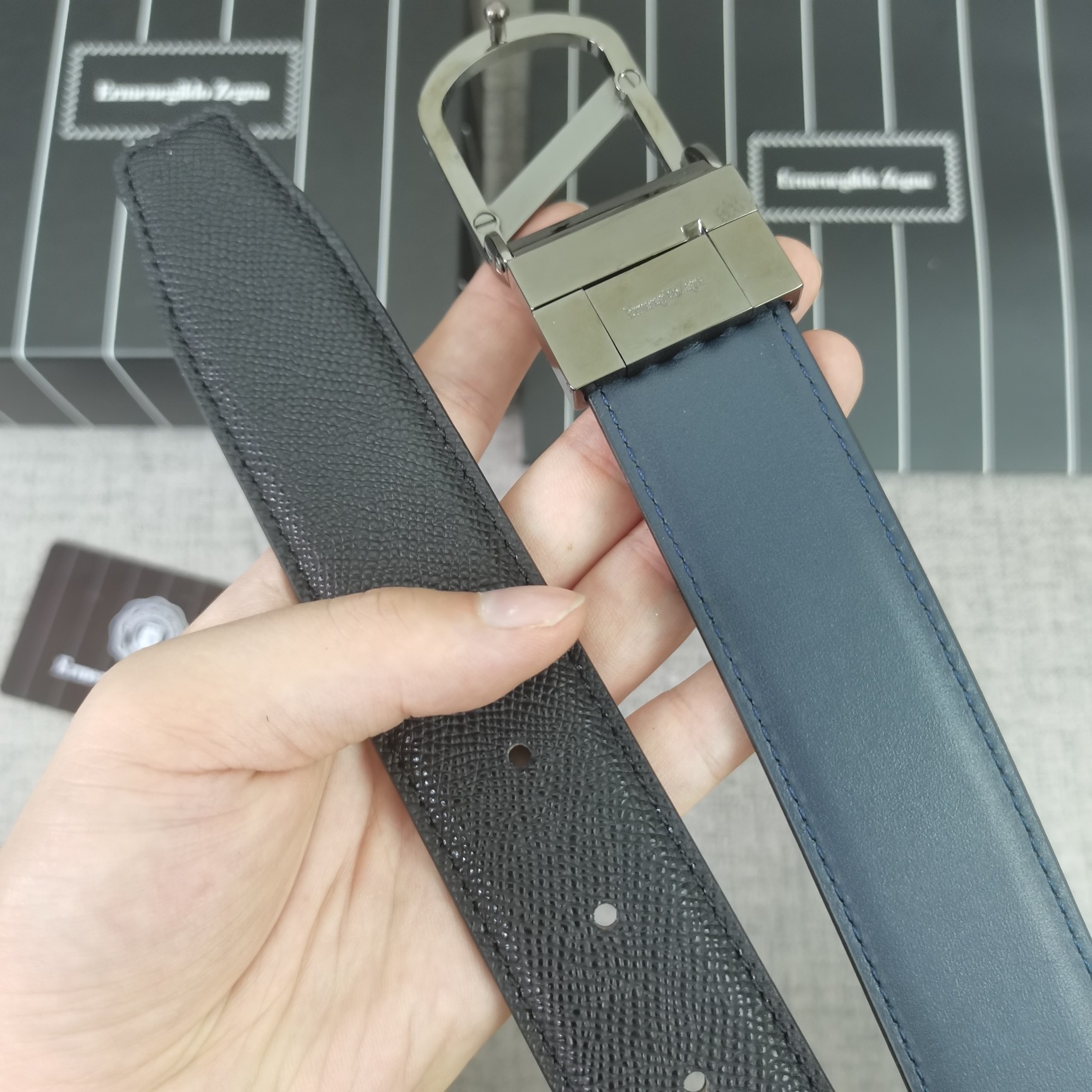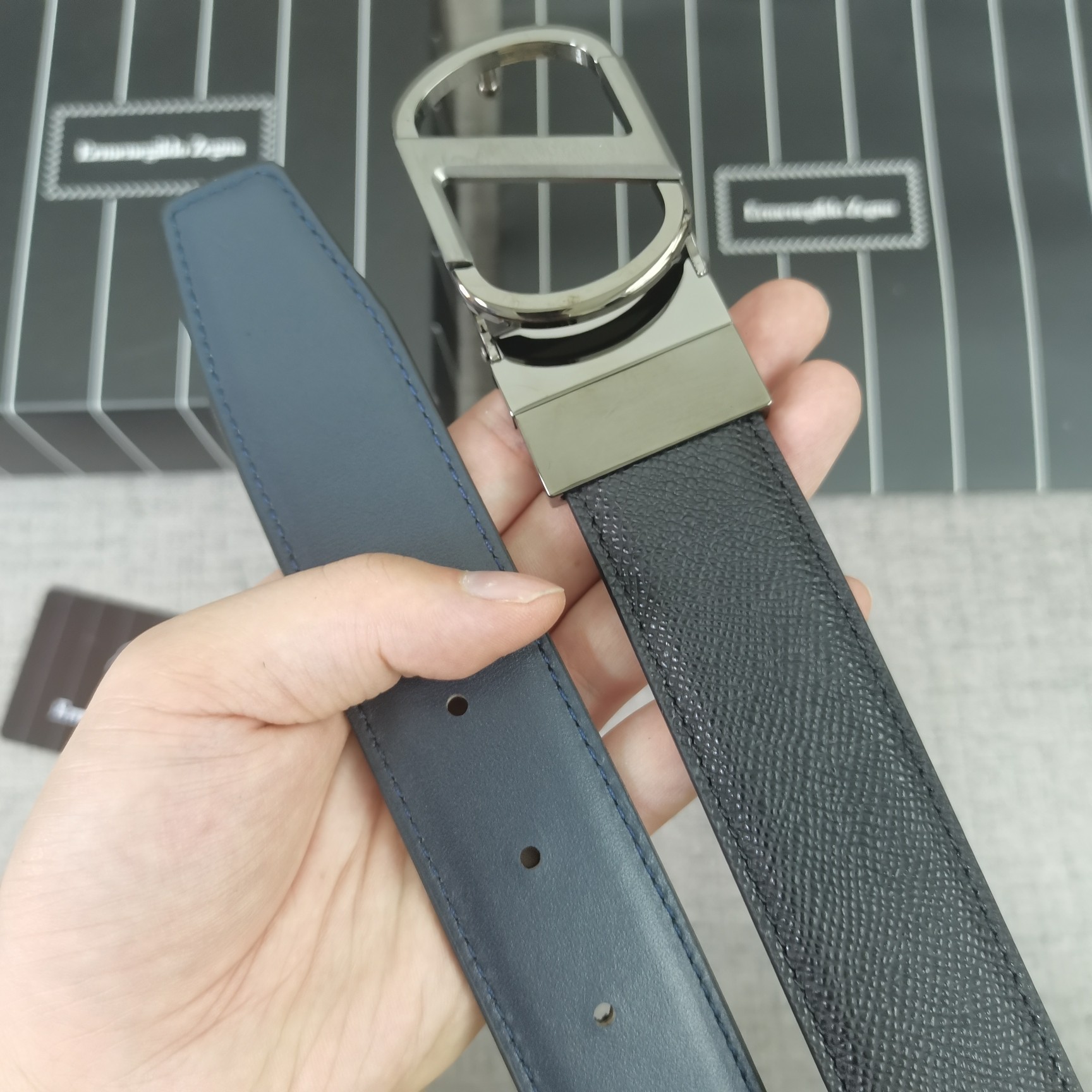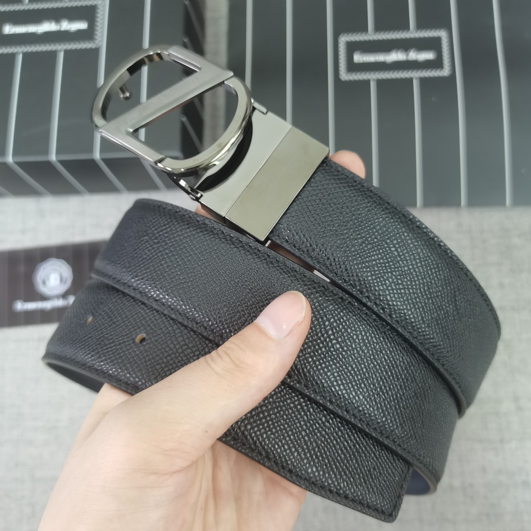 这款皮带是AAAAA 1:1 质量 (非常棒). 使用了和原版一模一样的材料. 商标部分也保持了和杰尼亚/Zegna一样. 图片拍摄是实物皮带拍摄, 您所收到的实物保证和我们图片一模一样.