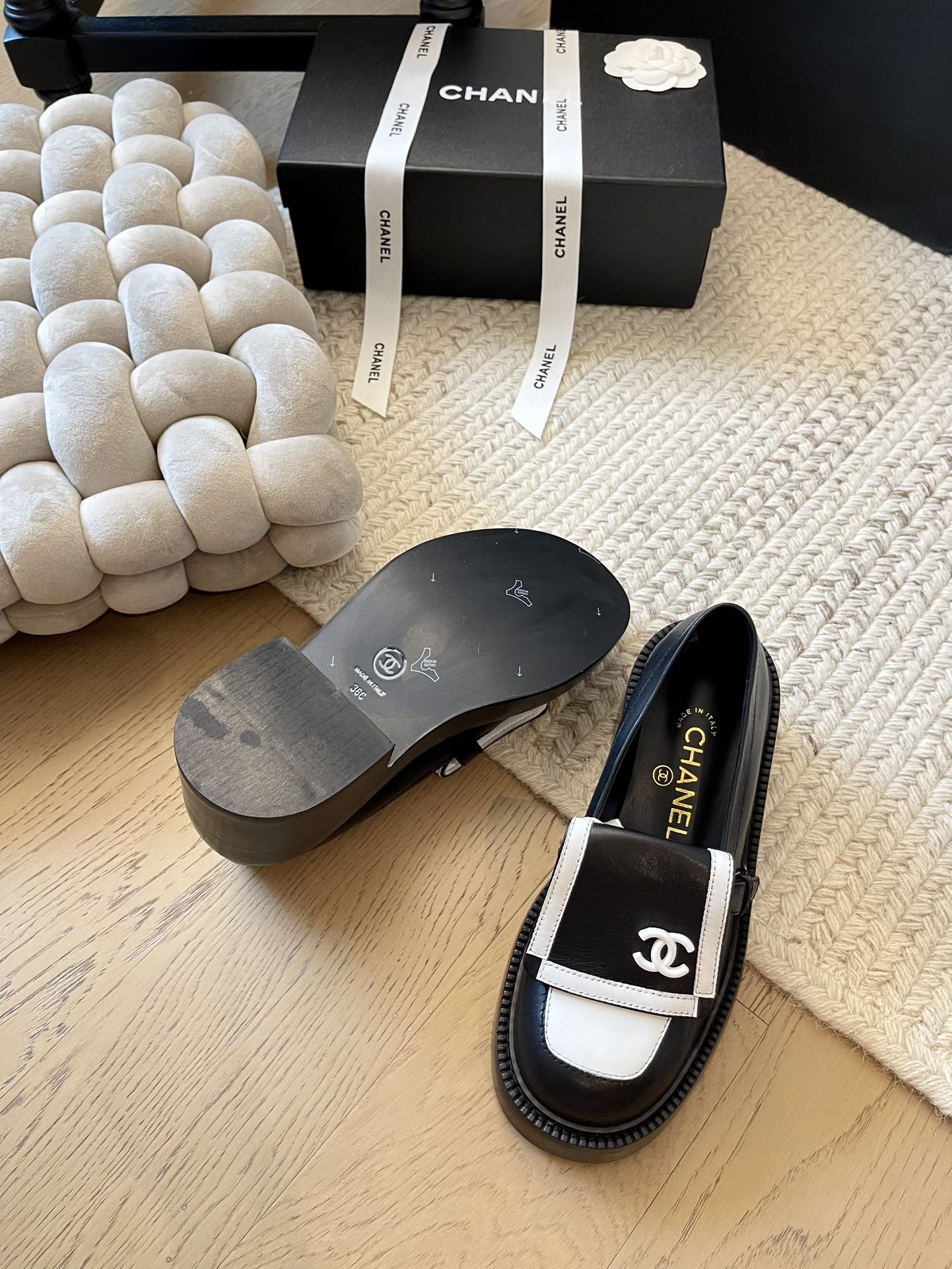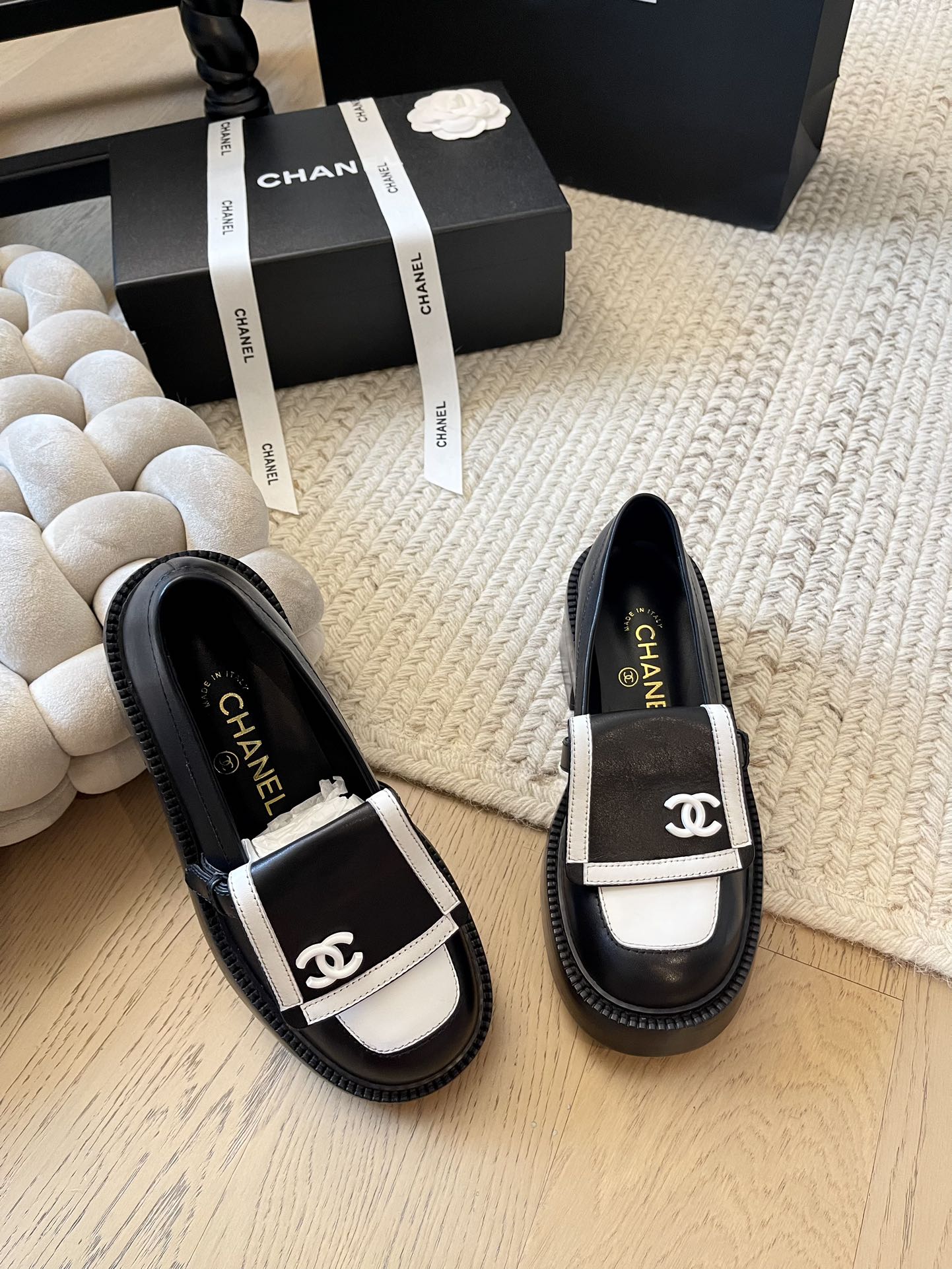 这款鞋子是AAAAA 1:1 质量 (非常棒). 使用了和原版一模一样的材料. 商标部分也保持了和香奈儿/Chanel一样. 图片拍摄是实物鞋子拍摄, 您所收到的实物保证和我们图片一模一样.