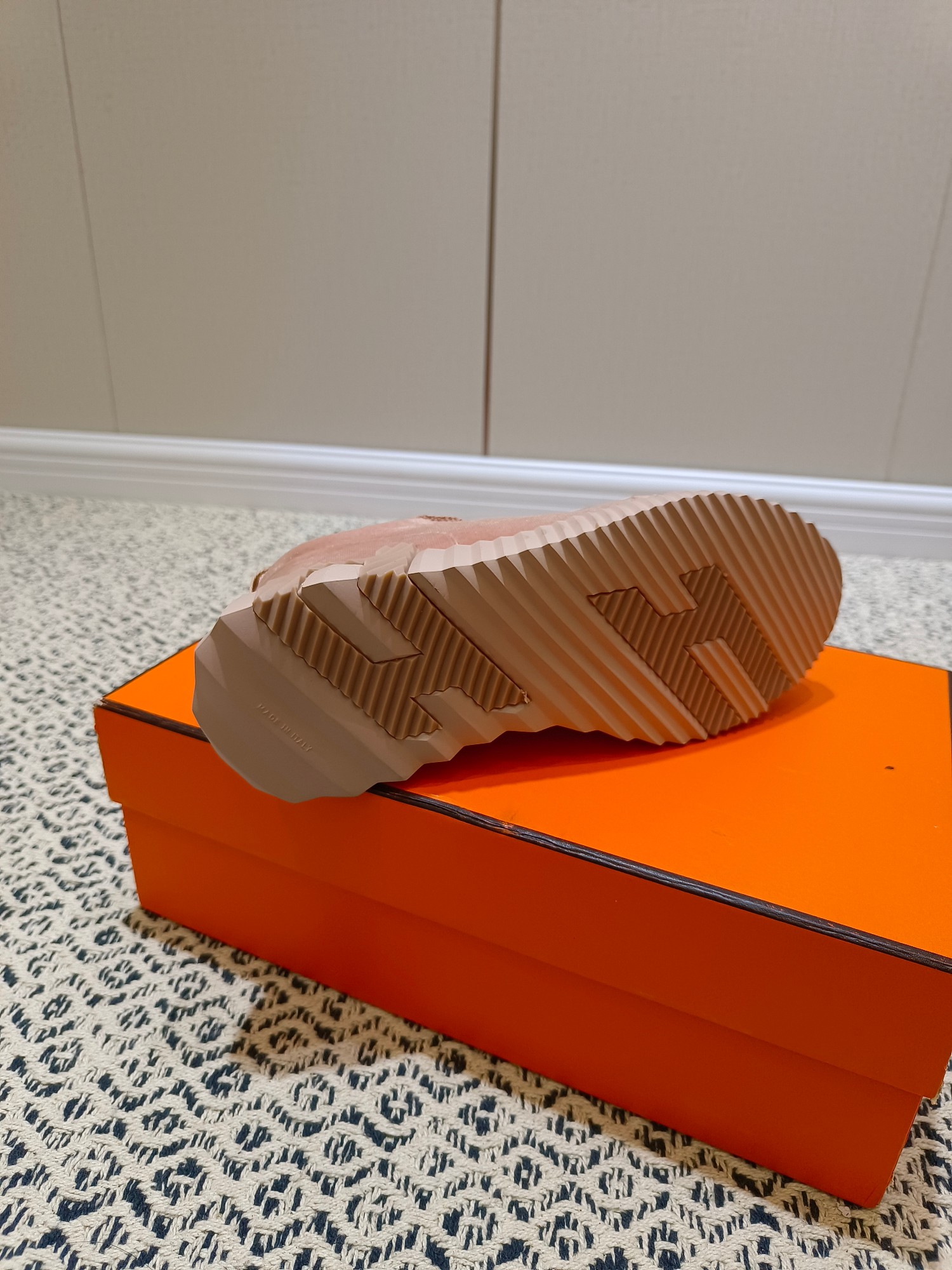 这款鞋子是AAAAA 1:1 质量 (非常棒). 使用了和原版一模一样的材料. 商标部分也保持了和爱马仕/Hermes一样. 图片拍摄是实物鞋子拍摄, 您所收到的实物保证和我们图片一模一样.
