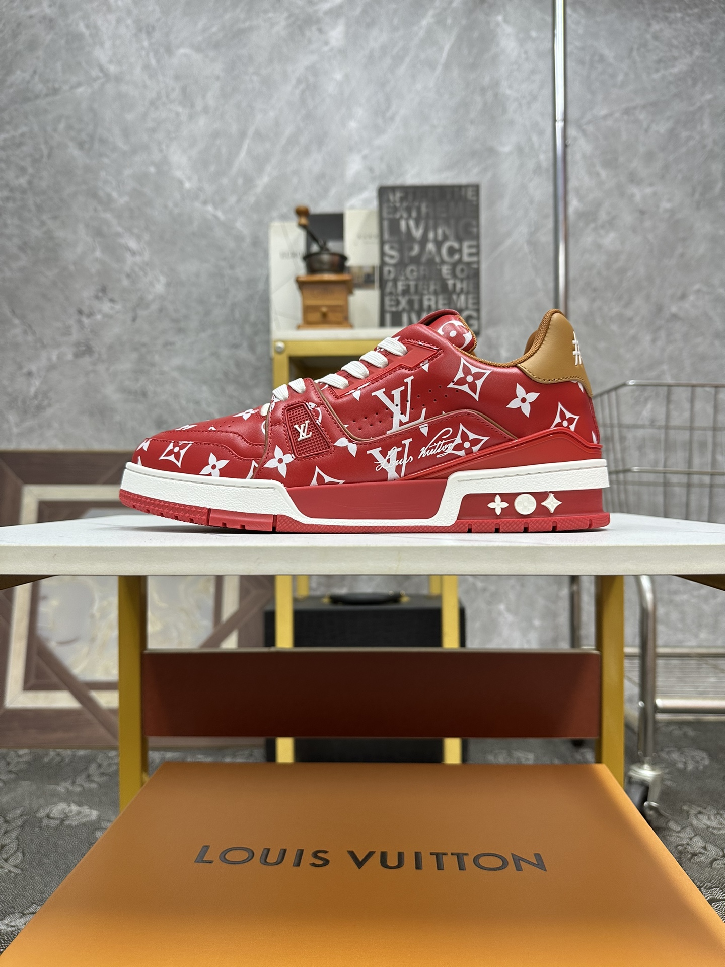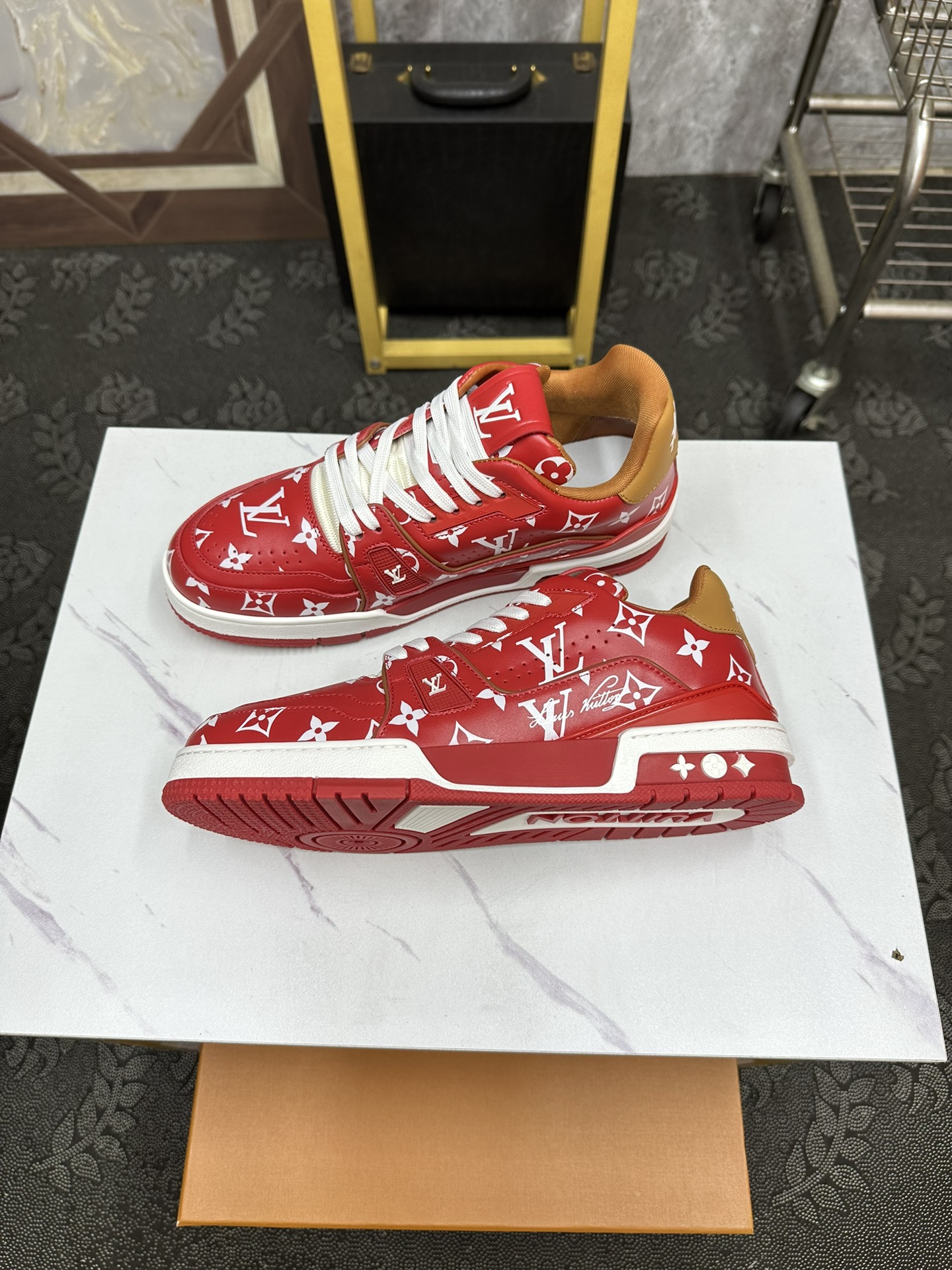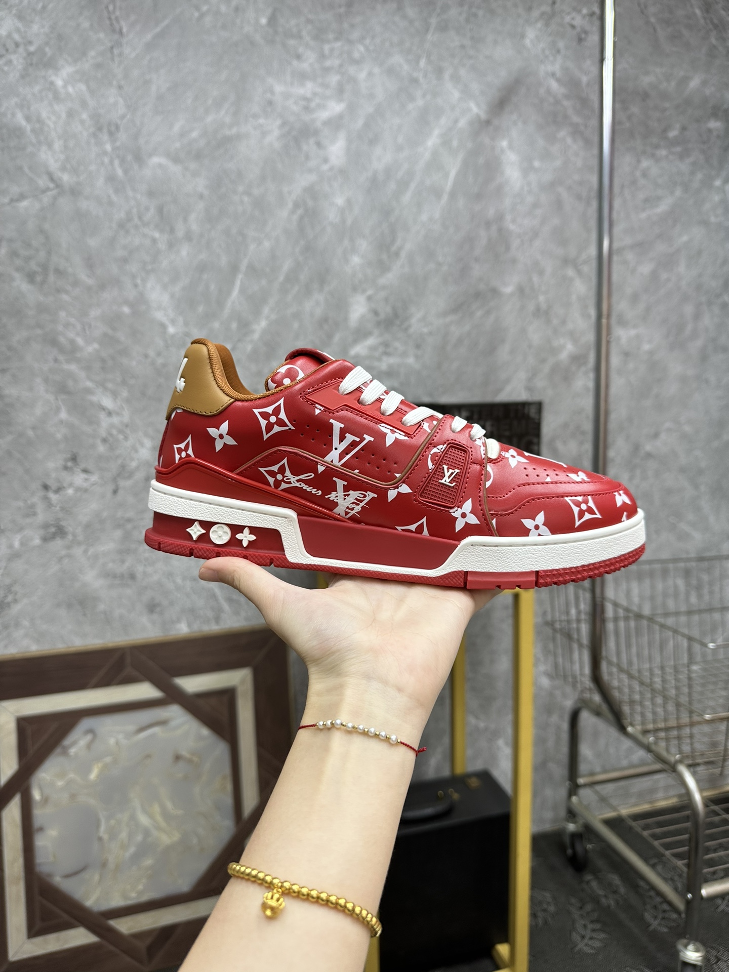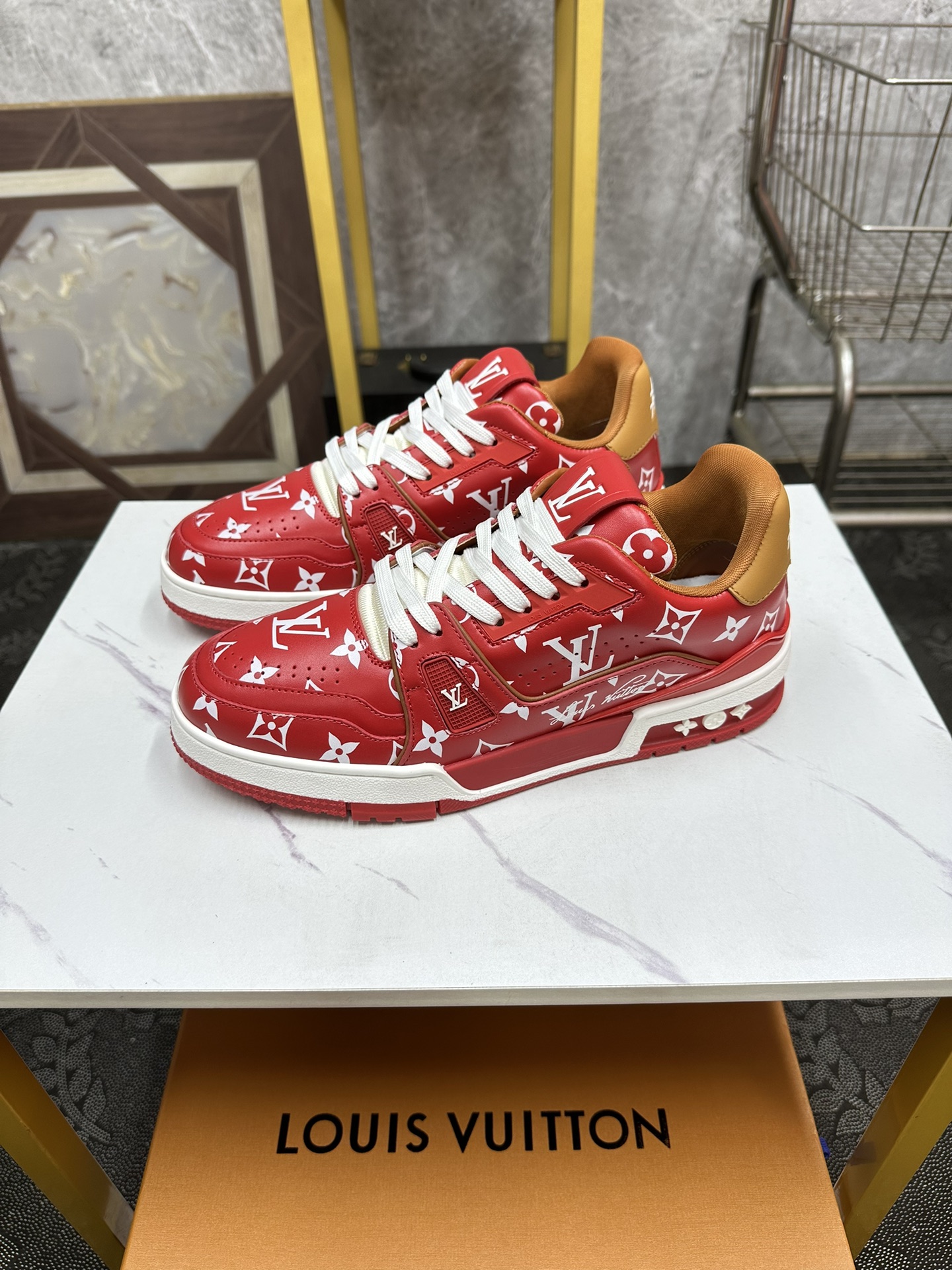 这款鞋子是AAAAA 1:1 质量 (非常棒). 使用了和原版一模一样的材料. 商标部分也保持了和路易威登/Louis Vuitton一样. 图片拍摄是实物鞋子拍摄, 您所收到的实物保证和我们图片一模一样.