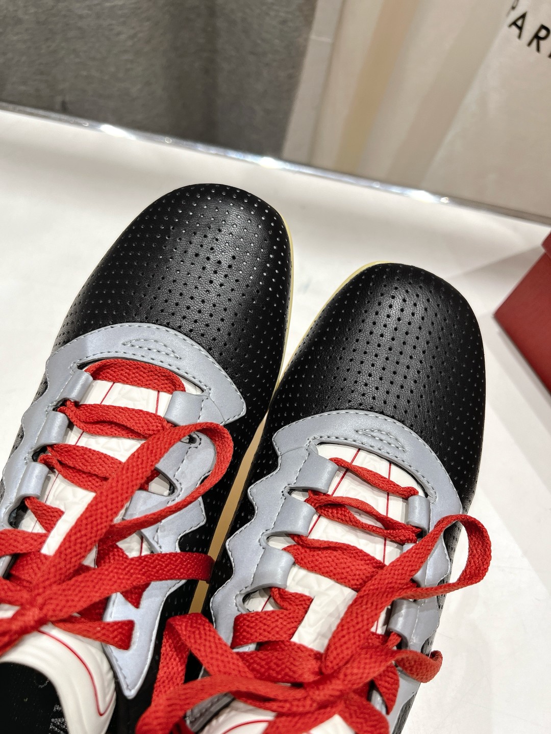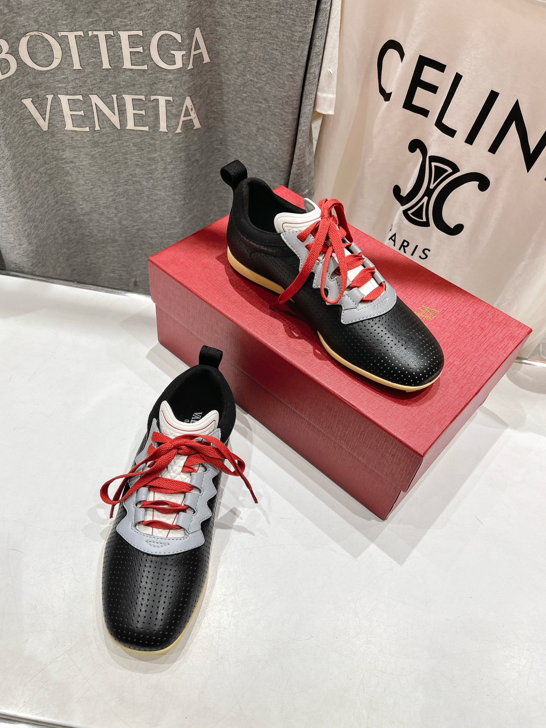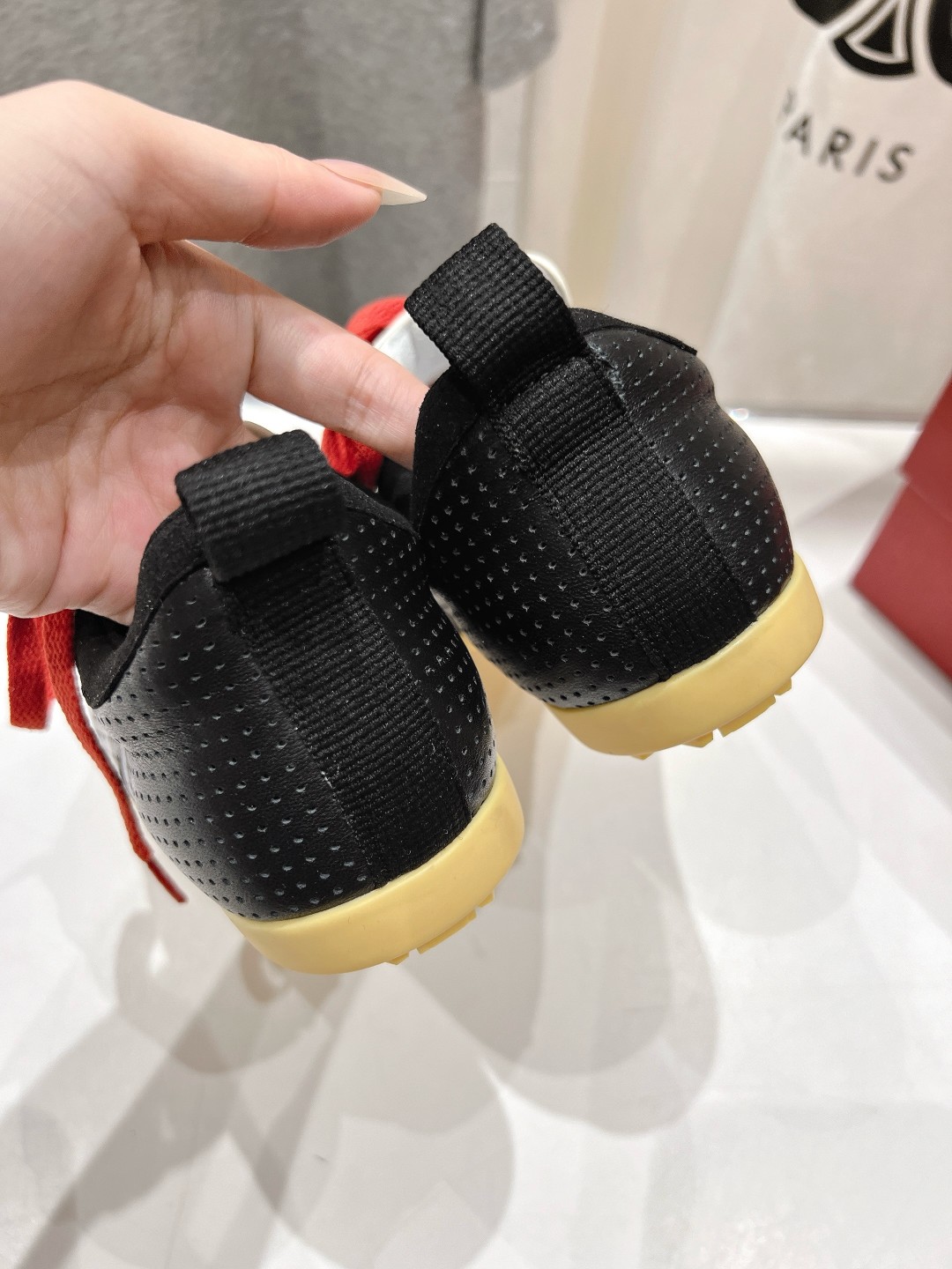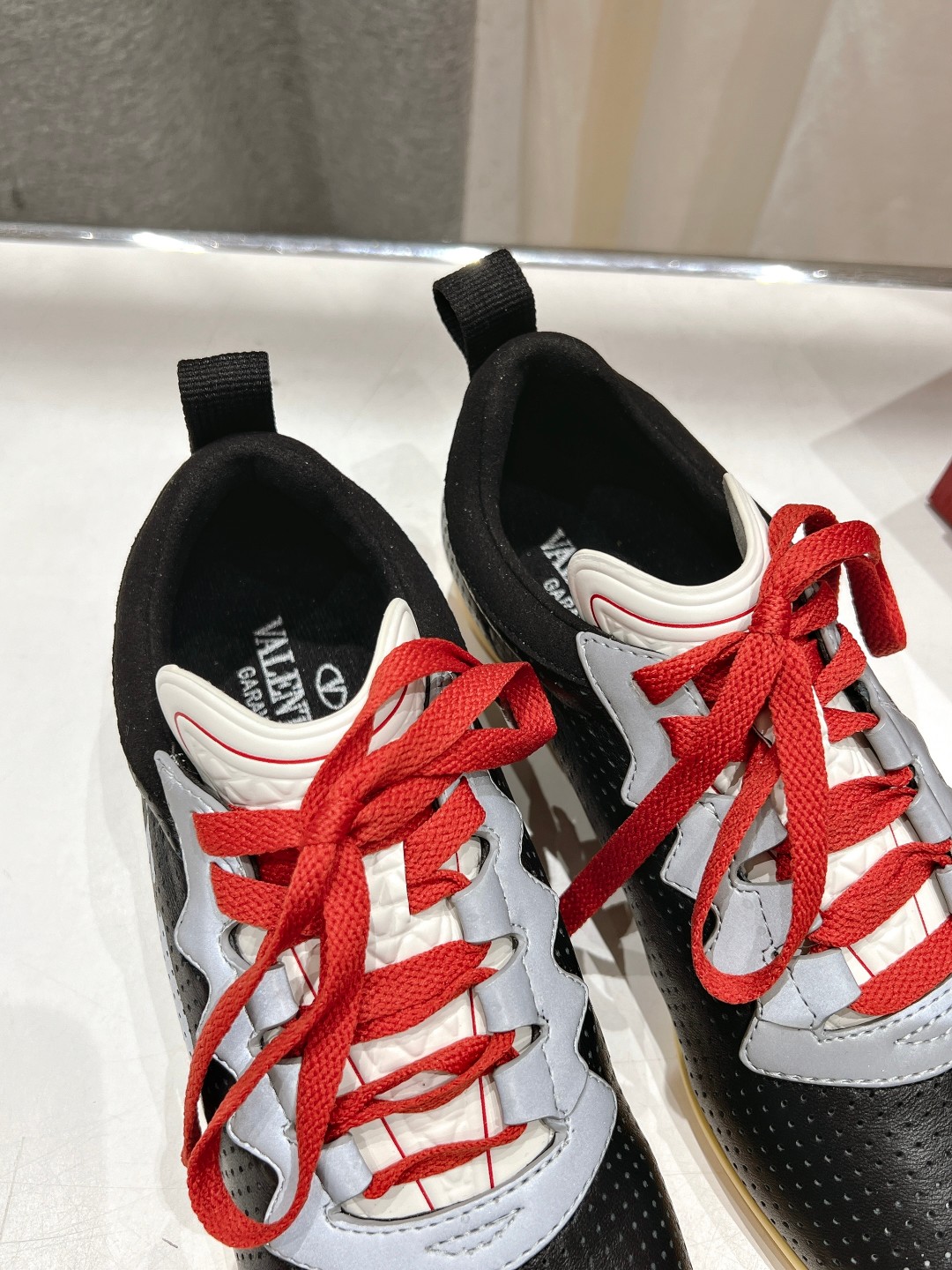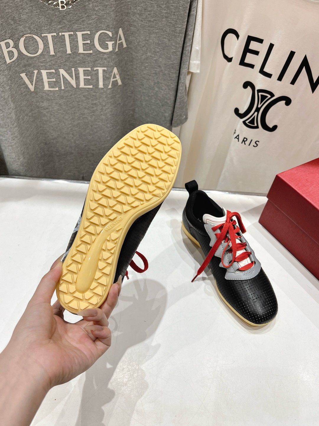 这款鞋子是AAAAA 1:1 质量 (非常棒). 使用了和原版一模一样的材料. 商标部分也保持了和华伦天奴/Valentino一样. 图片拍摄是实物鞋子拍摄, 您所收到的实物保证和我们图片一模一样.