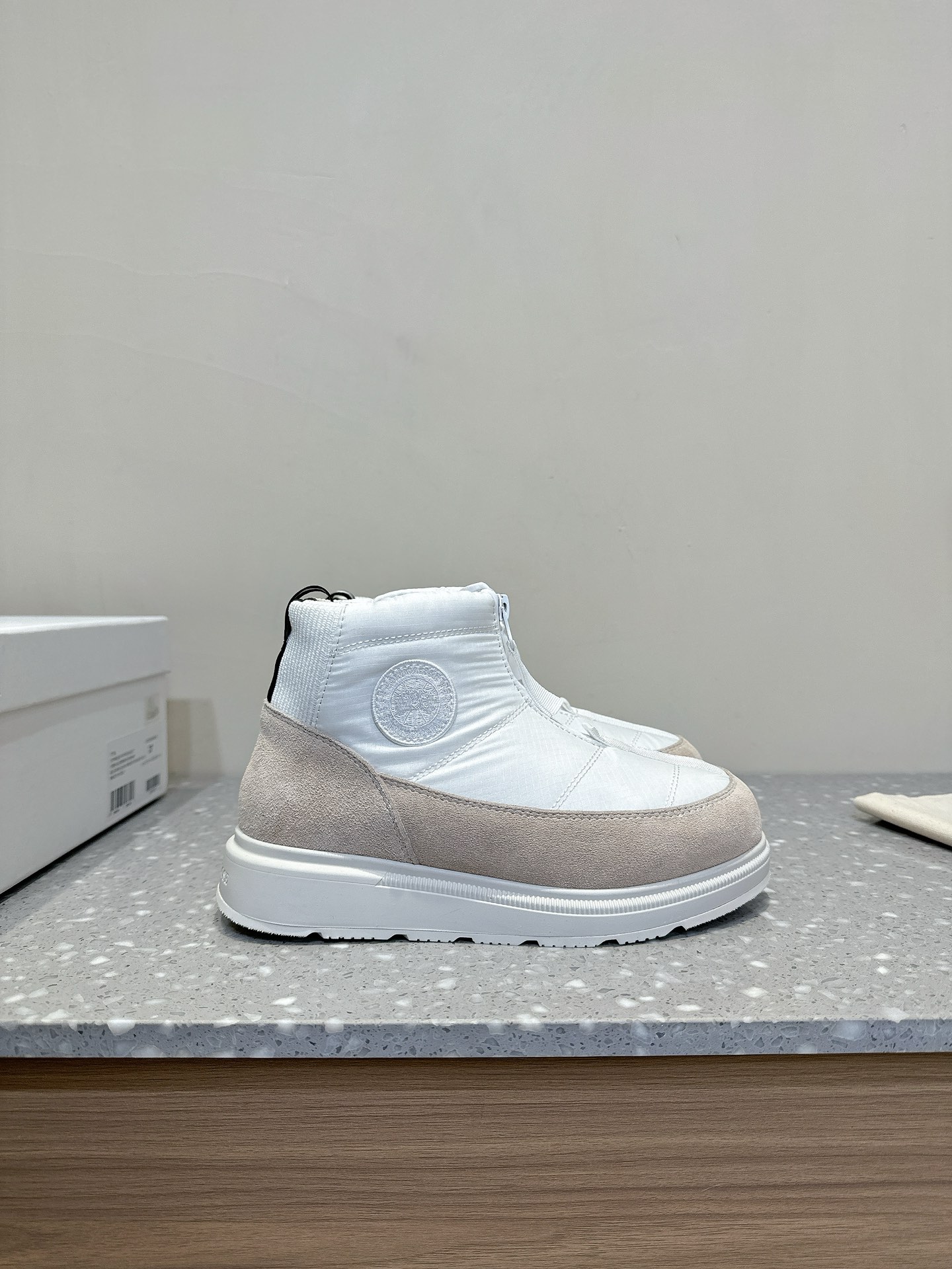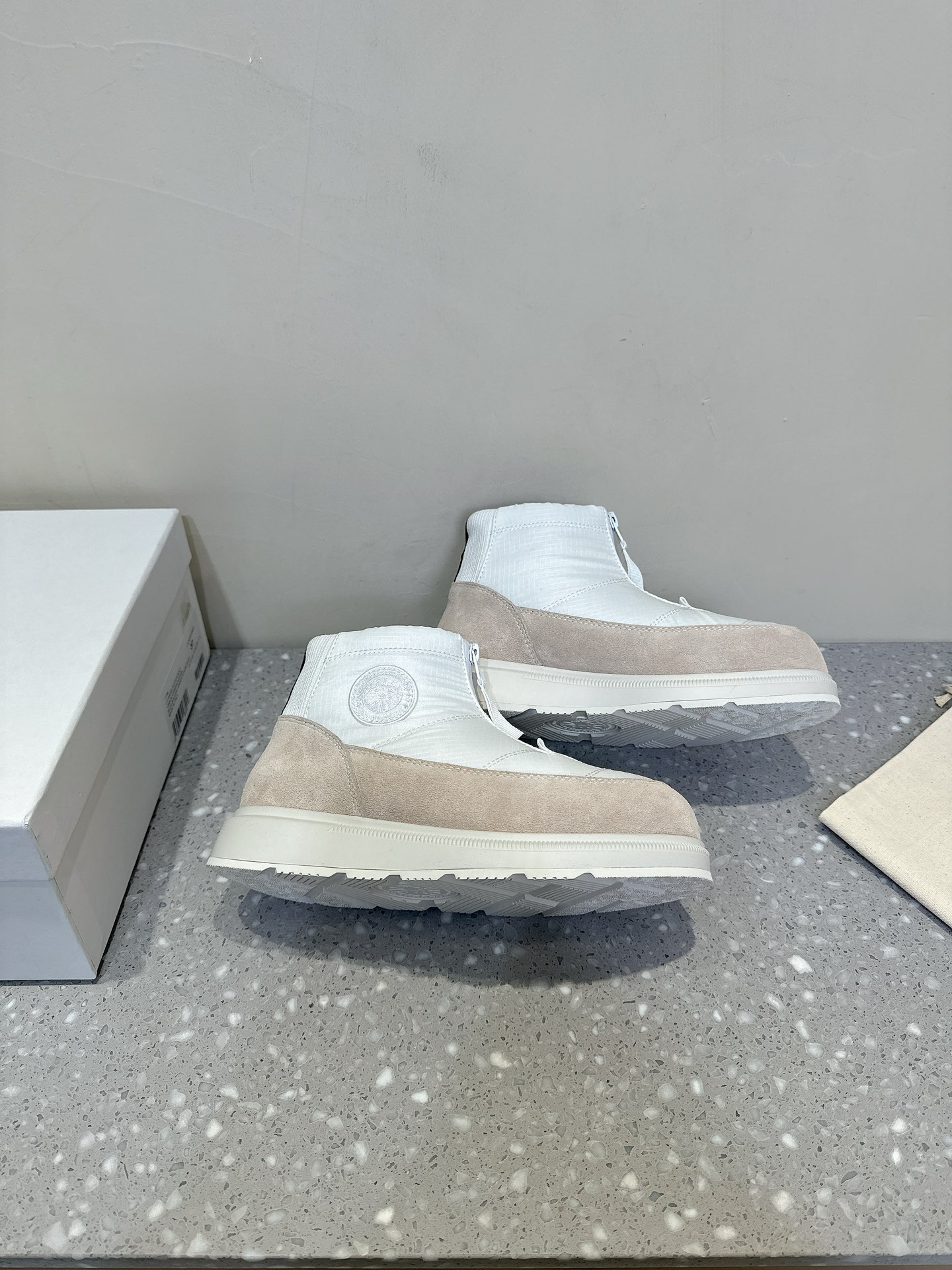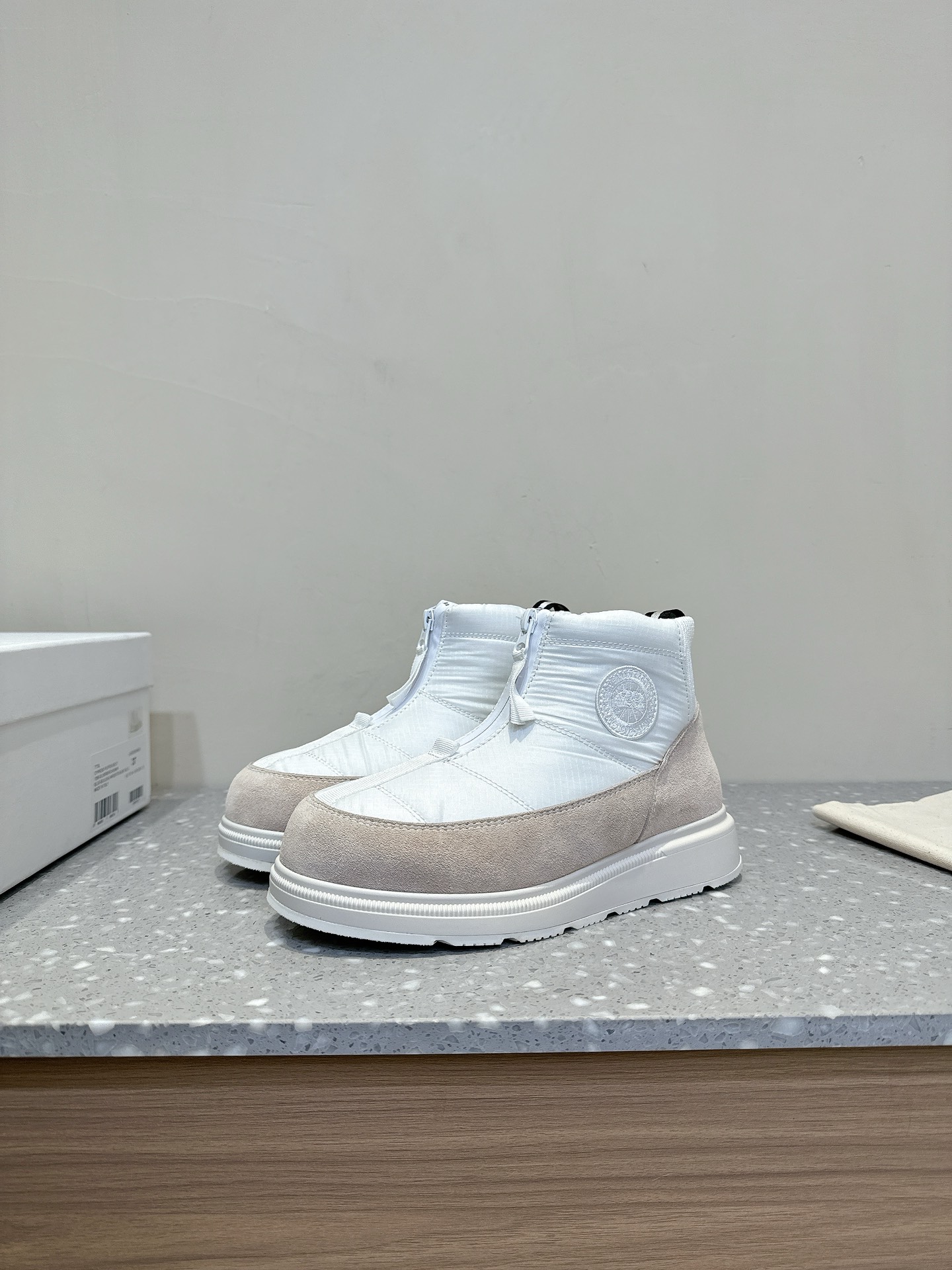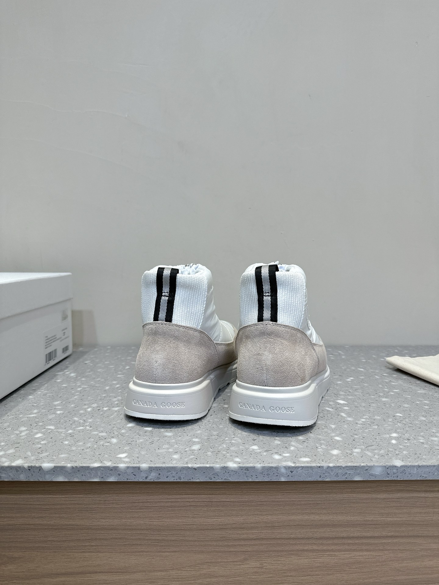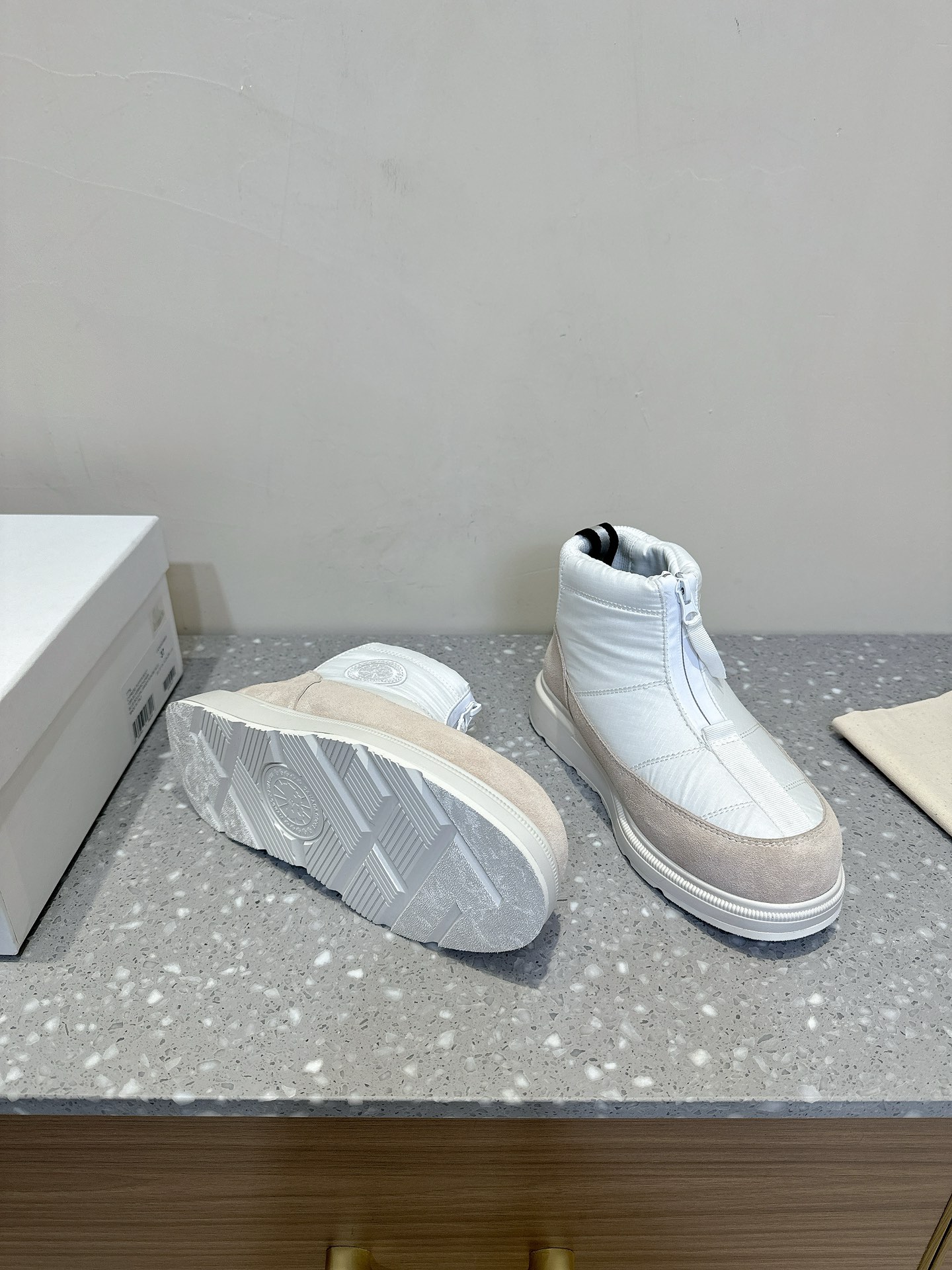 这款鞋子是AAAAA 1:1 质量 (非常棒). 使用了和原版一模一样的材料. 商标部分也保持了和Canada Goose一样. 图片拍摄是实物鞋子拍摄, 您所收到的实物保证和我们图片一模一样.