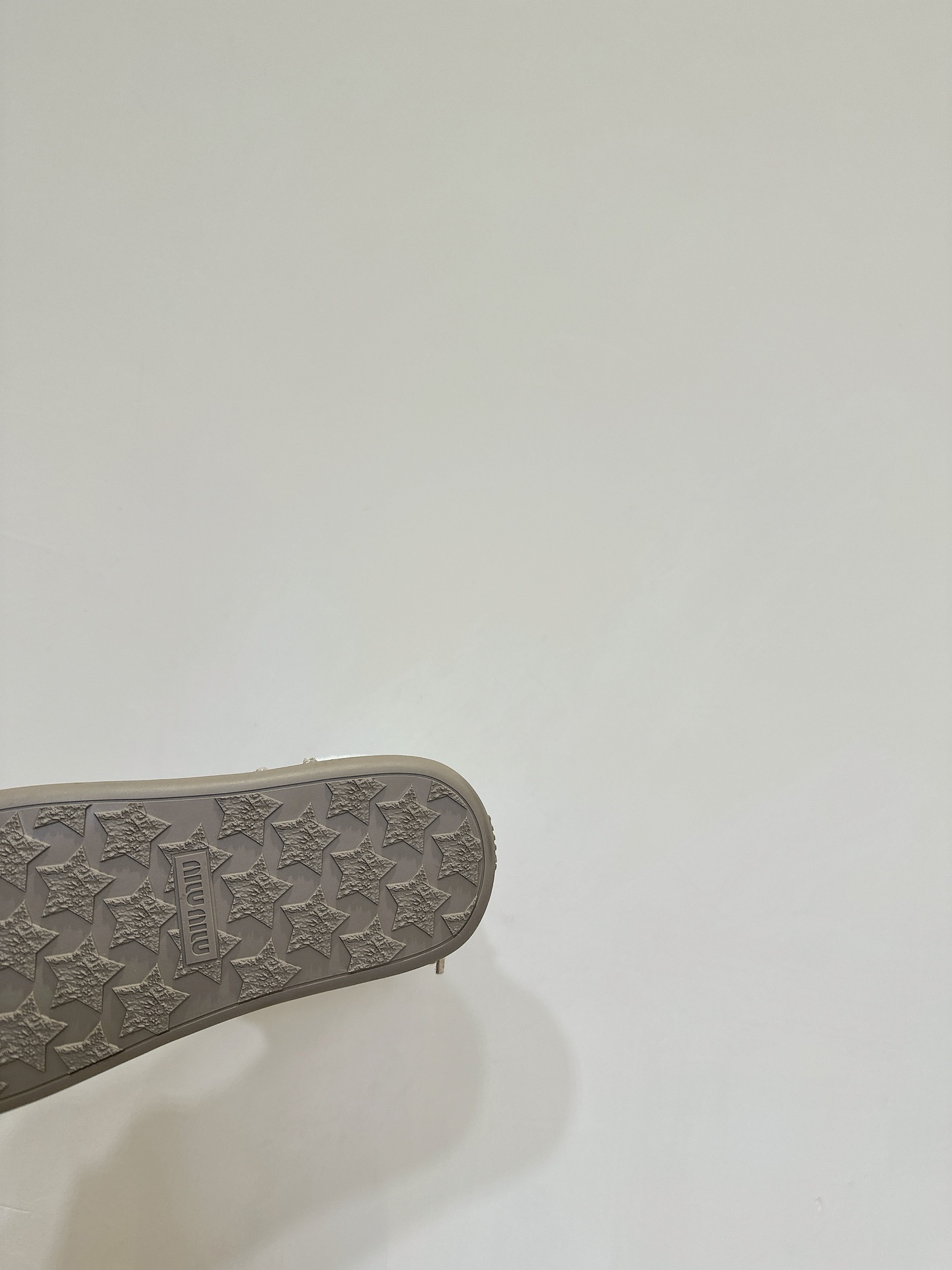 这款鞋子是AAAAA 1:1 质量 (非常棒). 使用了和原版一模一样的材料. 商标部分也保持了和缪缪/Miu Miu一样. 图片拍摄是实物鞋子拍摄, 您所收到的实物保证和我们图片一模一样.